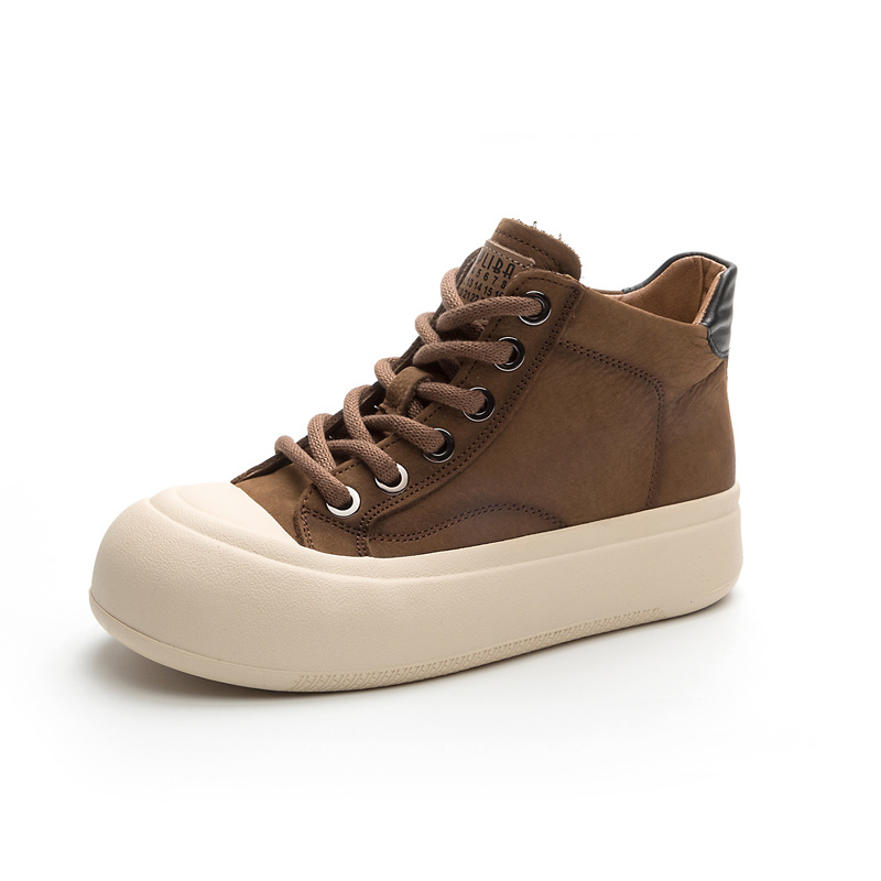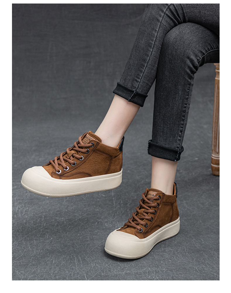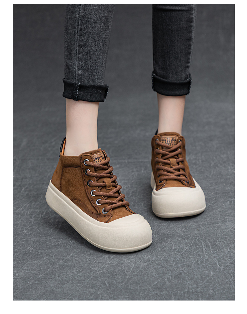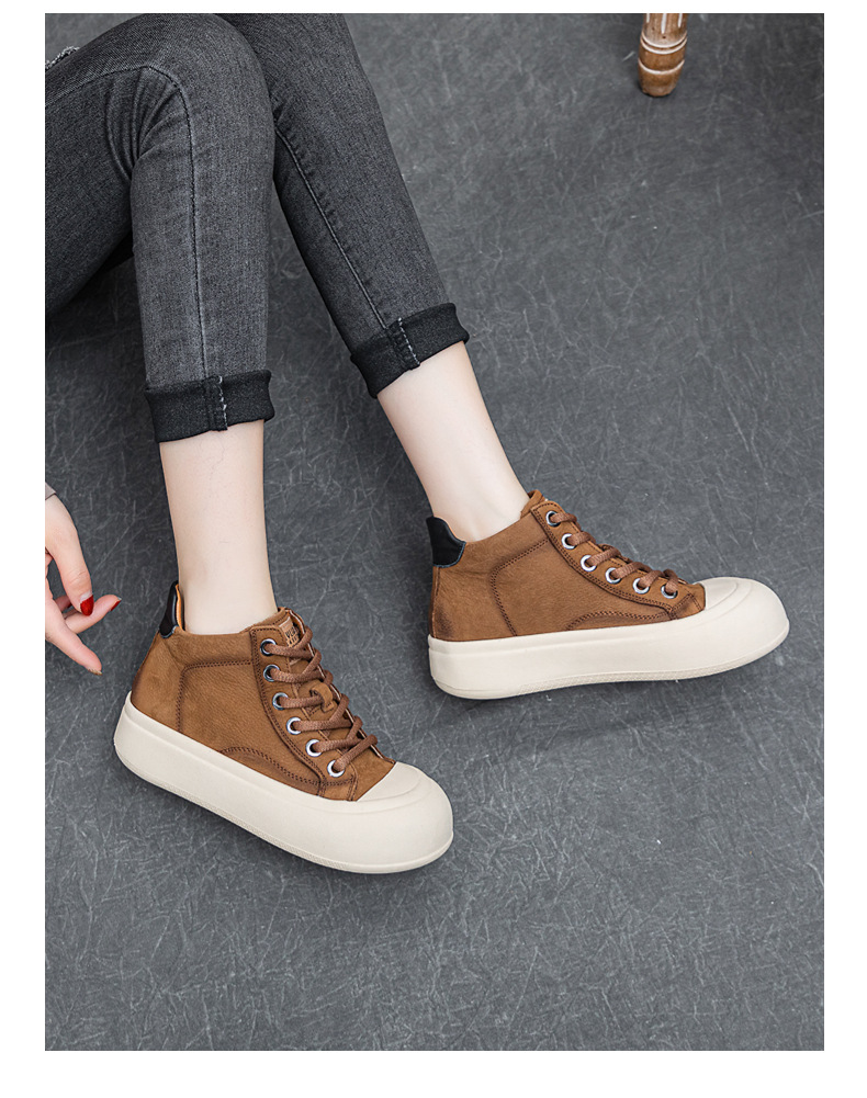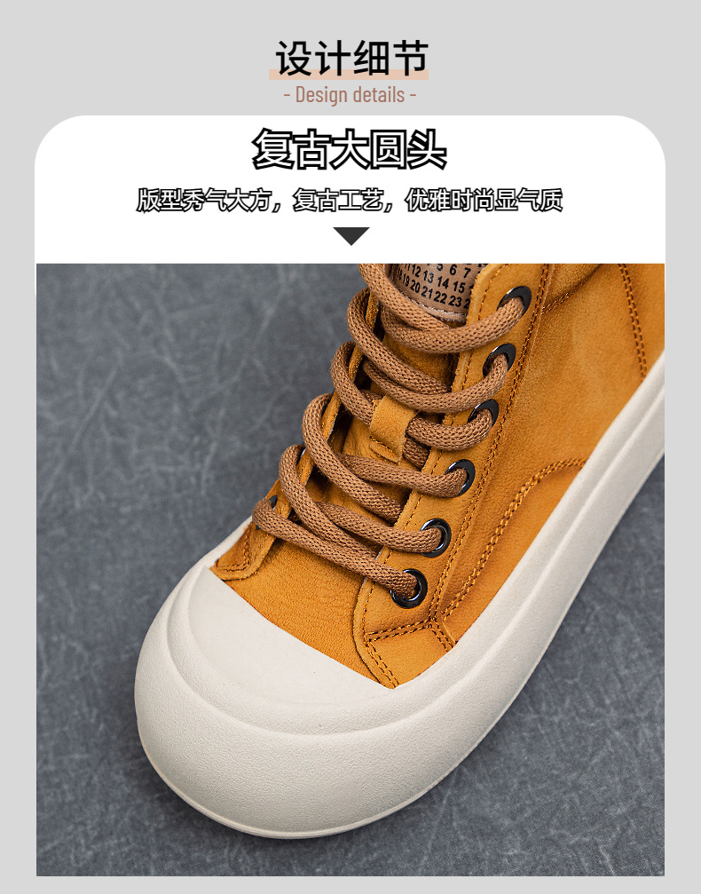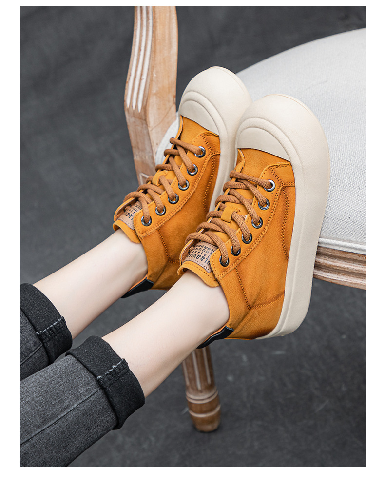 탑 레이어 소가죽 두꺼운 밑창 부티 여성 가을 2023 새로운 정품 가죽 복고풍 다목적 빅 라운드 헤드 플랫 마틴 부츠