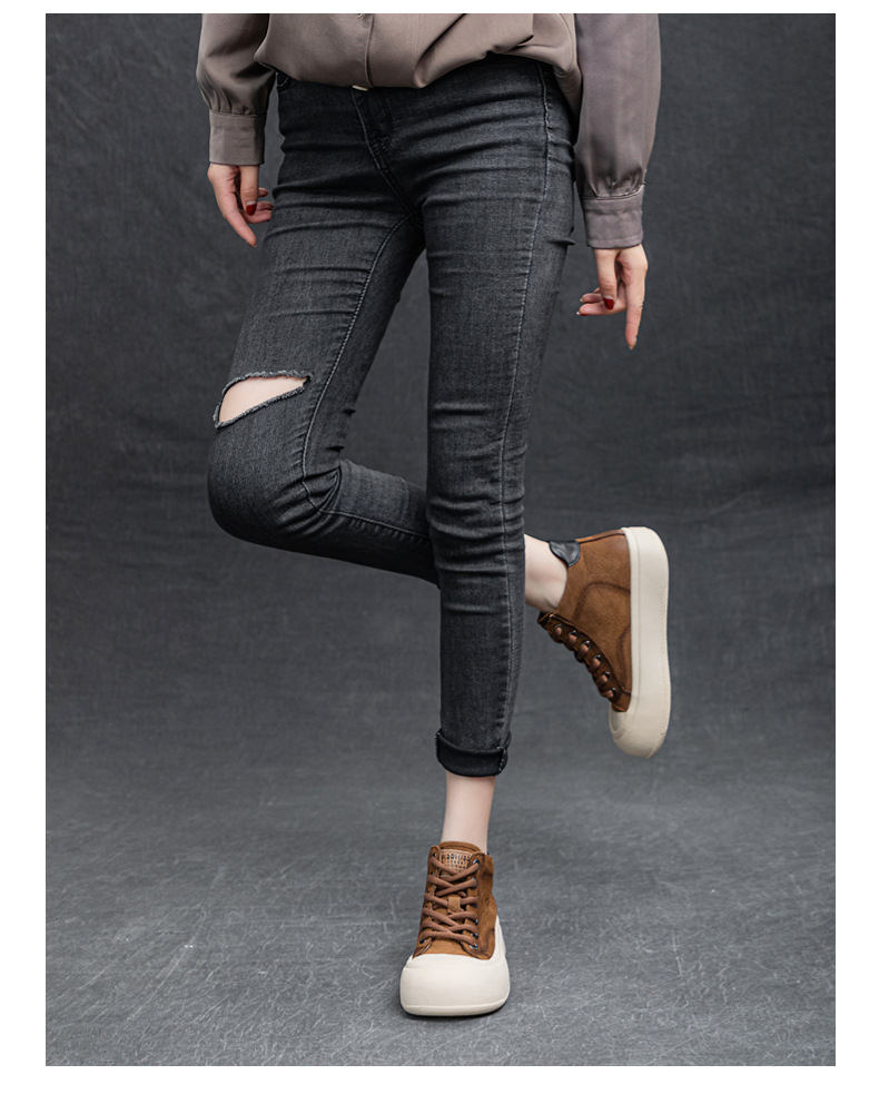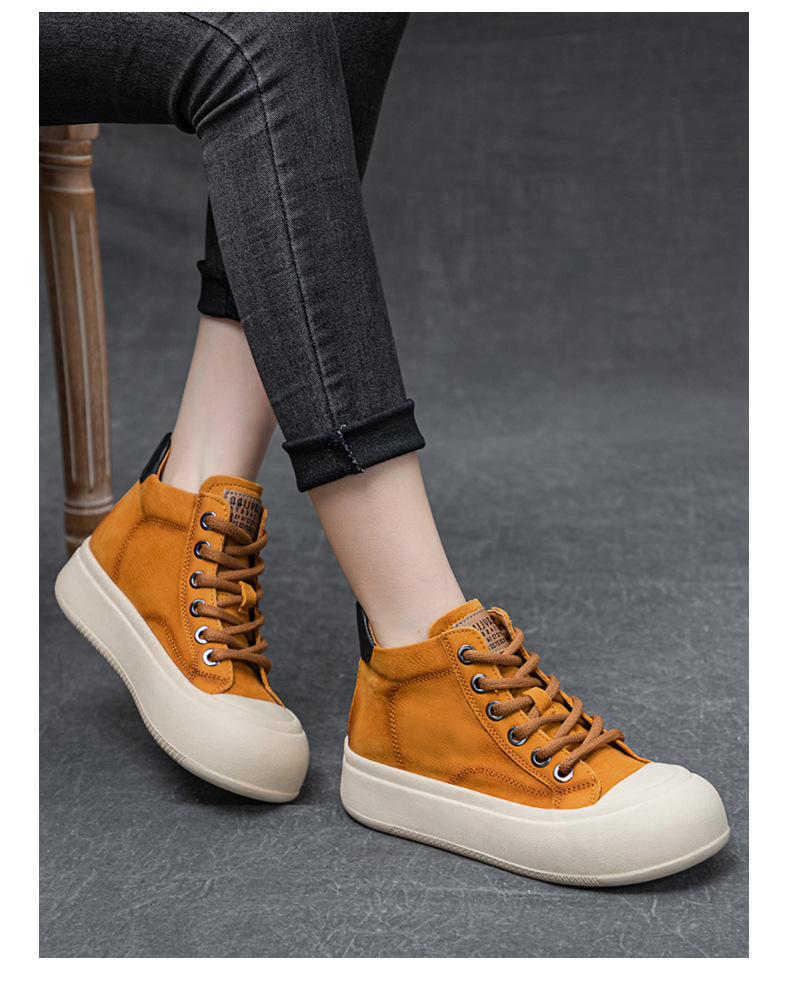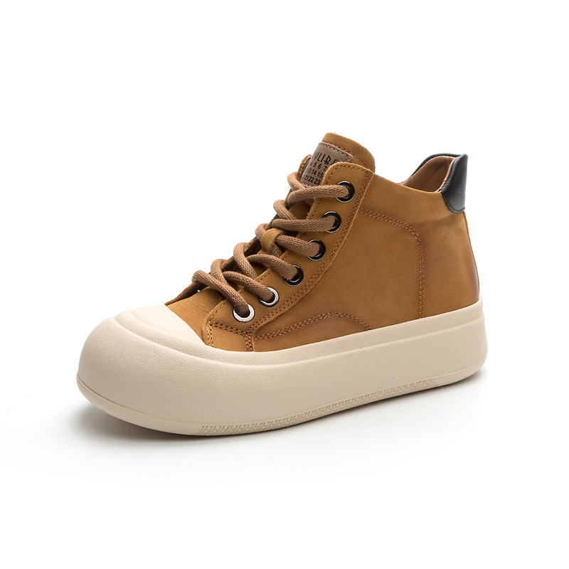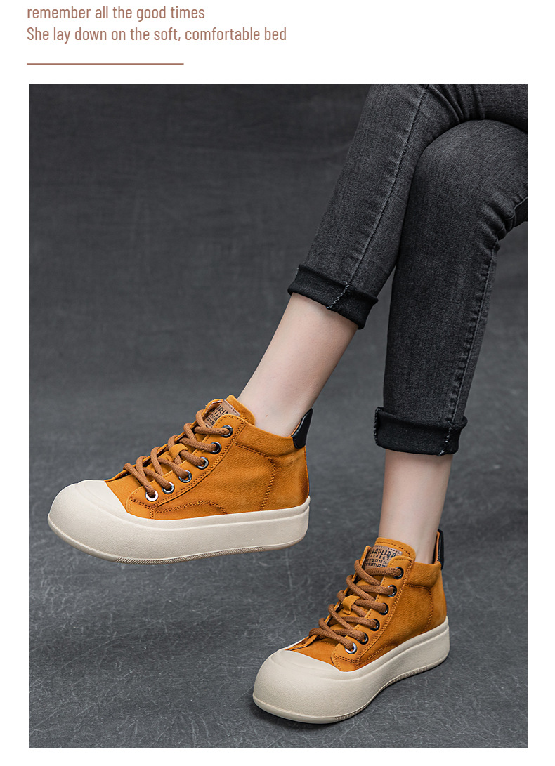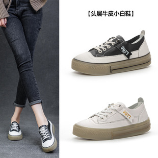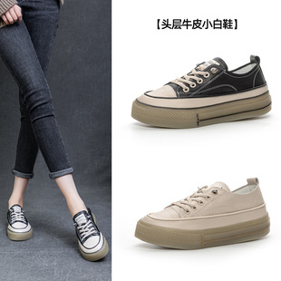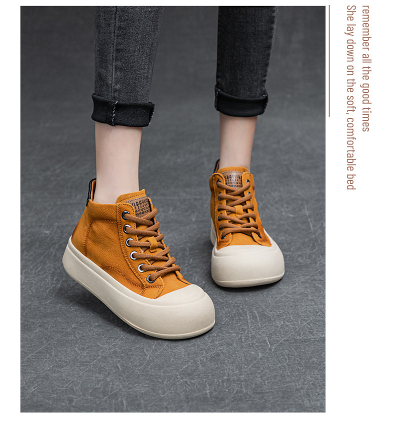탑 레이어 소가죽 두꺼운 밑창 부티 여성 가을 2023 새로운 정품 가죽 복고풍 다목적 빅 라운드 헤드 플랫 마틴 부츠