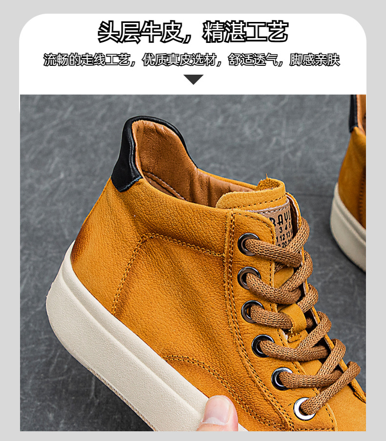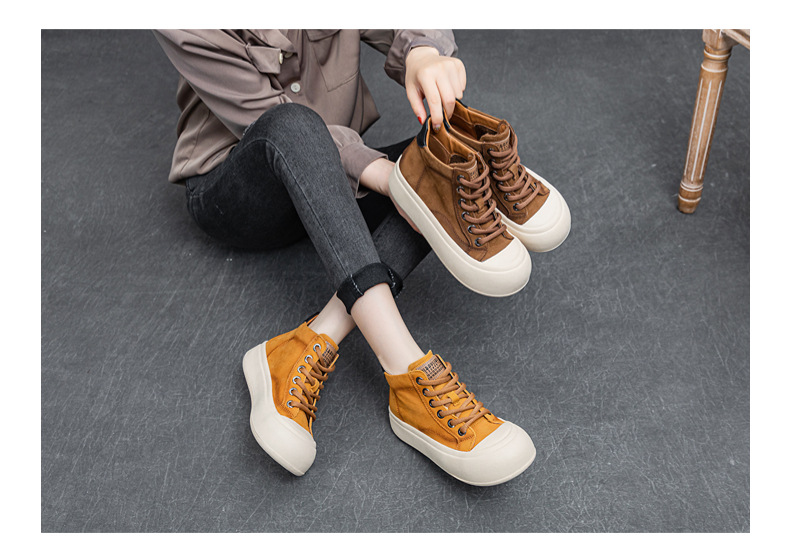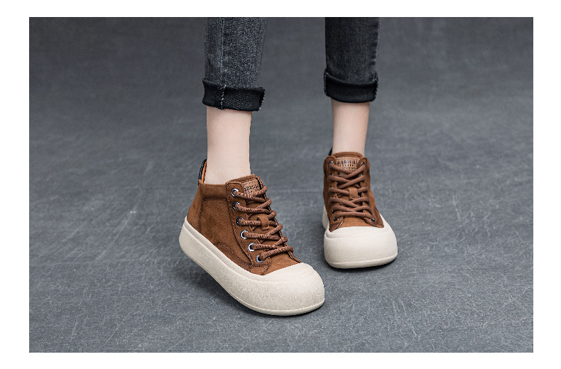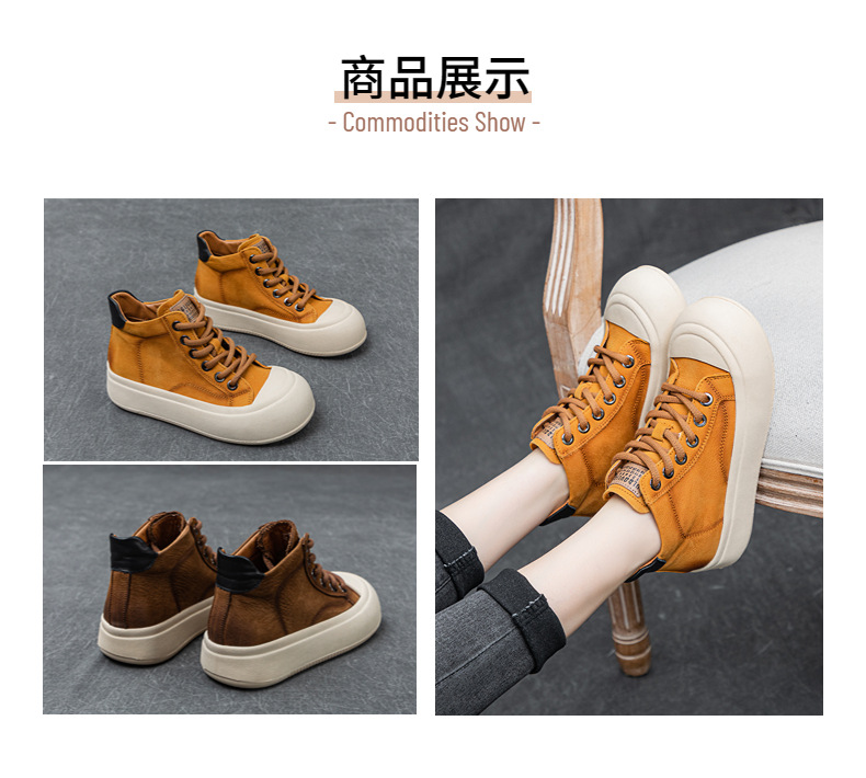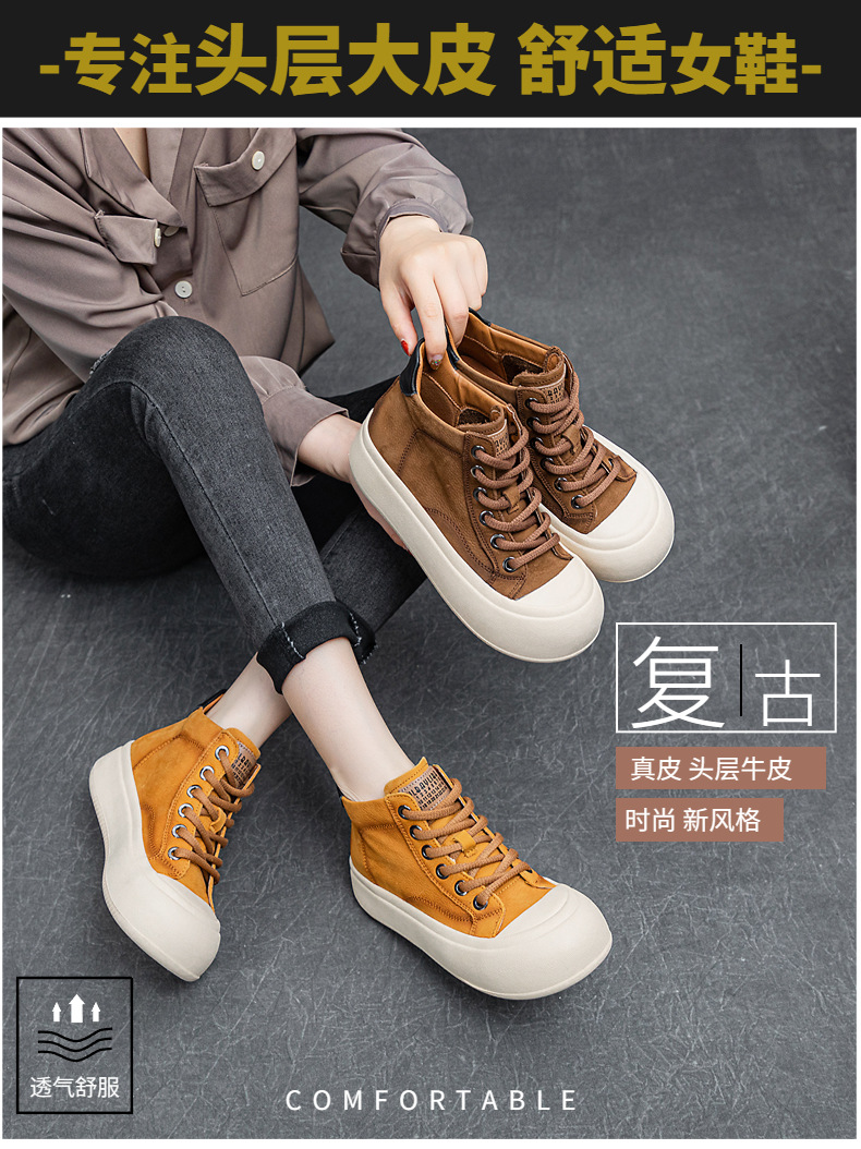 탑 레이어 소가죽 두꺼운 밑창 부티 여성 가을 2023 새로운 정품 가죽 복고풍 다목적 빅 라운드 헤드 플랫 마틴 부츠스토어 가기