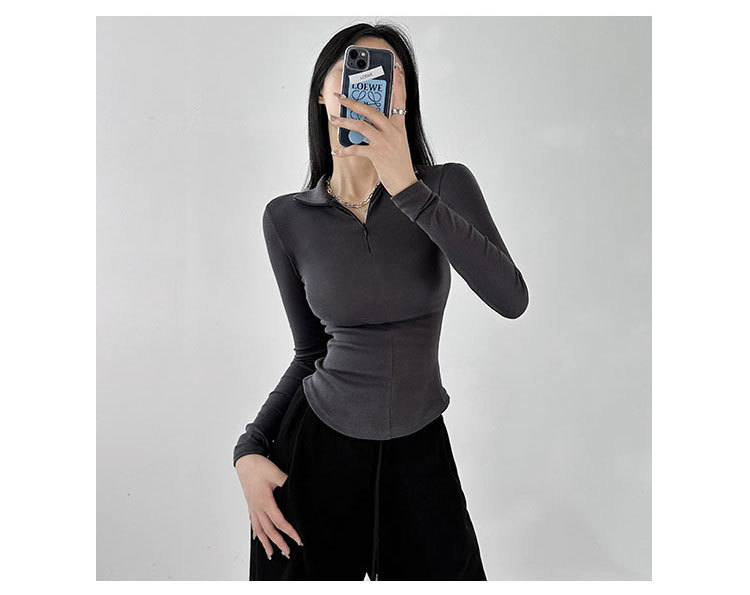 여성용 긴팔 티셔츠 2022 가을, 겨울 슬림 피트 바닥 내부 레이어 슬리밍 핫 소녀 폴로 칼라 플러스 벨벳 가을, 겨울 바닥 셔츠스토어 가기
