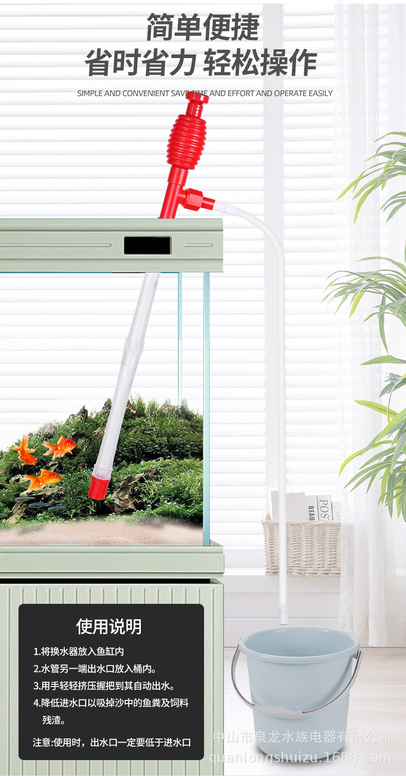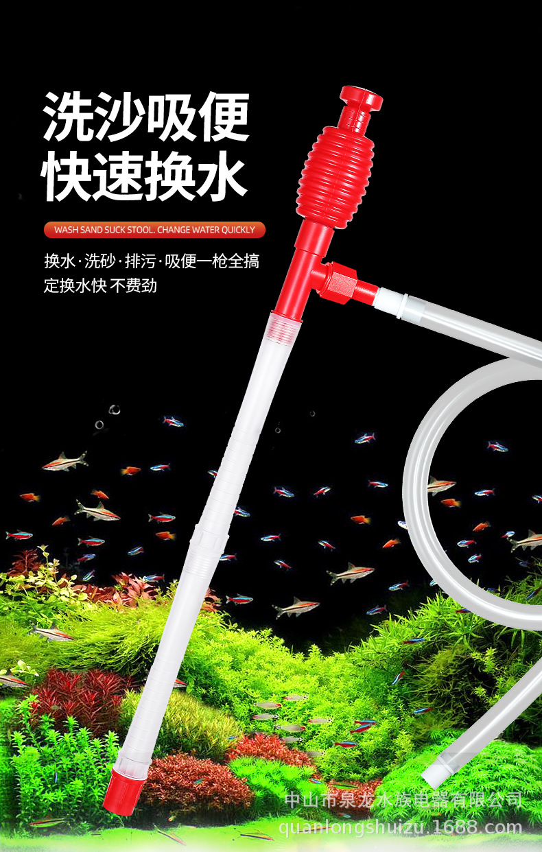 국경 간 수동 어항 물 교환기 모래 세척기 수족관 물 교환 파이프 청소 흡입 변기 바닥 모래 청소 용품 QL스토어 가기