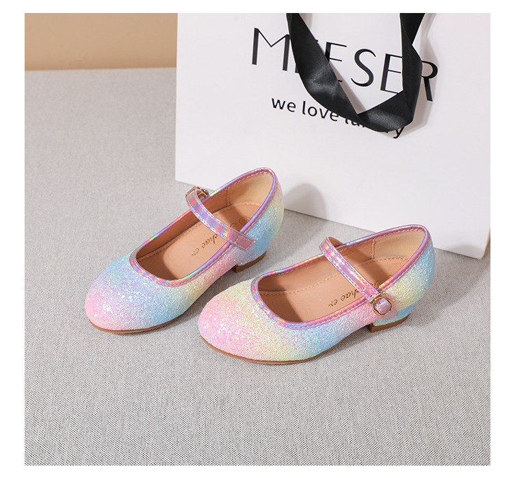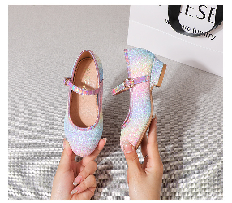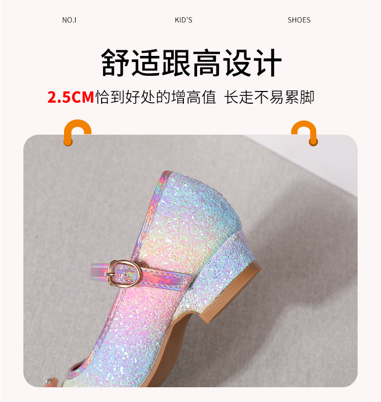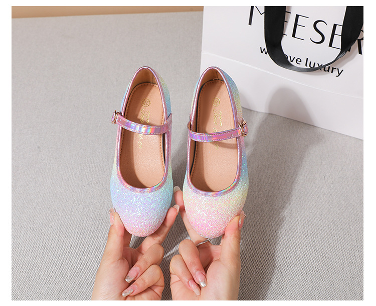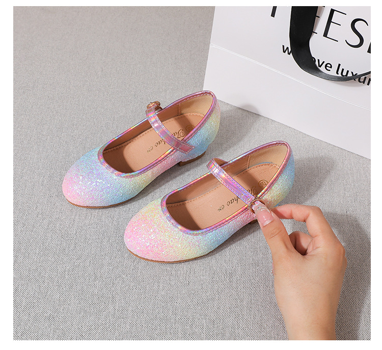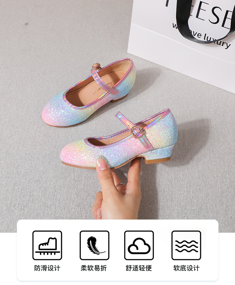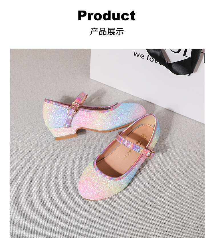 2025년 신상 가을 여아 공주 구두 크리스탈 슈즈 반짝이 어린이 메리제인 슈즈 반짝이 칠색 가죽 구두스토어 가기