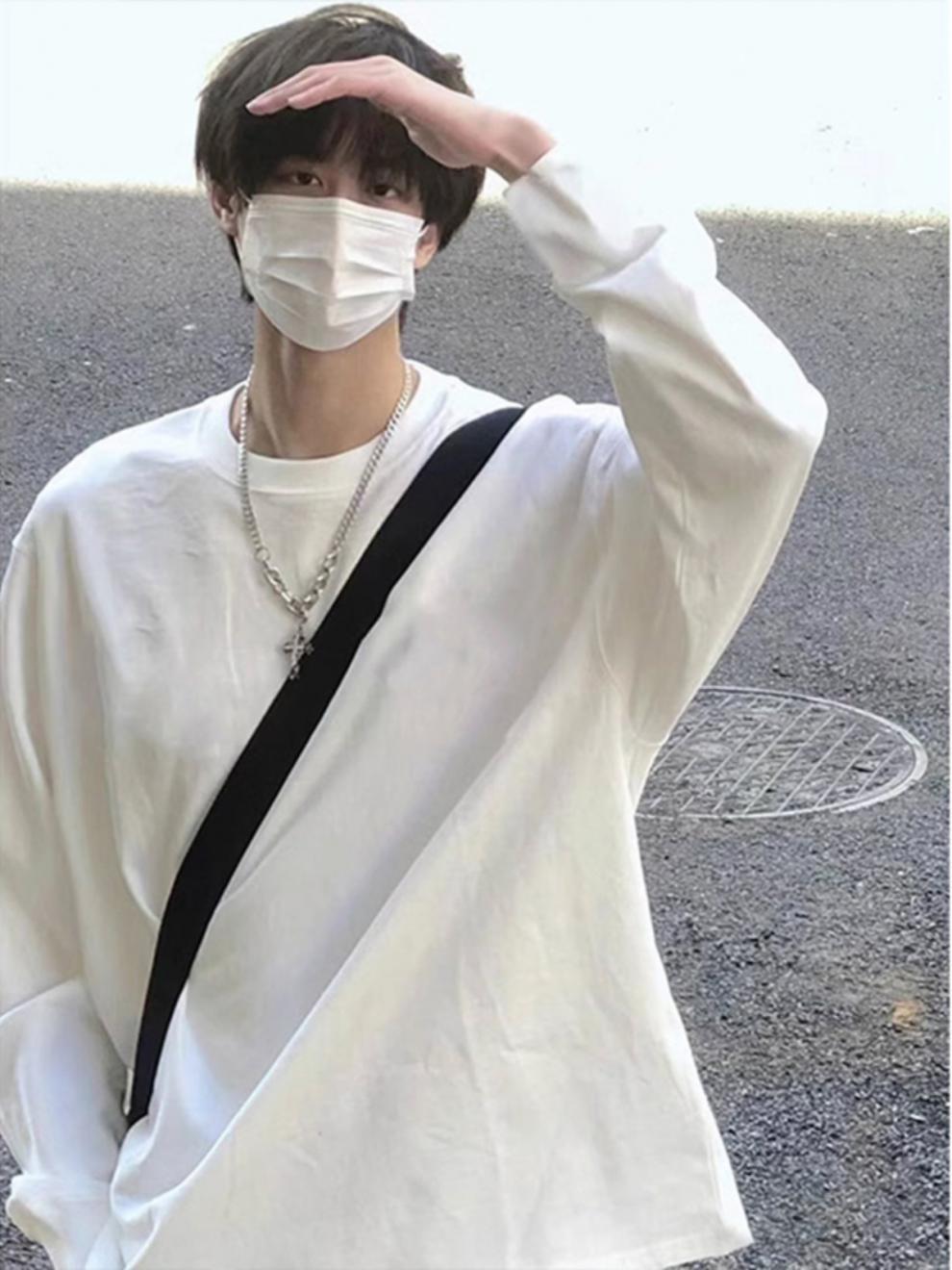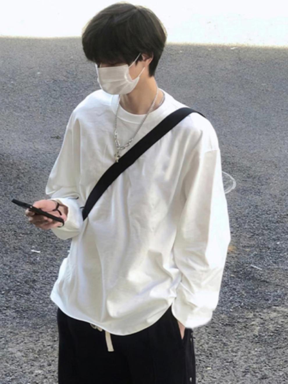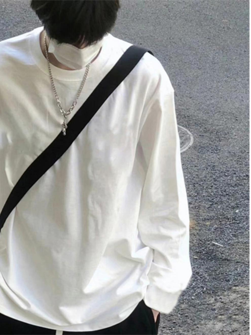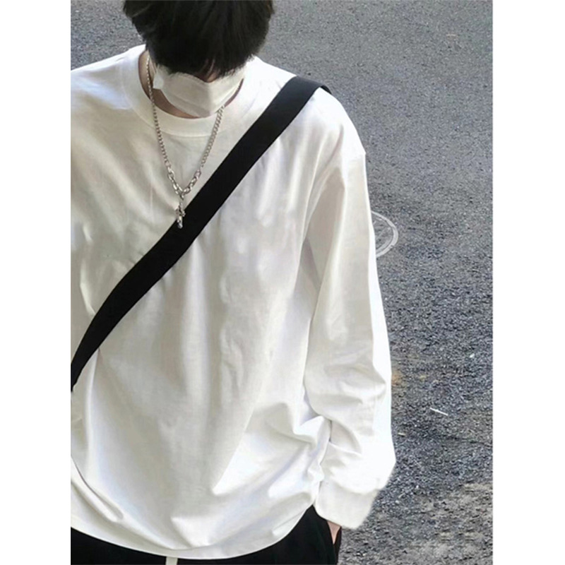 무거운 긴 소매 티셔츠 남성용 봄과 가을 조수 브랜드 하이 스트리트 오버사이즈 퓨어코튼 이너베이스 셔츠 화이트 탑스토어 가기
