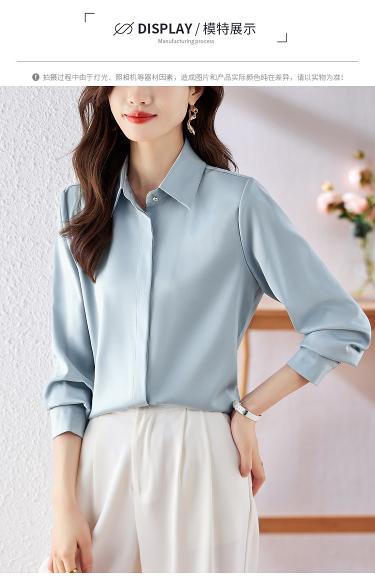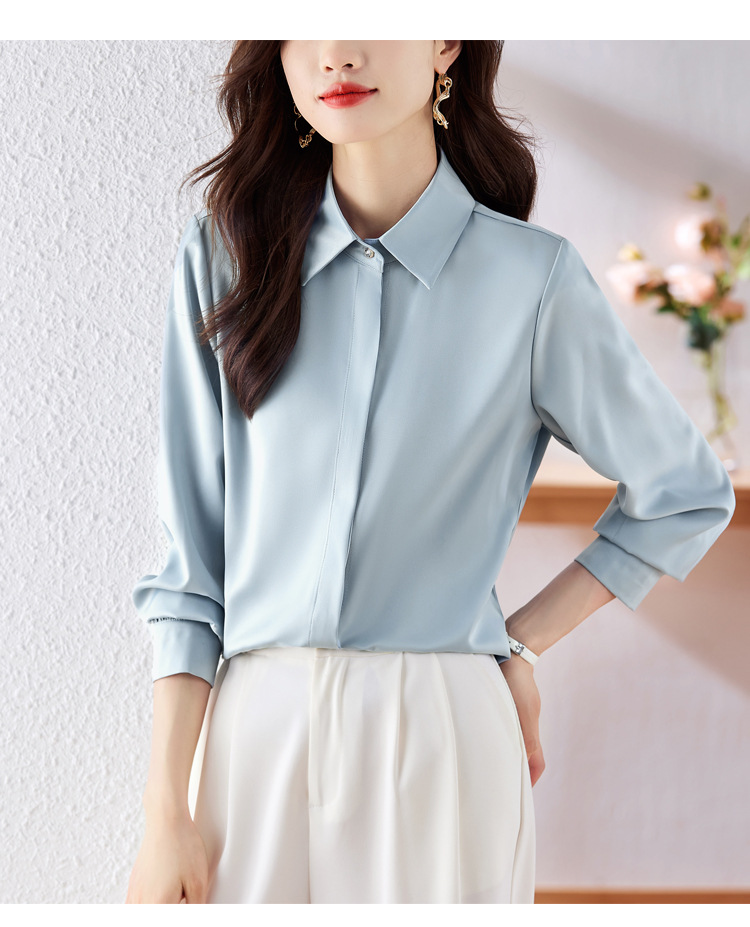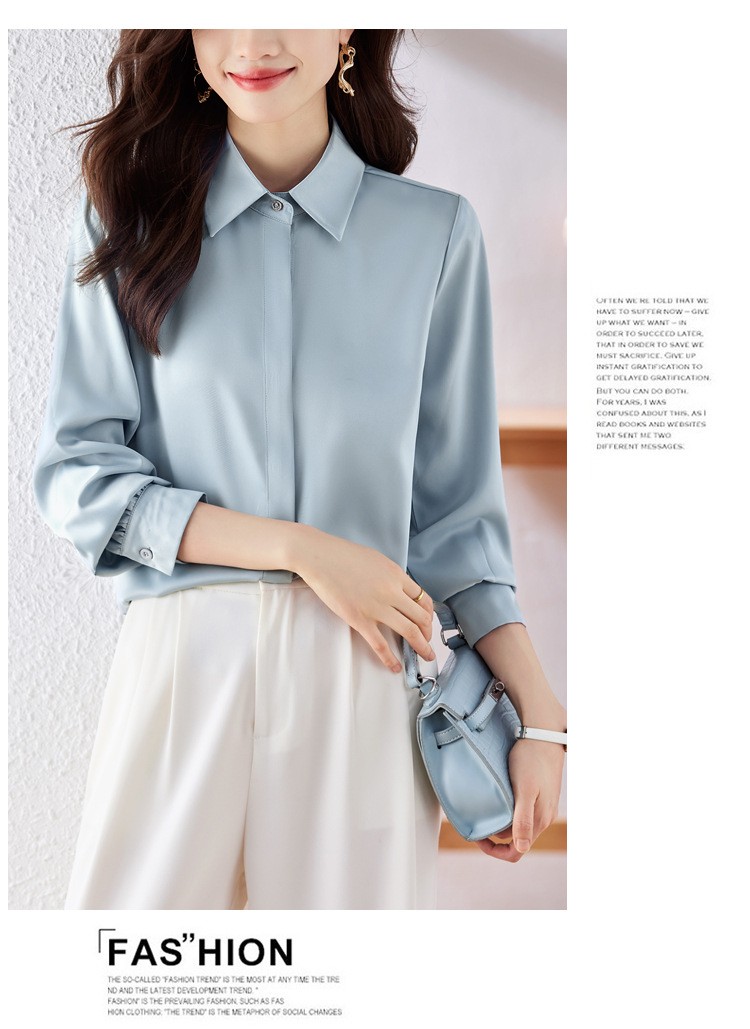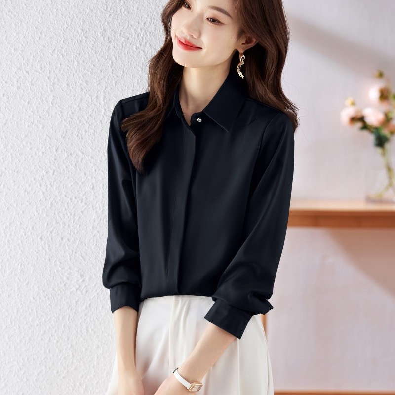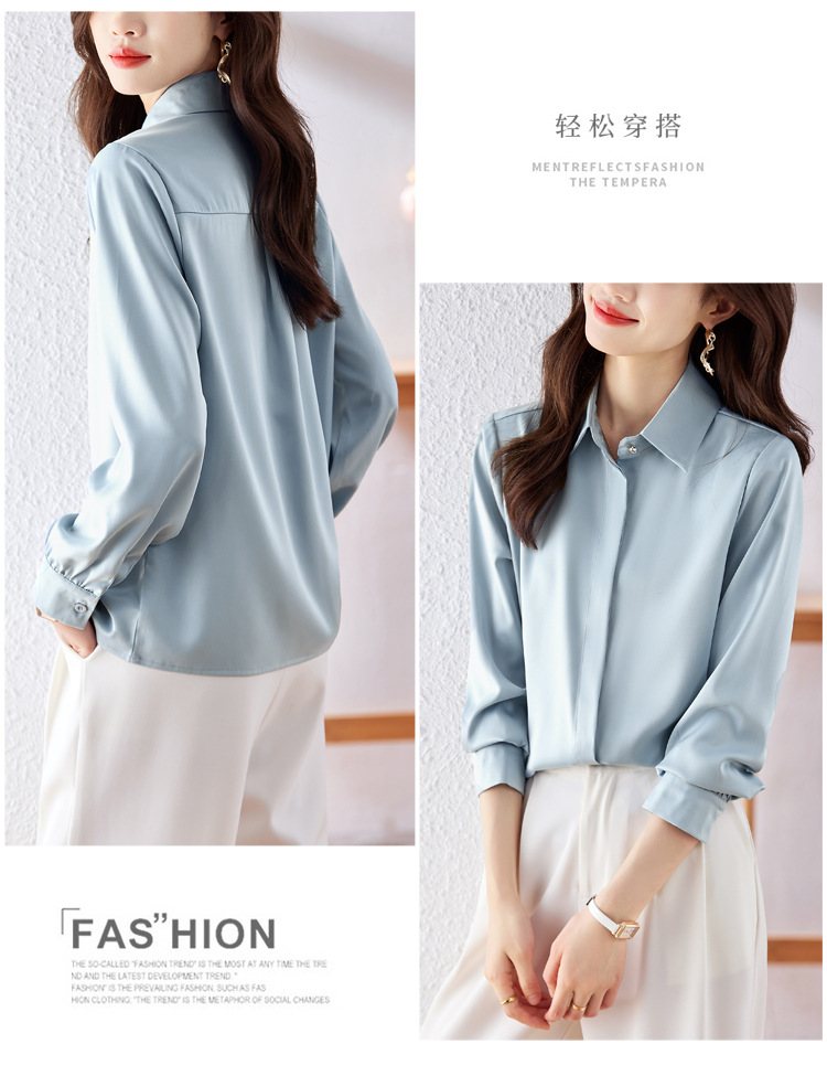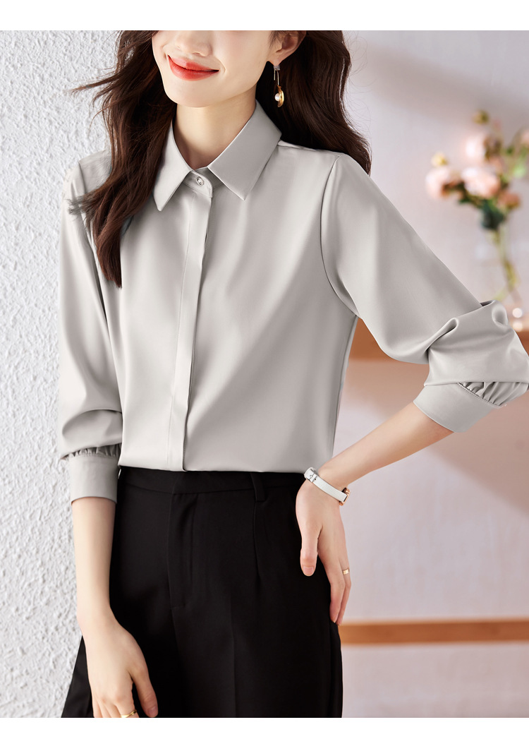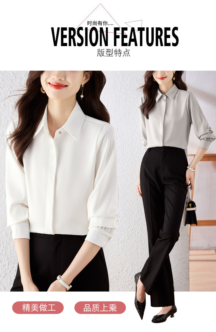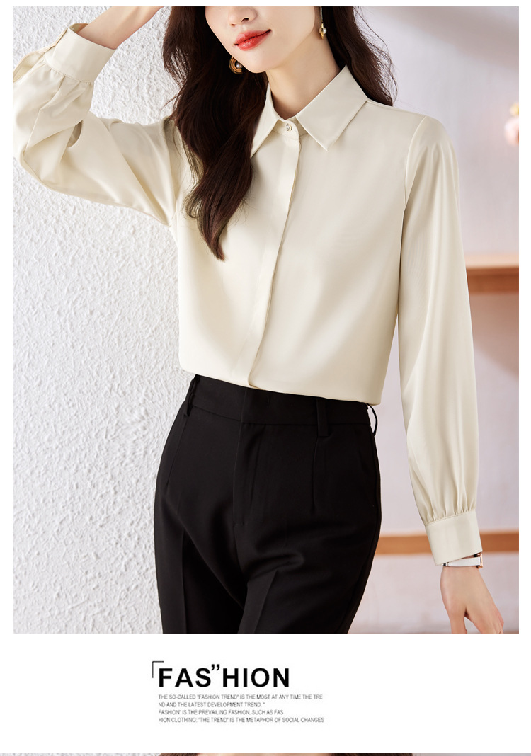 가을 2023 부드러운 흰색 긴팔 셔츠 여성용 OL 우아한 드레이핑 새틴 프렌치 셔츠 틈새 탑스토어 가기