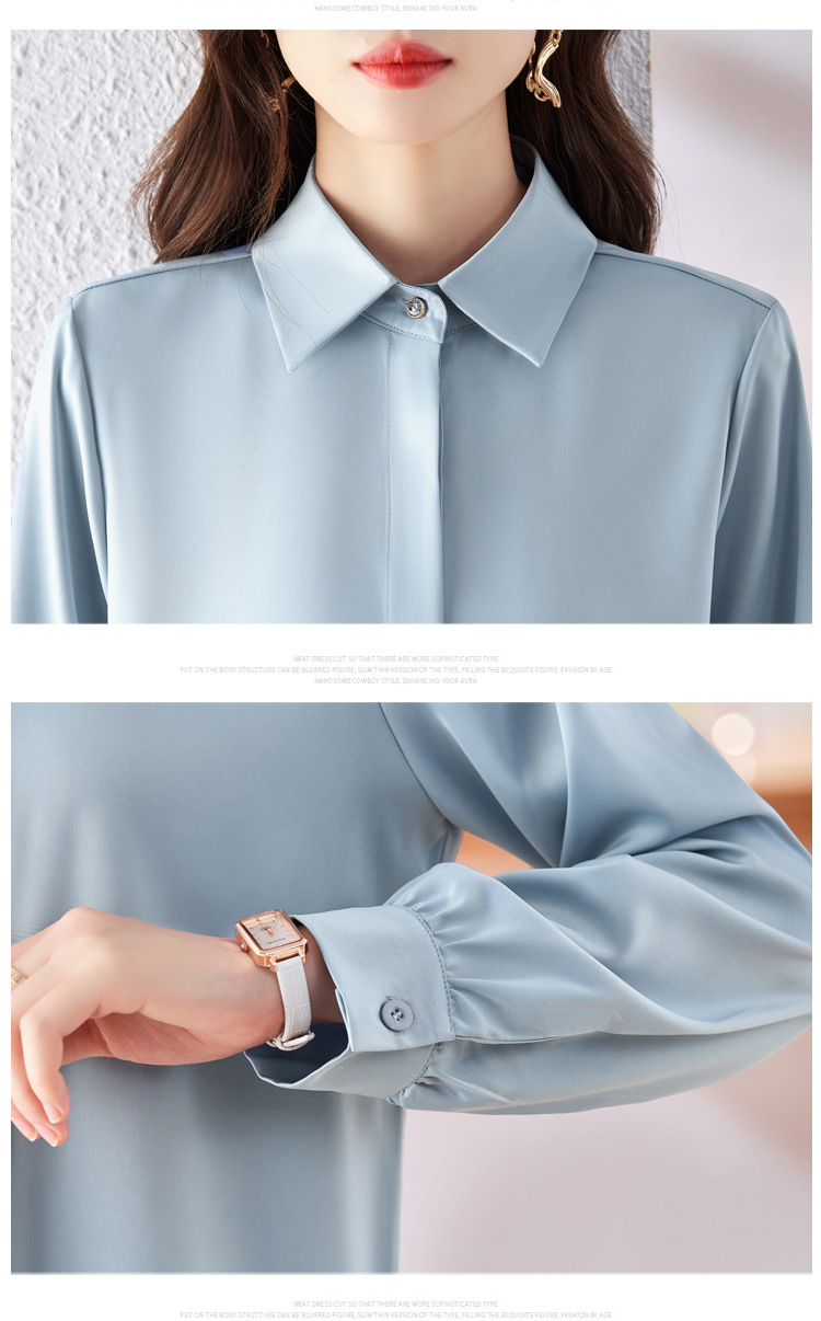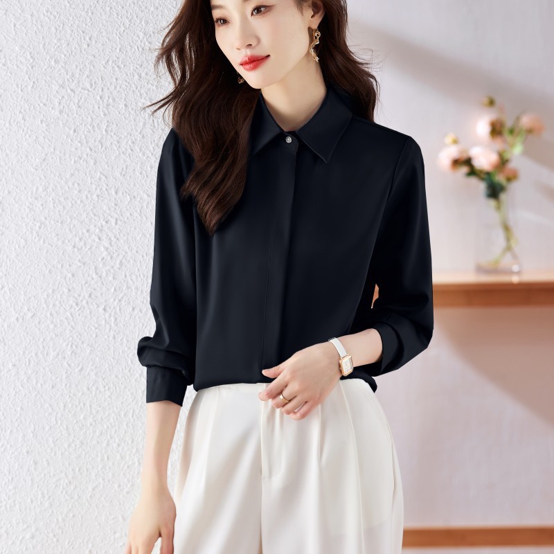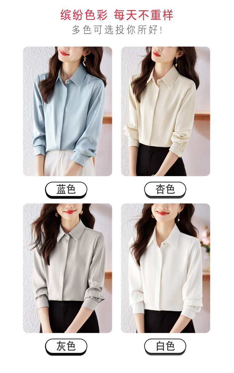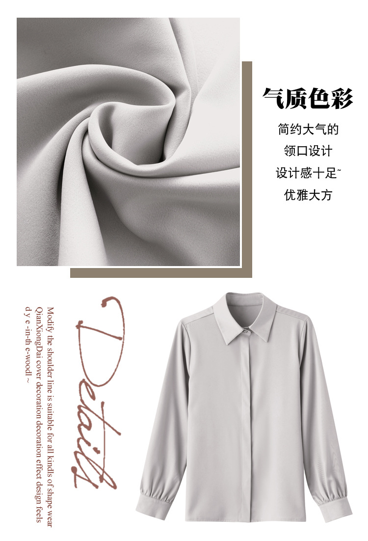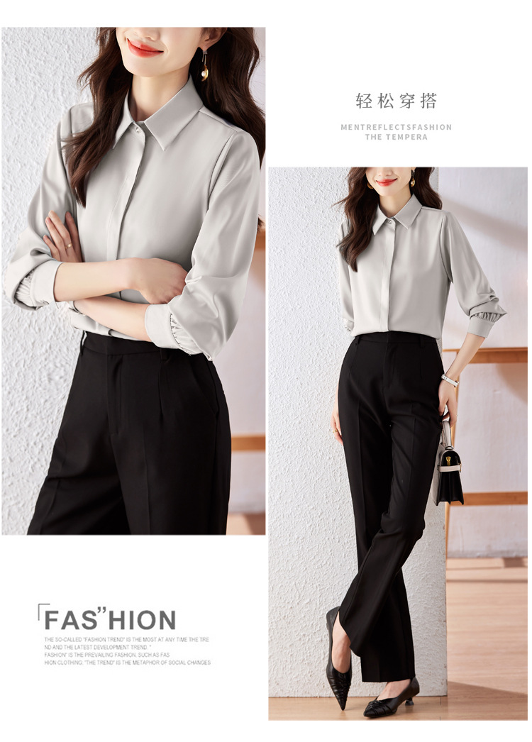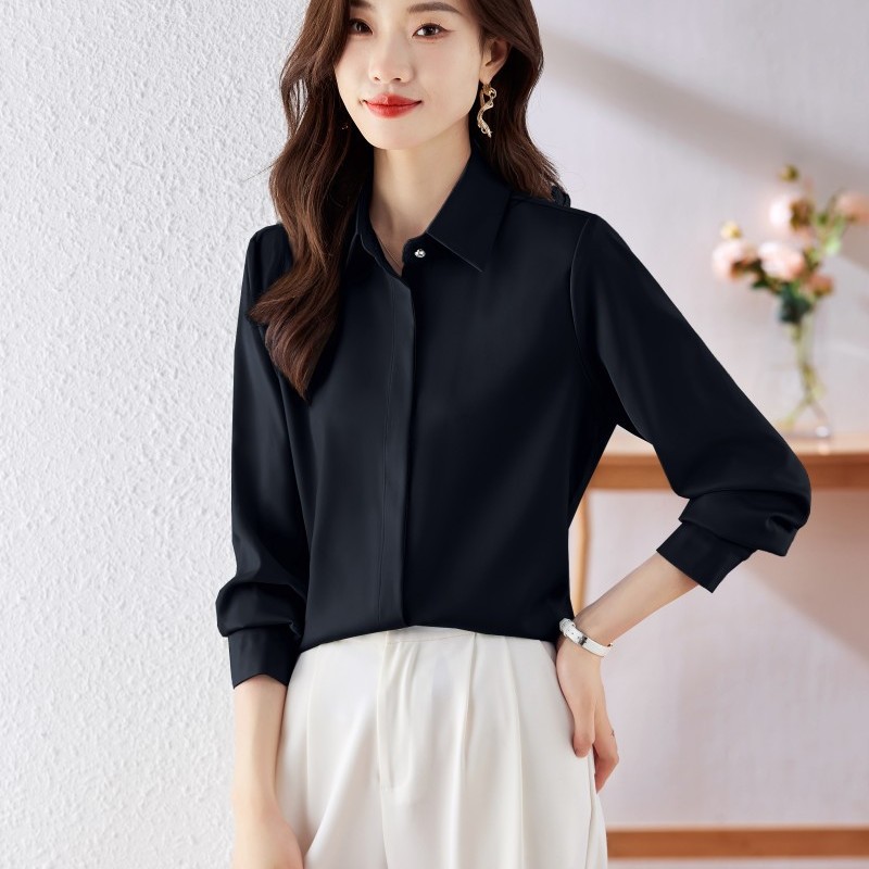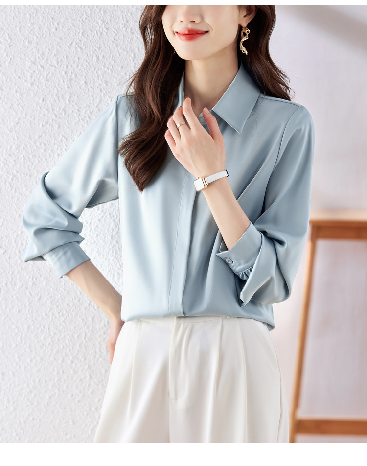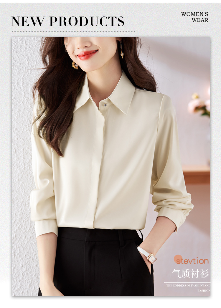 가을 2023 부드러운 흰색 긴팔 셔츠 여성용 OL 우아한 드레이핑 새틴 프렌치 셔츠 틈새 탑스토어 가기