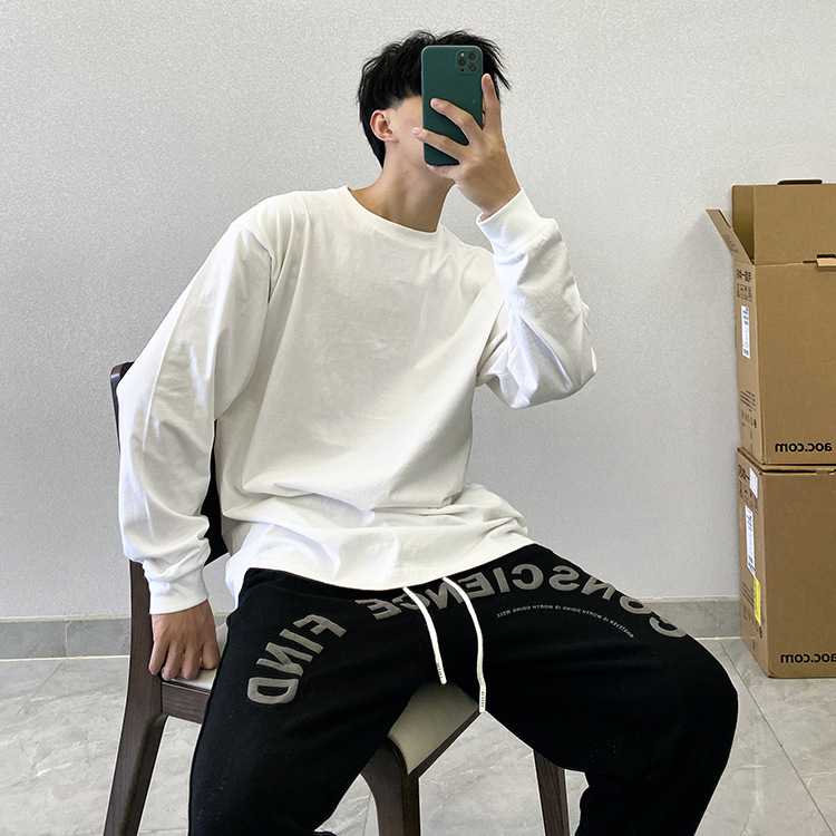 새로운 단색 스웨터 올매치 루즈한 스택 베이스 셔츠 긴팔 티셔츠 남성용 한국 스타일 트렌디 탑스토어 가기