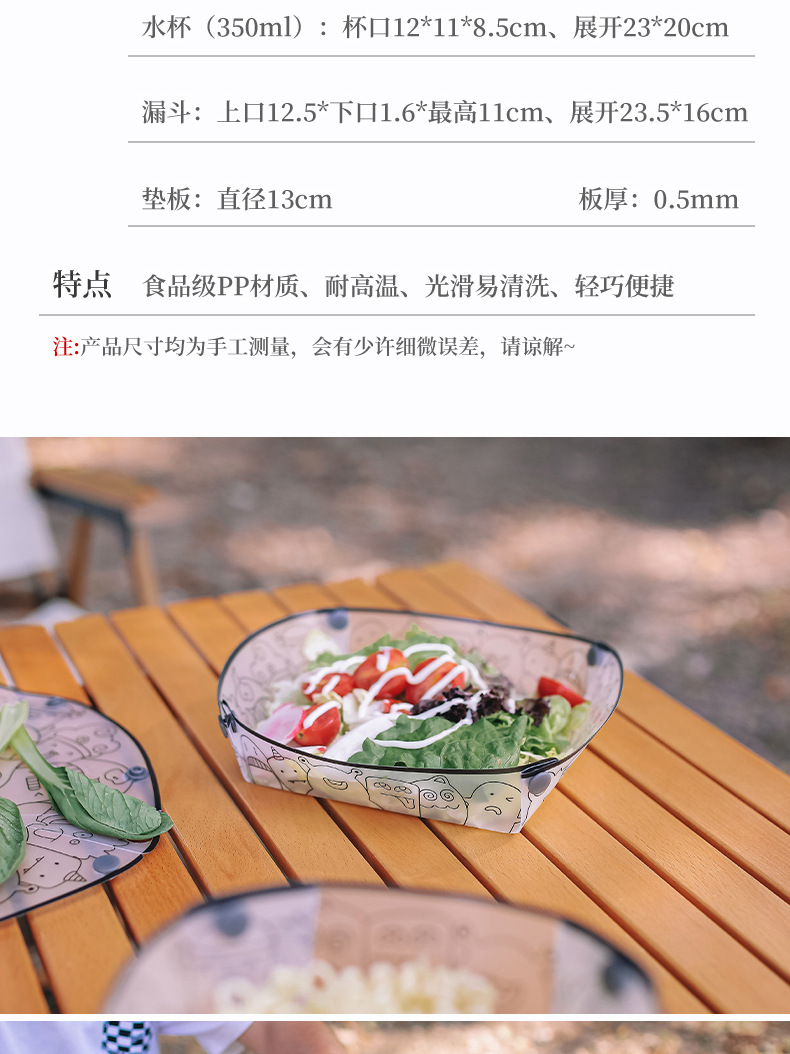 야외 초경량 접이식 식기 휴대용 그릇 디너 플레이트 커피 필터 깔때기 물 컵 다목적 조합 식기 세트