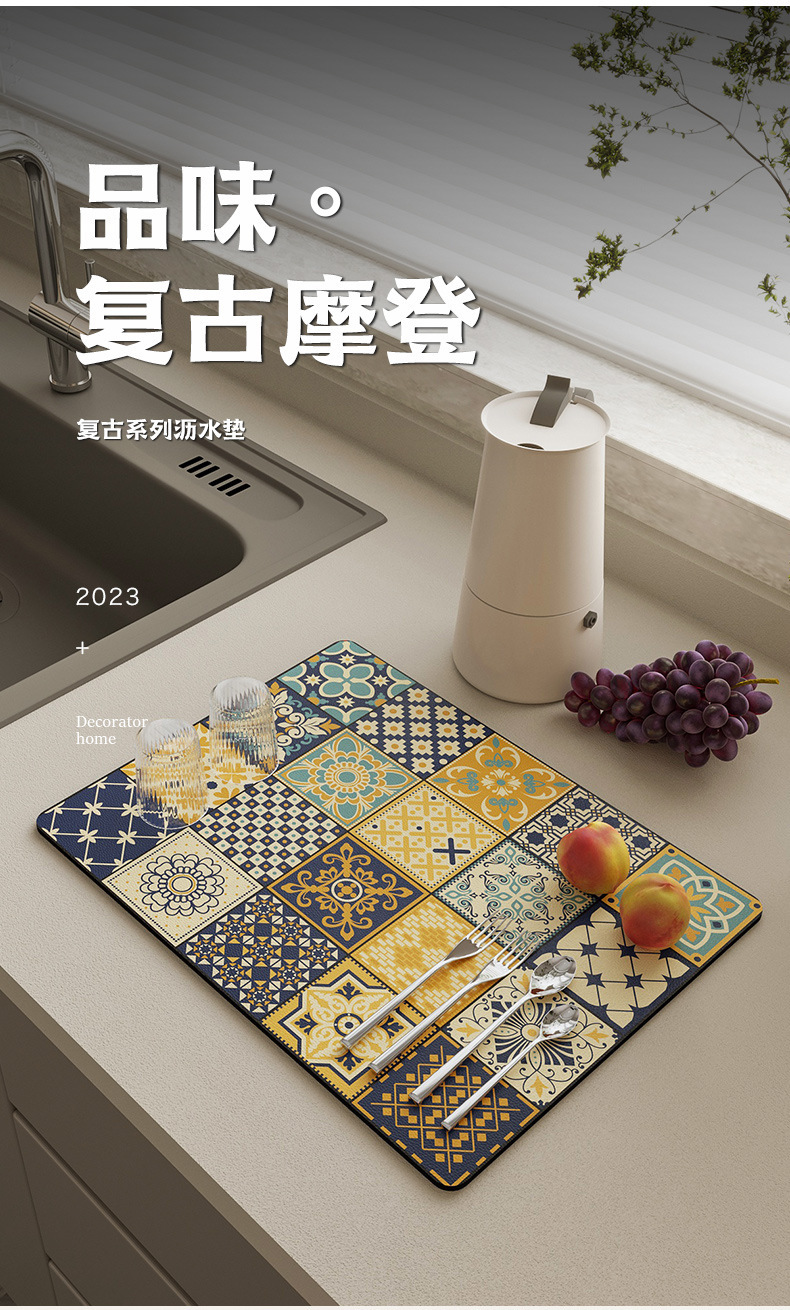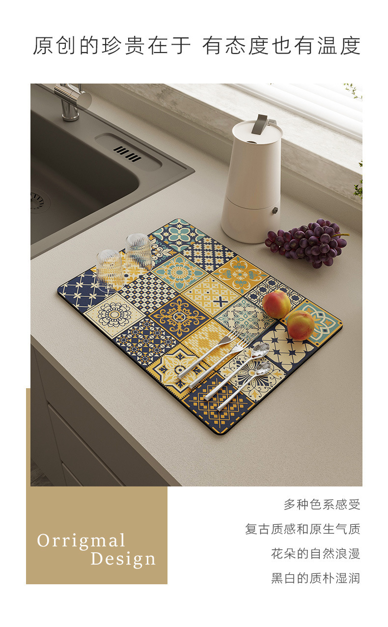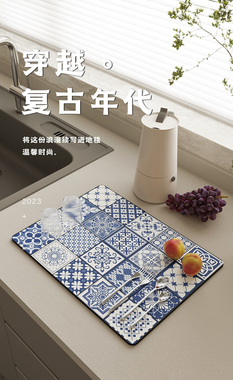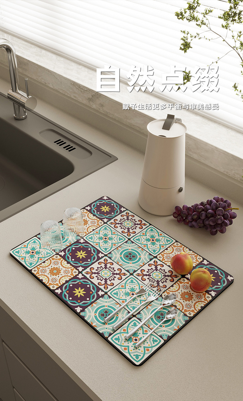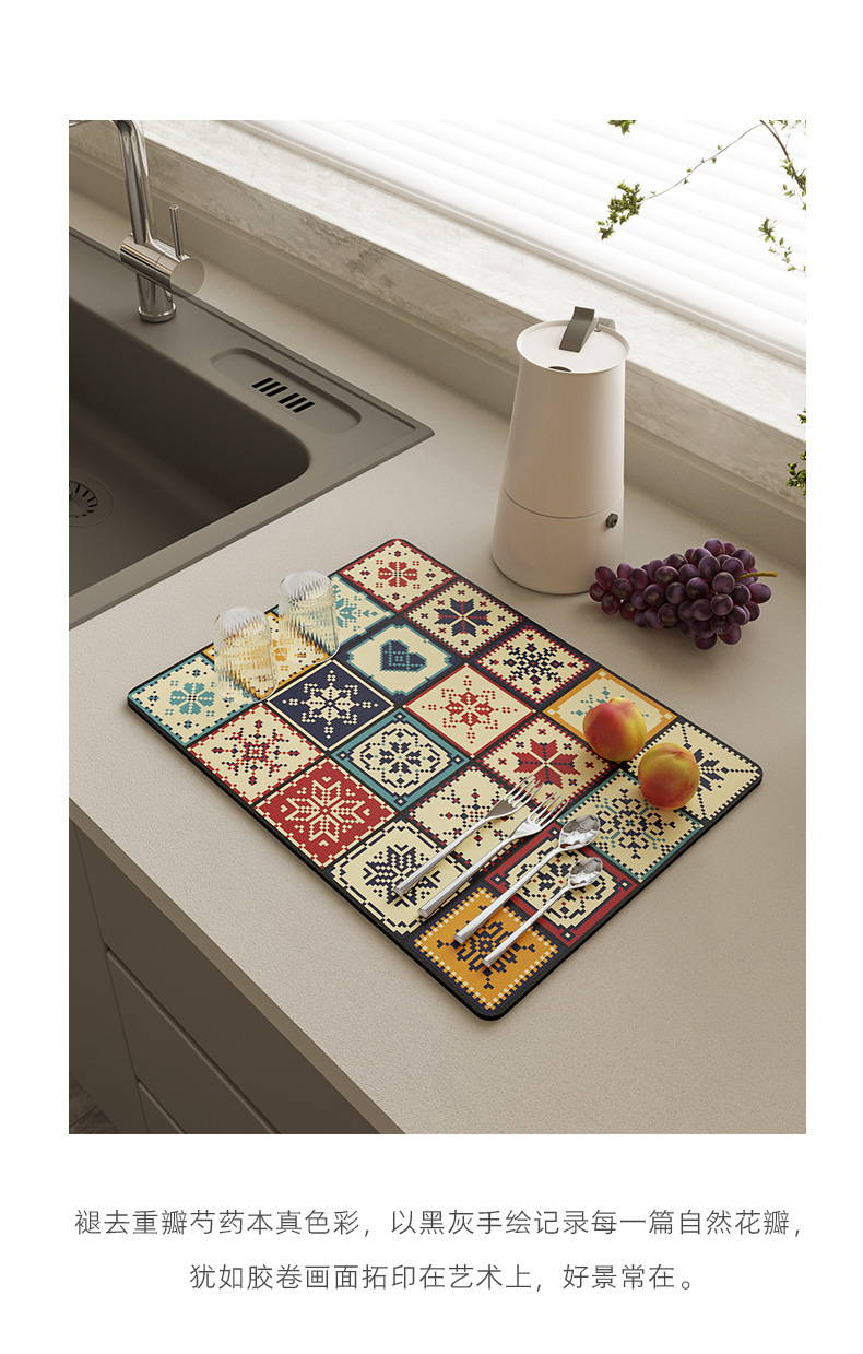 주방 기술 천 배수 매트 식기 그릇 접시 그릇 젓가락 물 제어 매트 데스크탑 티 매트 코스터 조리대 흡수 매트스토어 가기