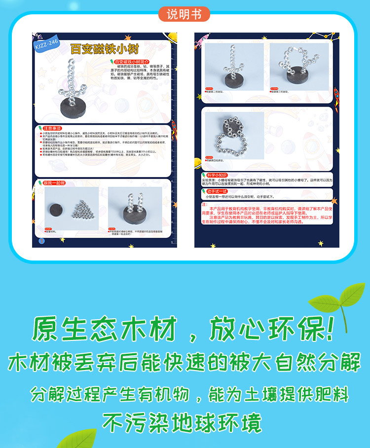 어린이 과학 실험 줄기 다양한 자석 작은 나무 물리적 diy 작은 생산 자석 창조적 인 장난감 도매스토어 가기