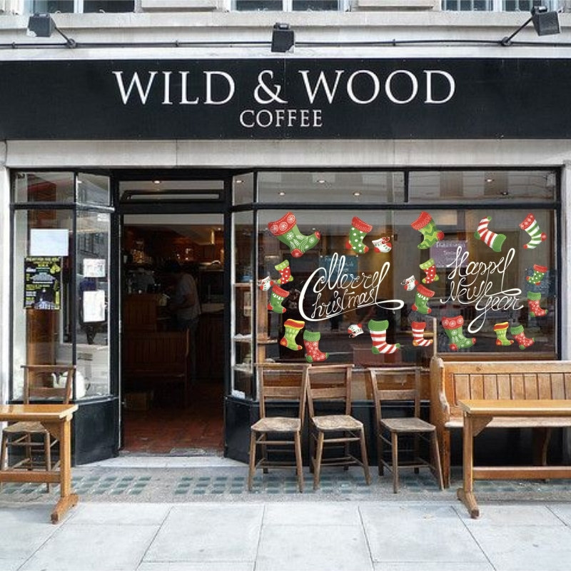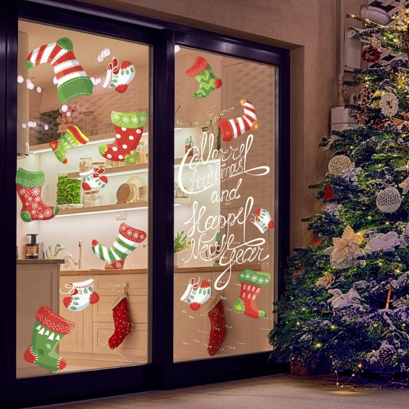Yiyao 크로스 보더 크리스마스 양말 스티커 벽 스티커 상점 창 유리 휴일 미화 장식 정전기 창 스티커스토어 가기