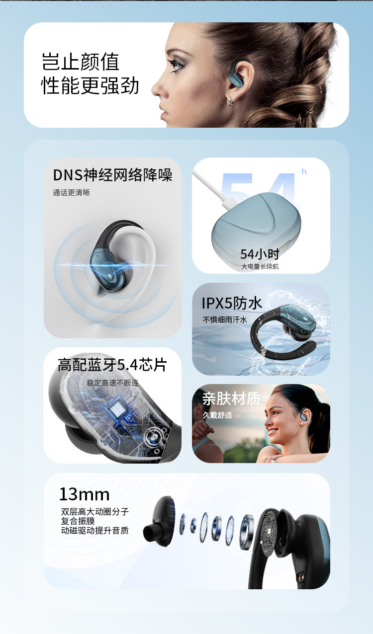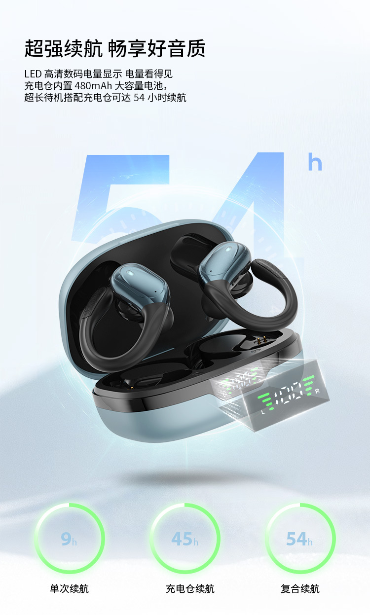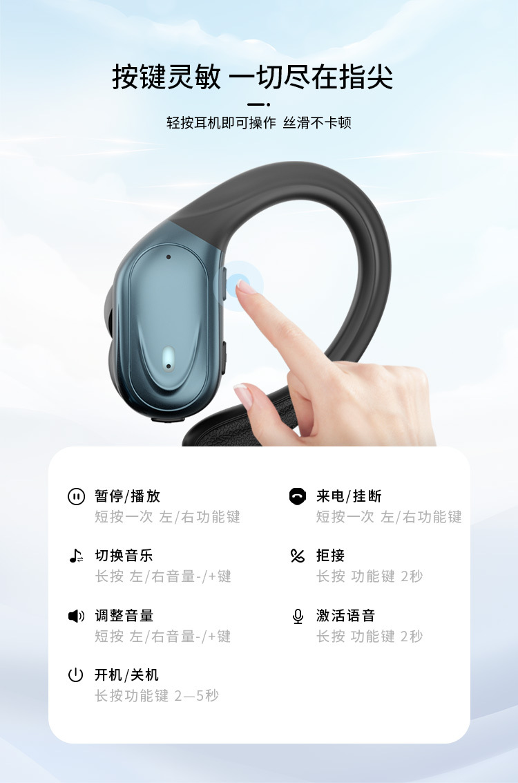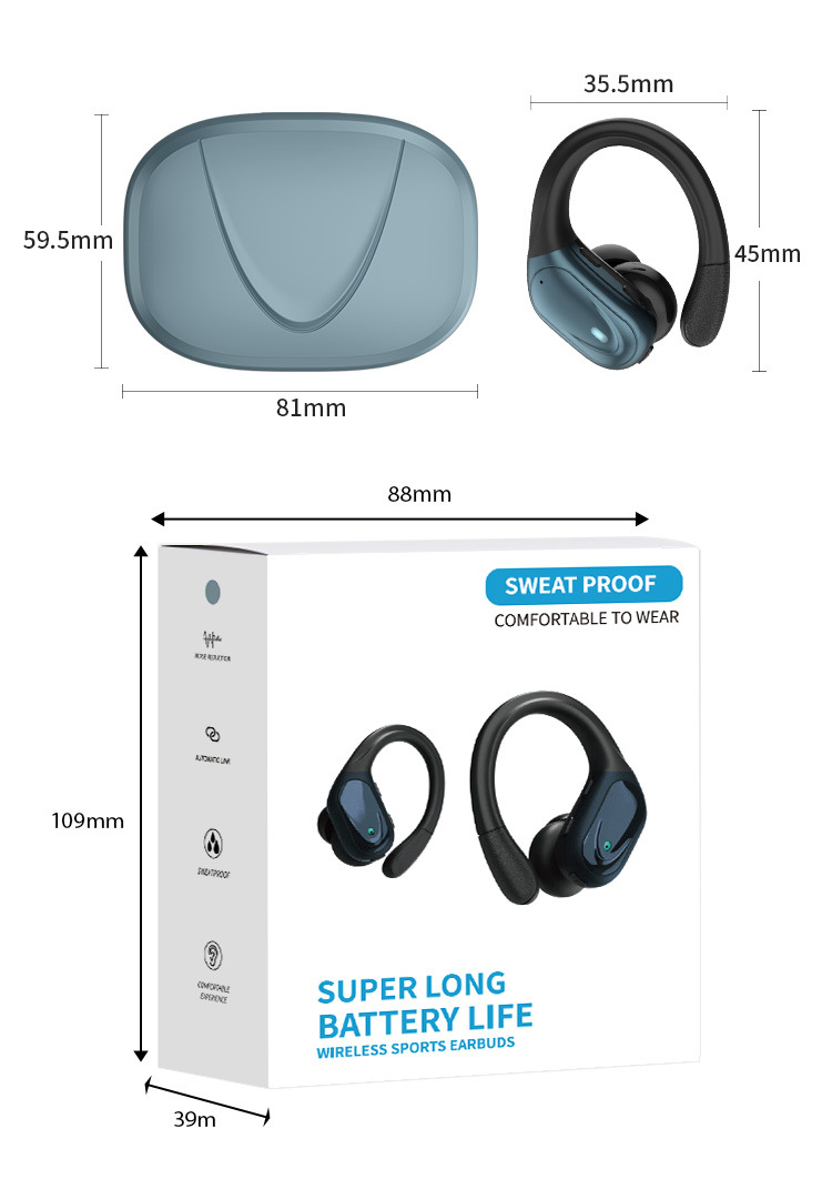 맞춤형 OEM 스마트 디지털 IPX5 방수 스포츠 유니버설 이어 매달린 무선 헤드셋은 블루투스 헤드셋을 제거 할 수 없습니다.스토어 가기