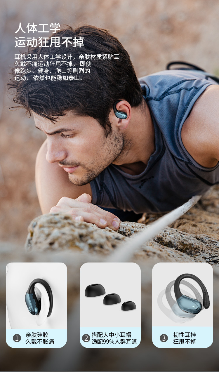 맞춤형 OEM 스마트 디지털 IPX5 방수 스포츠 유니버설 이어 매달린 무선 헤드셋은 블루투스 헤드셋을 제거 할 수 없습니다.