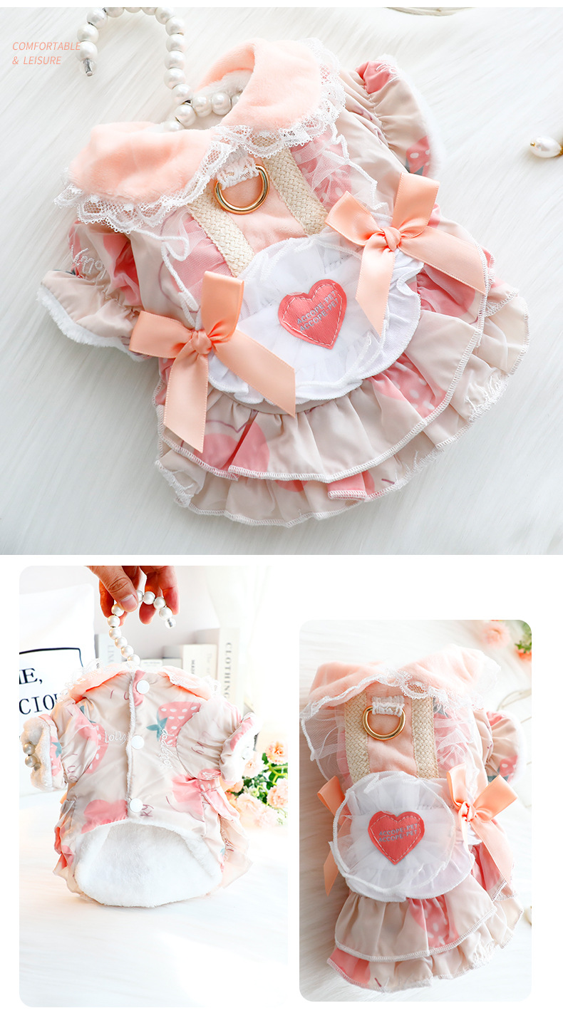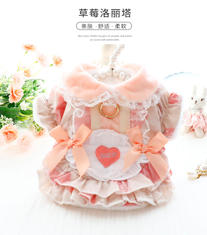 개 옷 가을과 겨울 고양이 공주 원피스 기모 두꺼운 달콤한 로리타 작은 개 애완 동물 4884 도매스토어 가기