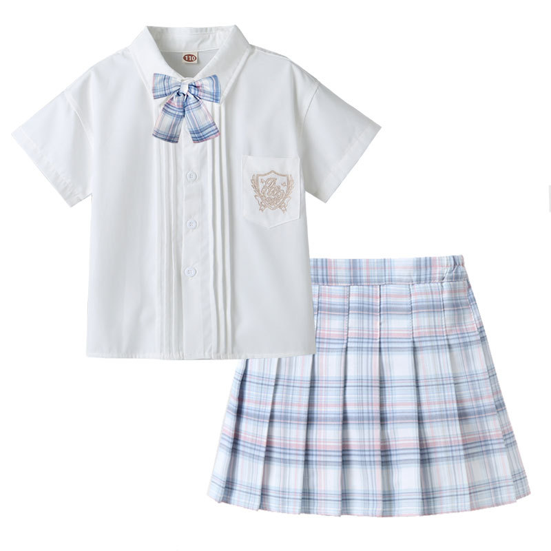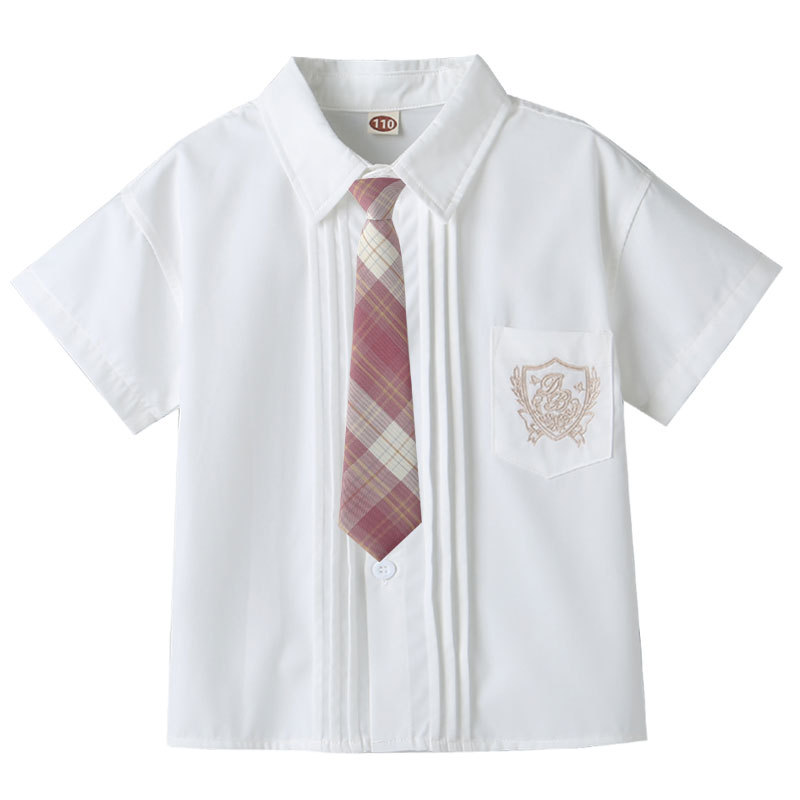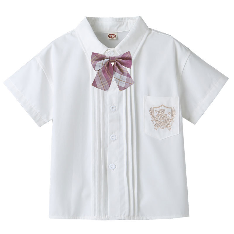 여아 셔츠 여름 반팔 아동복 자수 jk 대학 스타일 중 및 고등학생 중 및 큰 어린이 탑 어린이 흰색 셔츠