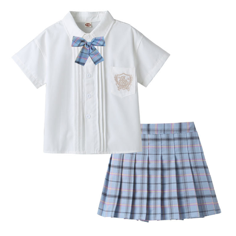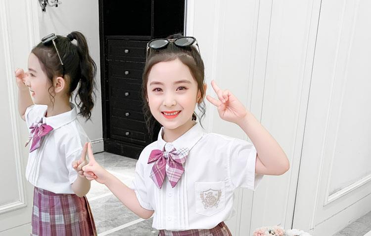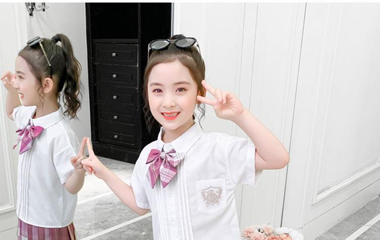 여아 셔츠 여름 반팔 아동복 자수 jk 대학 스타일 중 및 고등학생 중 및 큰 어린이 탑 어린이 흰색 셔츠스토어 가기