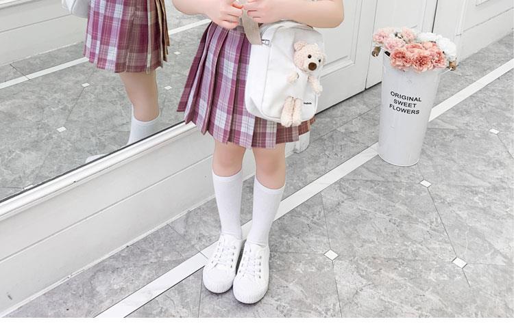 • Jk 뾰족한 칼라 반팔 셔츠 + 담홍색 격자 무늬 나비 넥타이 담홍색 격자 무늬 치마