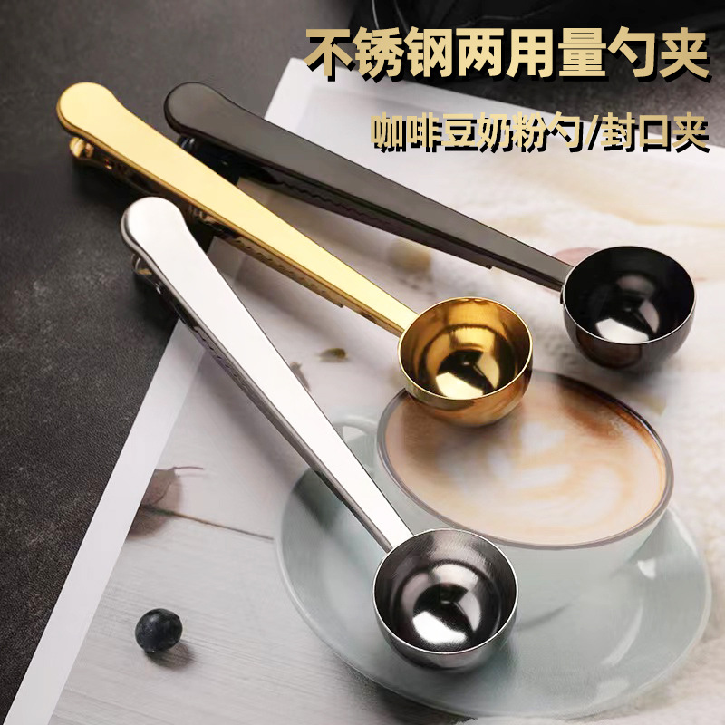 430 스테인레스 커피 스푼 클립 투인원 클로저 클립 분유 스푼 커피 빈 클립 계량 스푼 클립 이중 용도 스푼