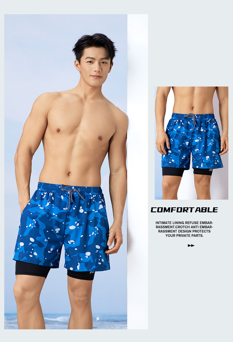 361 남성용 수영 트렁크 5 점 바지 2 층 당황 방지 수영 트렁크 남성용 속건 전문 스포츠 수영 장비