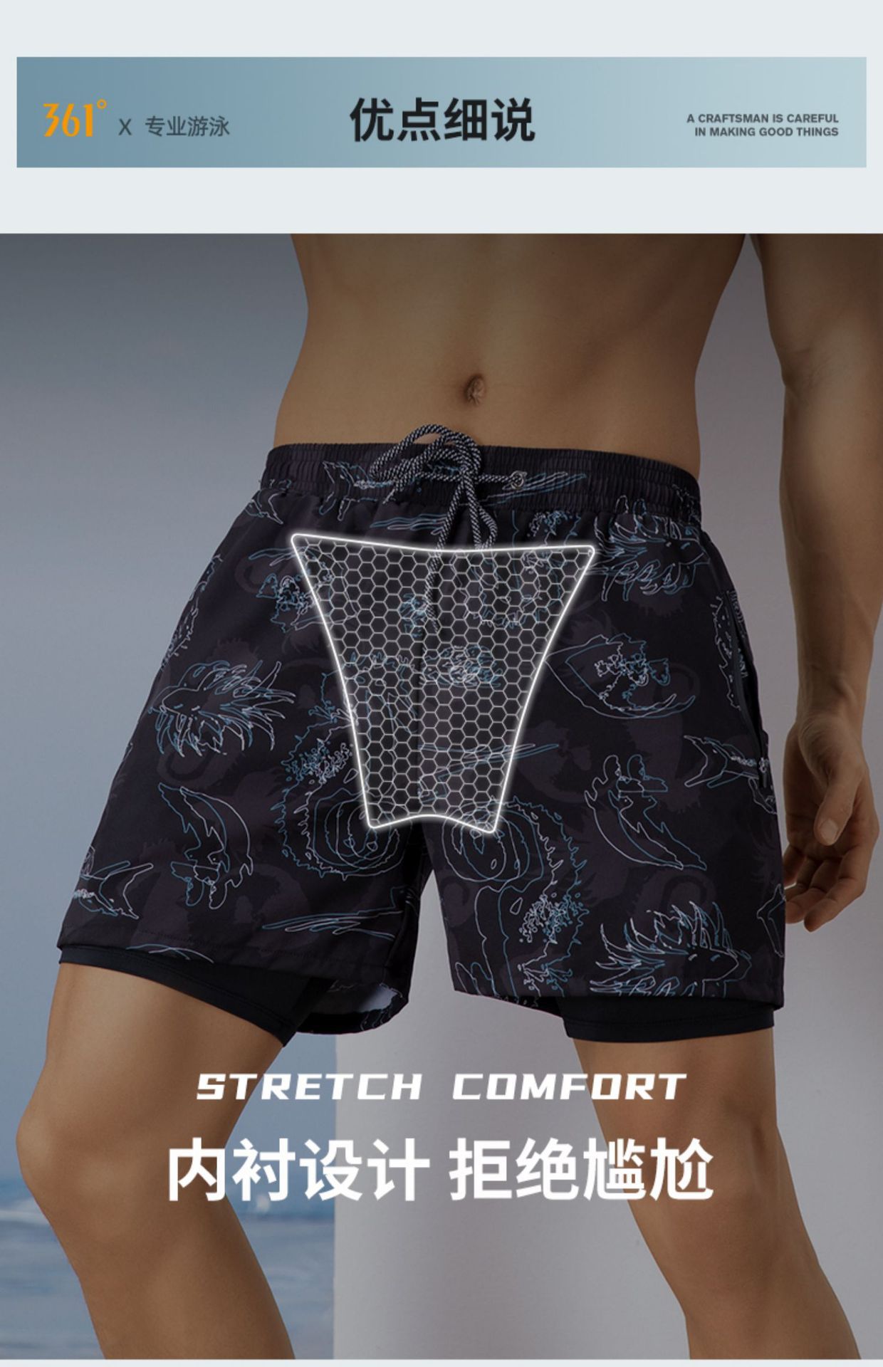 361 남성용 수영 트렁크 5 점 바지 2 층 당황 방지 수영 트렁크 남성용 속건 전문 스포츠 수영 장비스토어 가기