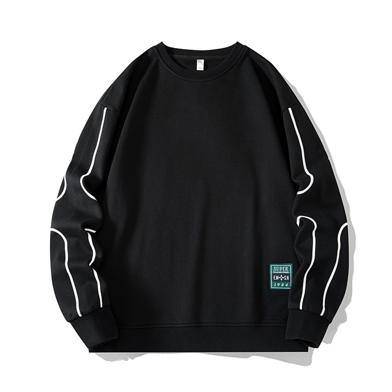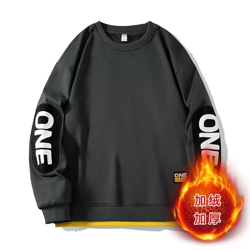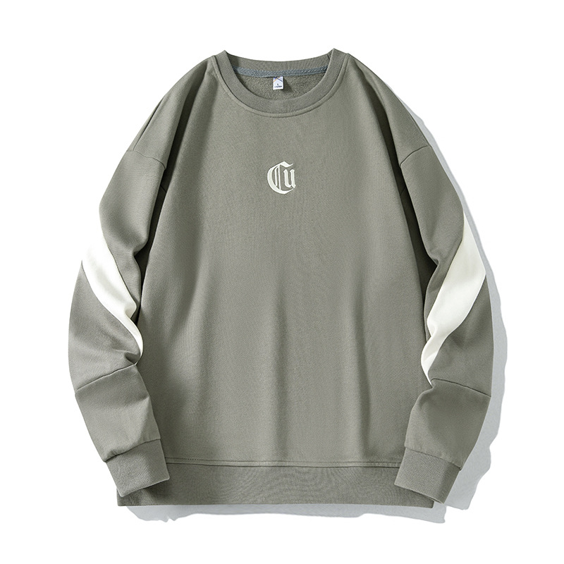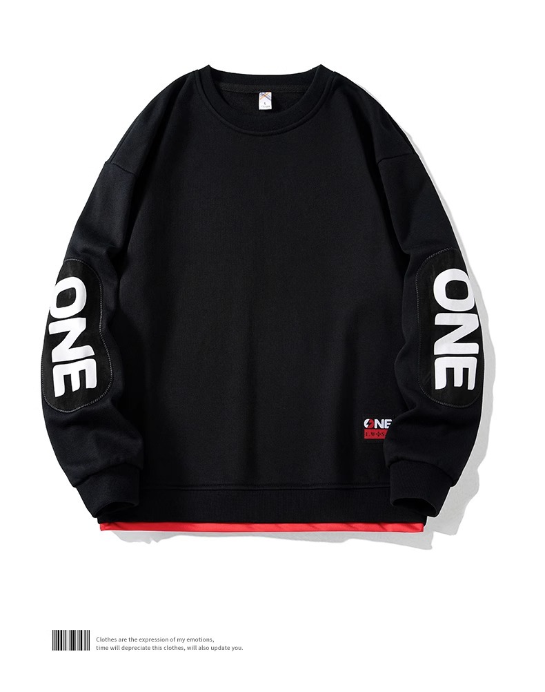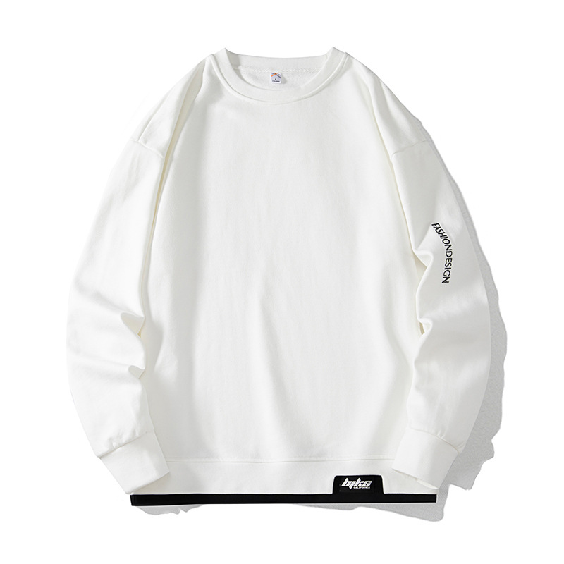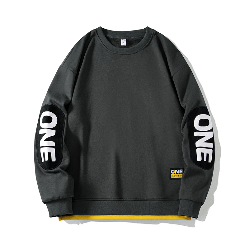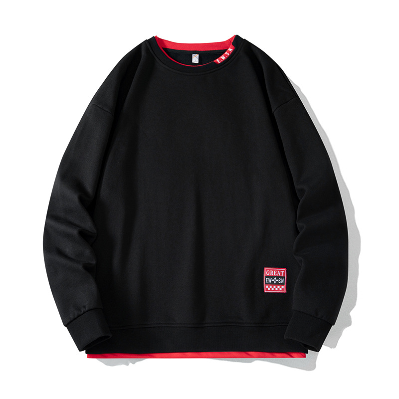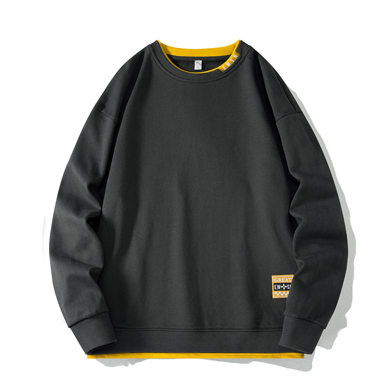 2025 봄/가을 신상 라운드넥 스웨트셔츠 남성용 루즈핏 캐주얼 긴팔 티셔츠 페이크 투피스 상의 이너웨어