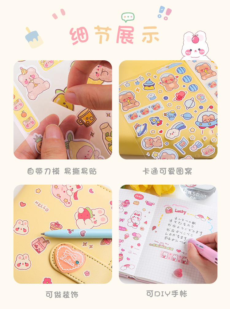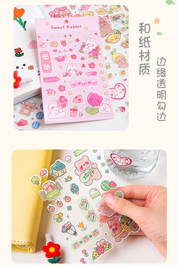 스타일 소녀의 심장 만화 귀여운 곰 토끼 손 계정 스티커 일기 물 컵 보온병 휴대 전화 쉘 장식 스티커스토어 가기
