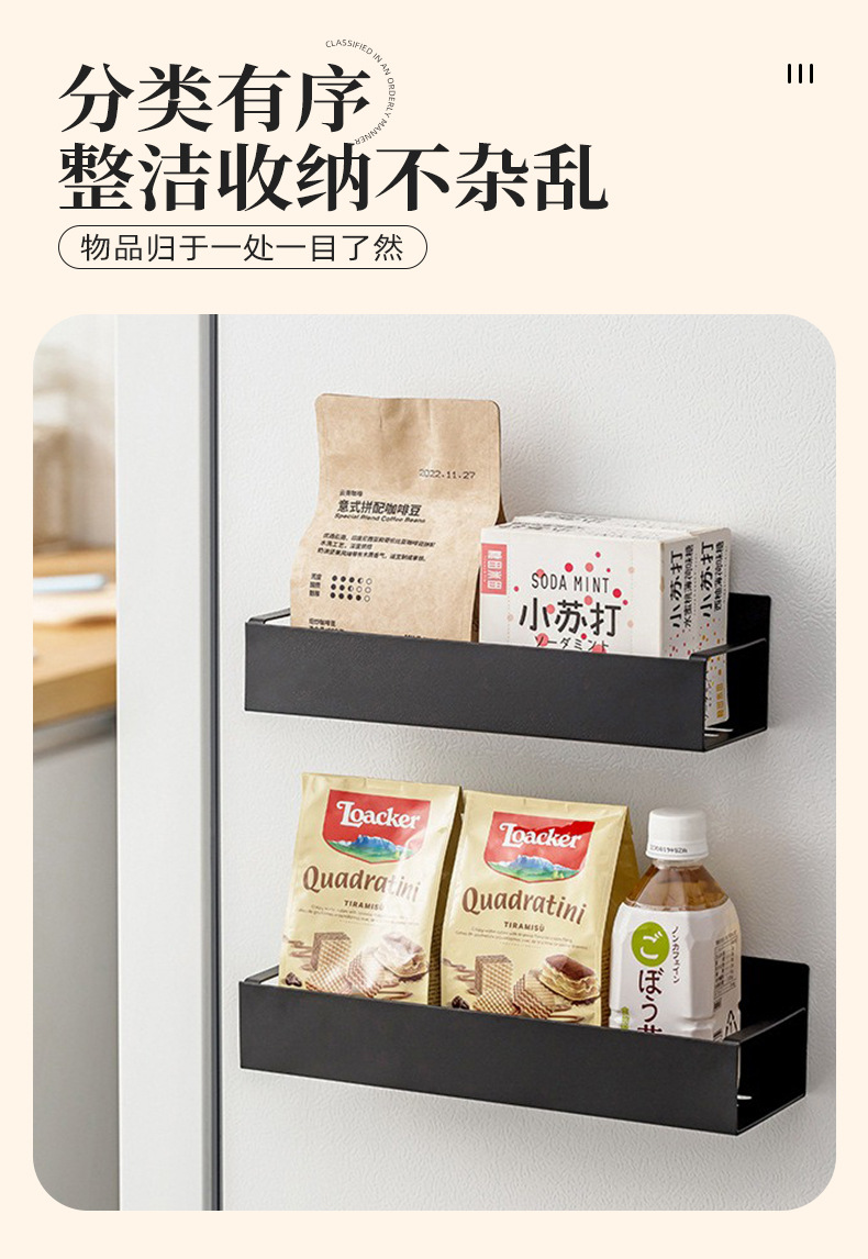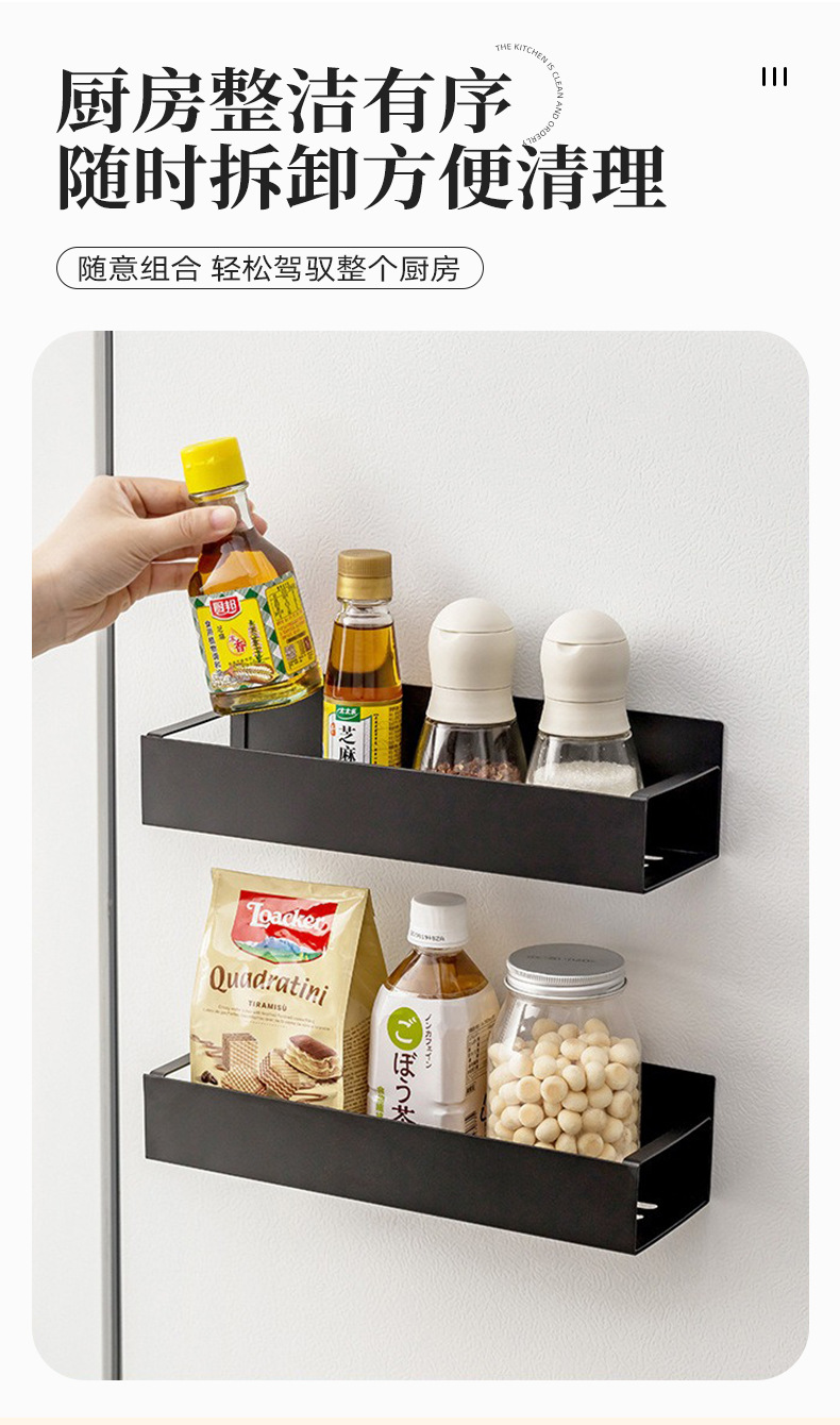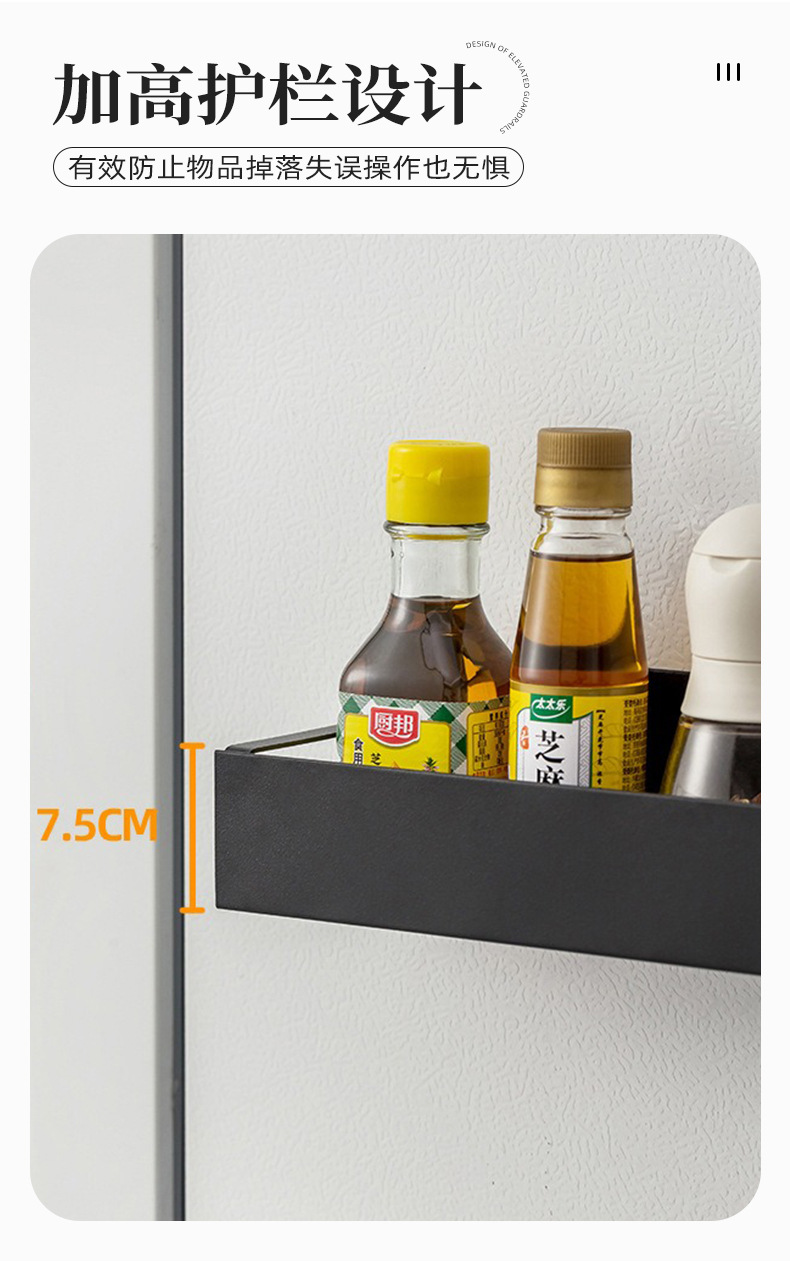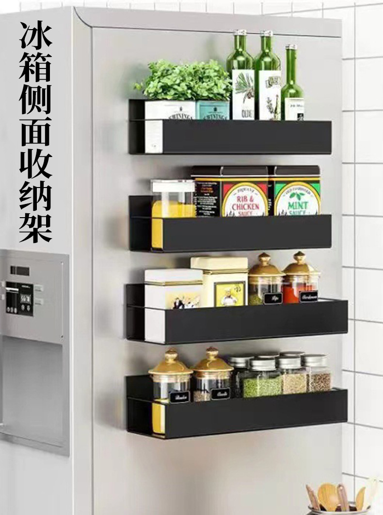 跨境爆款收纳侧面磁吸冰箱置物架 免打孔多层式厨房调料置物架