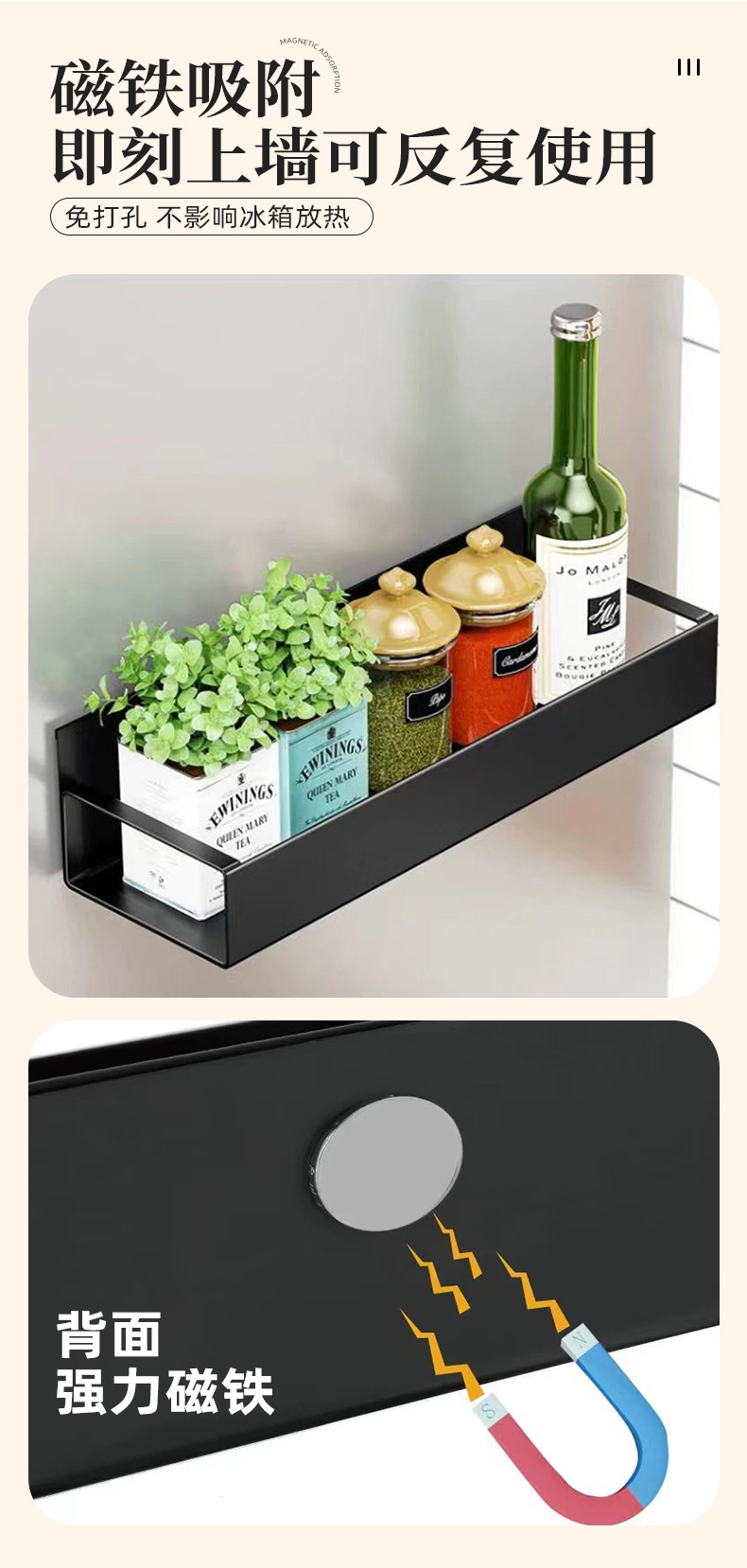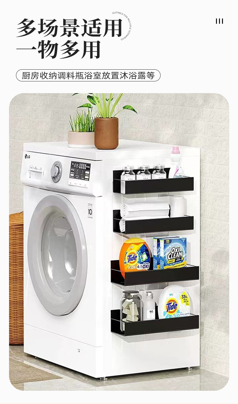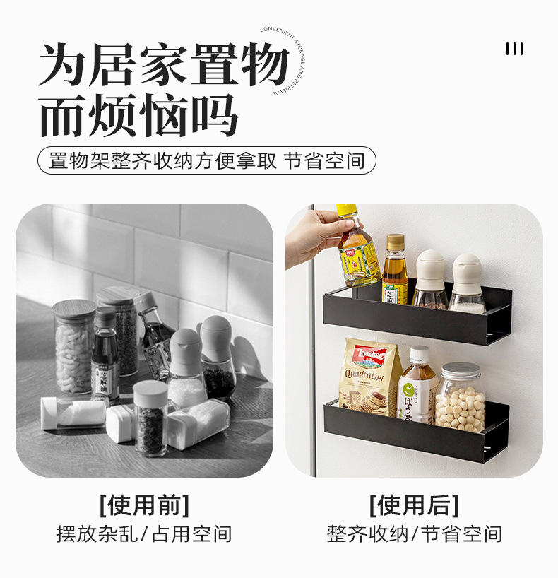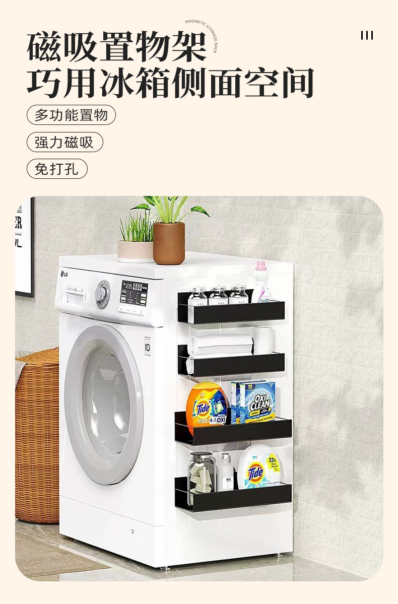 跨境爆款收纳侧面磁吸冰箱置物架 免打孔多层式厨房调料置物架