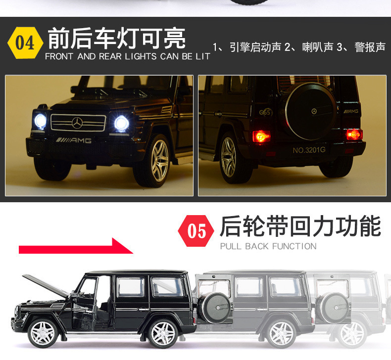 Jianyuan 합금 1:32 메르세데스-벤츠 대형 GG65 오프로드 차량 모델 사운드 및 라이트 풀 백 자동차 모델 장난감 자동차 장식 컬렉션