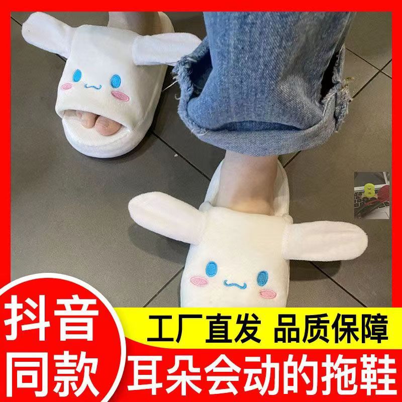 Yugui 개 귀 움직일 수 있는 슬리퍼 겨울 여름 큰 귀 개 토끼 면 두꺼운 따뜻한 슬리퍼