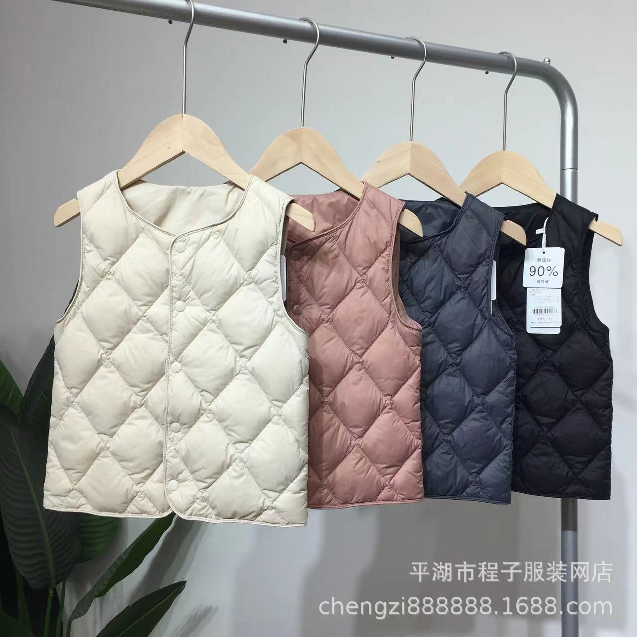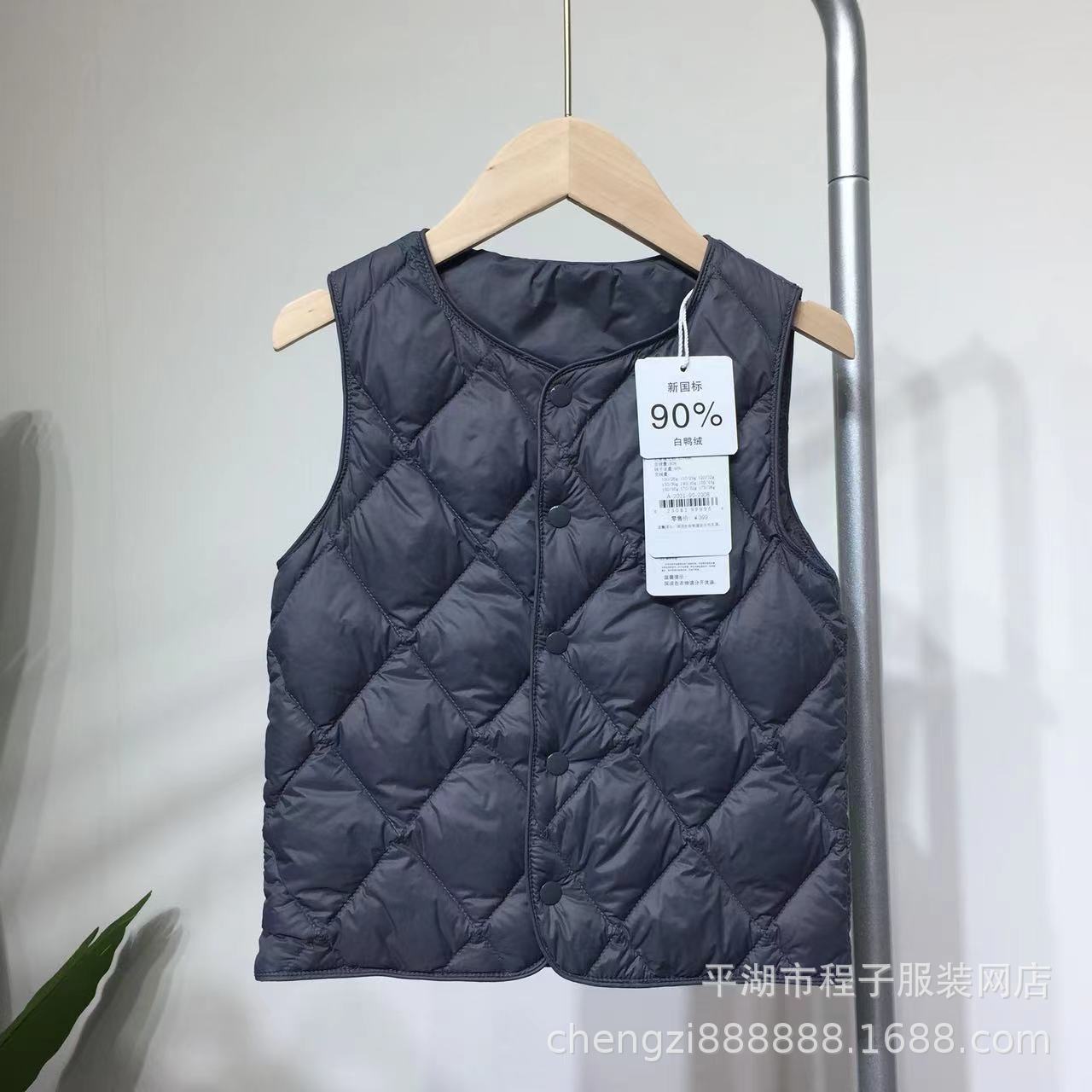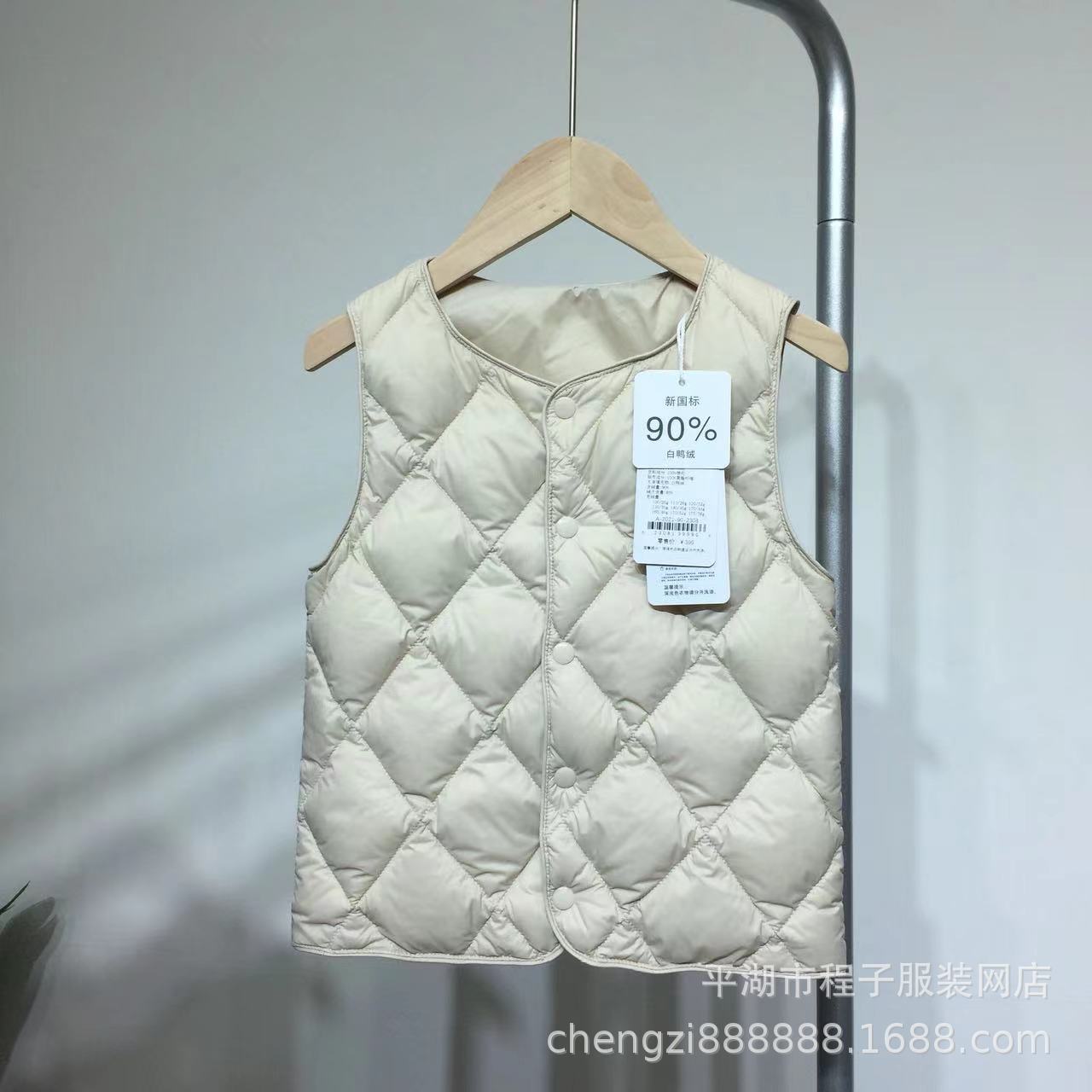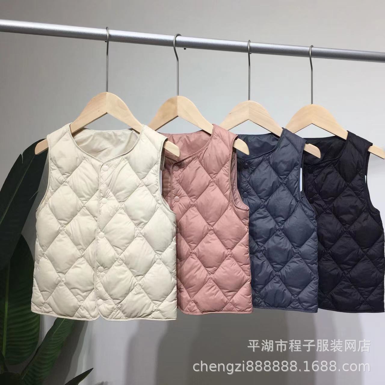 어린이 90 벨벳 내부 착용 외부 착용 다운 조끼 가을과 겨울 내부 탱크 소년과 소녀 부모-자식 라운드 넥 격자 무늬