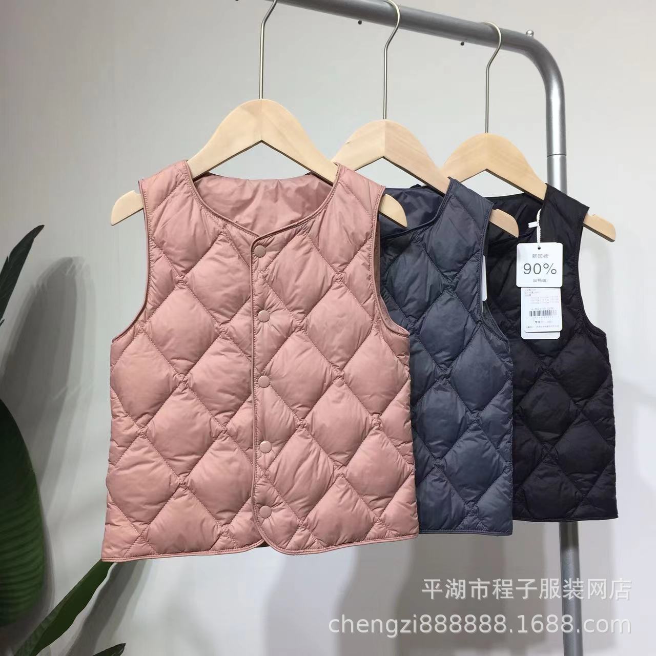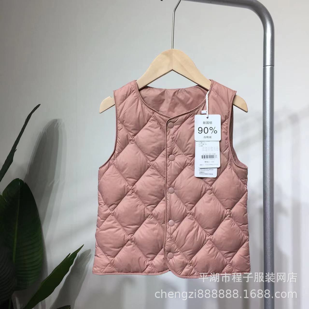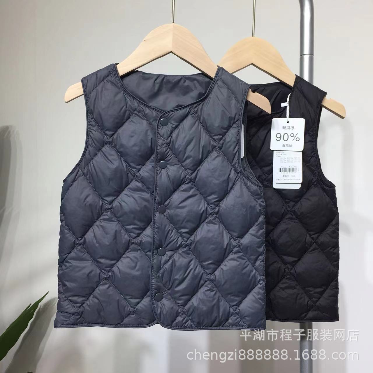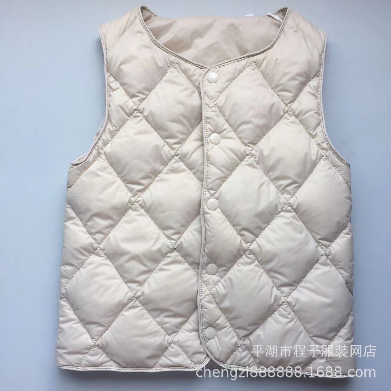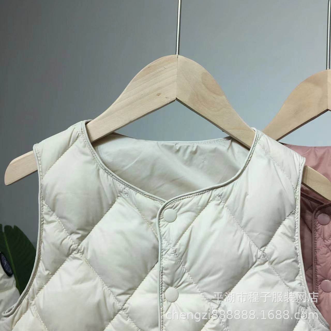 어린이 90 벨벳 내부 착용 외부 착용 다운 조끼 가을과 겨울 내부 탱크 소년과 소녀 부모-자식 라운드 넥 격자 무늬