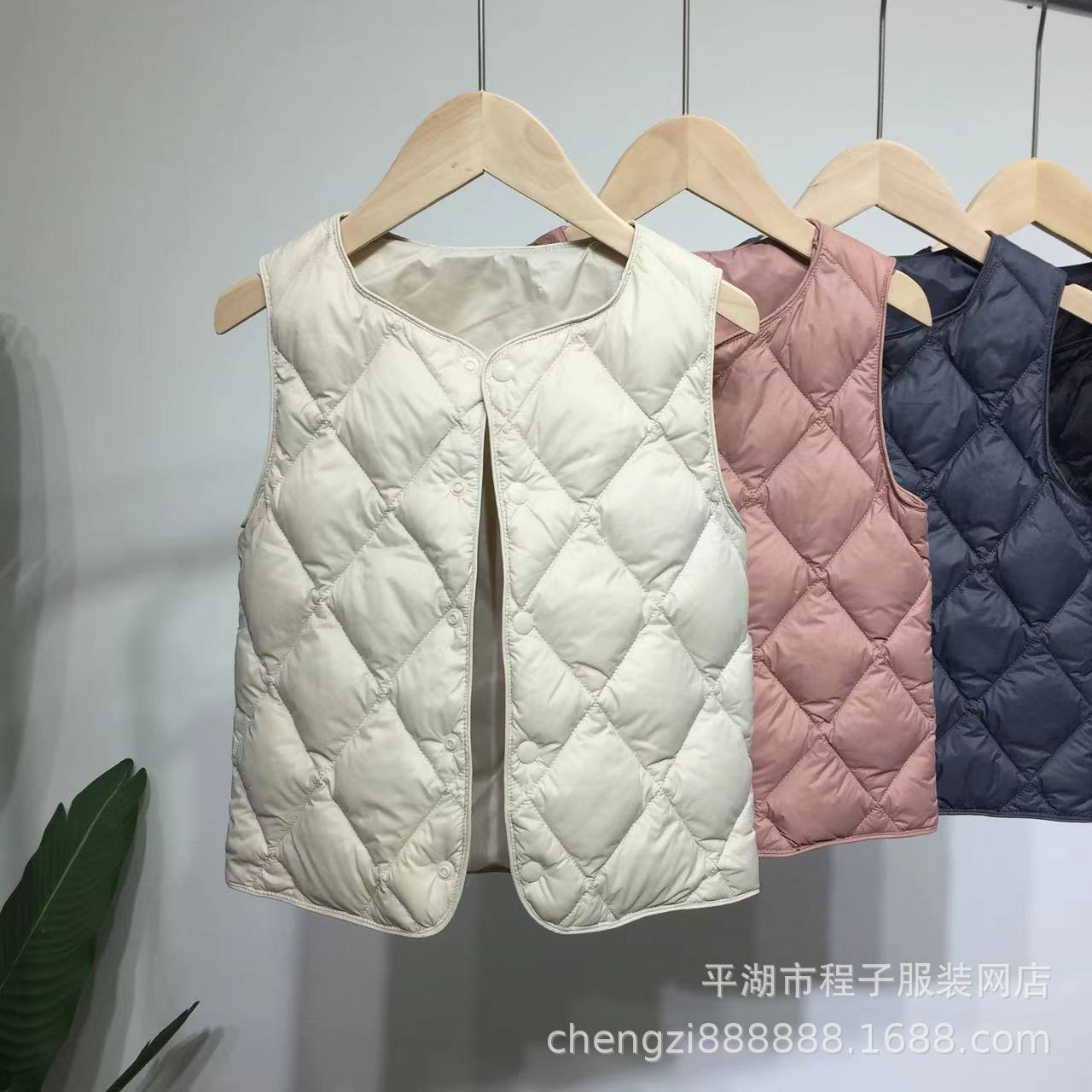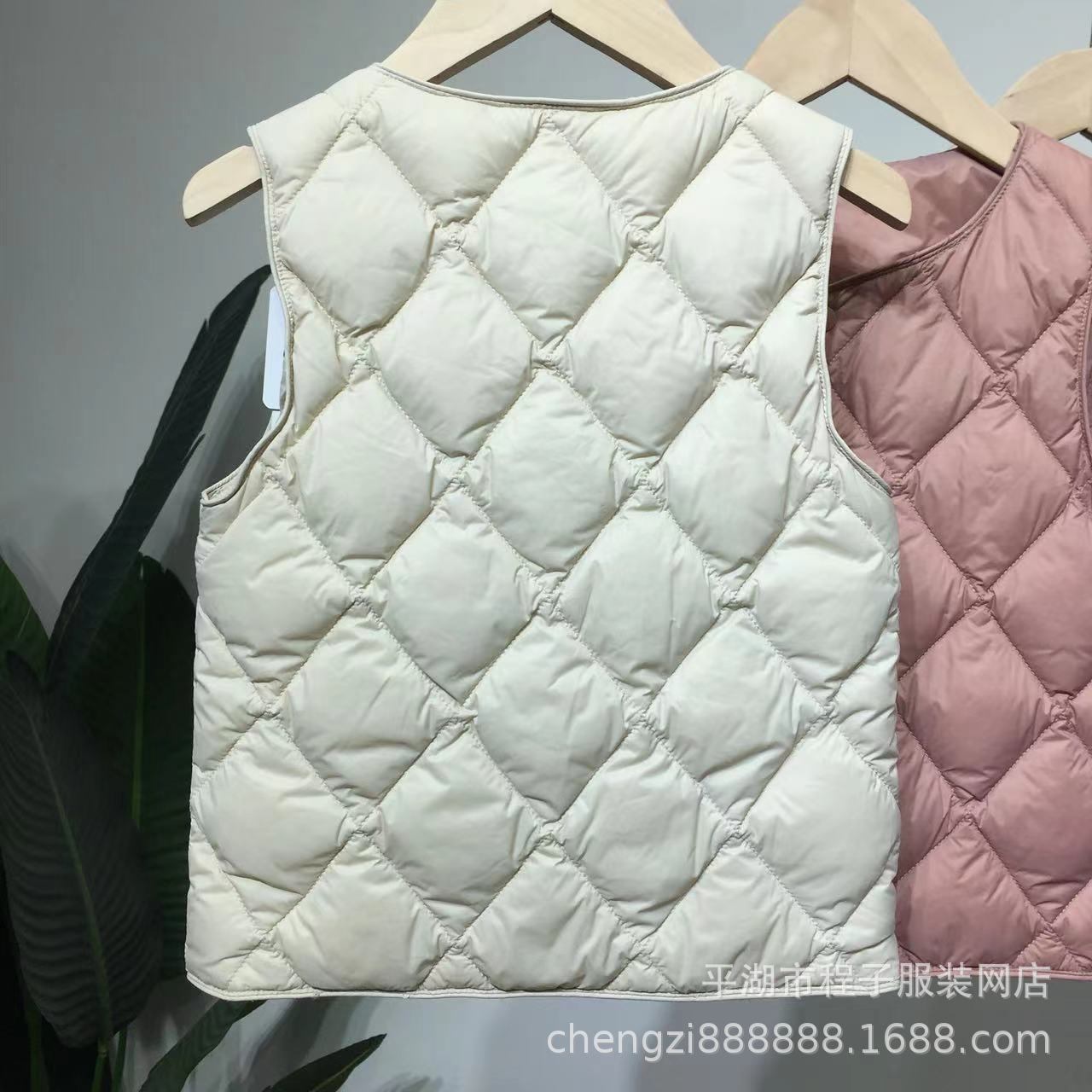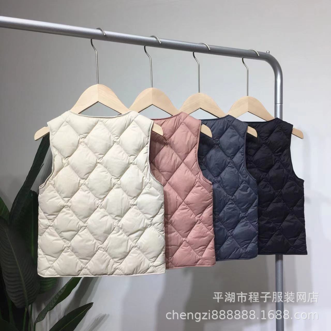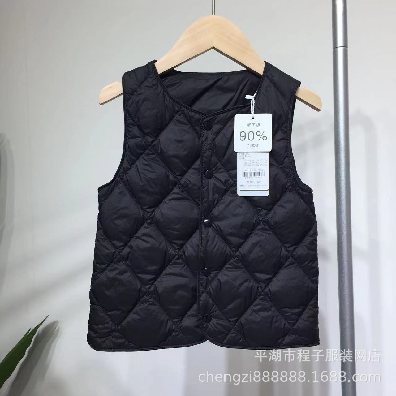 어린이 90 벨벳 내부 착용 외부 착용 다운 조끼 가을과 겨울 내부 탱크 소년과 소녀 부모-자식 라운드 넥 격자 무늬