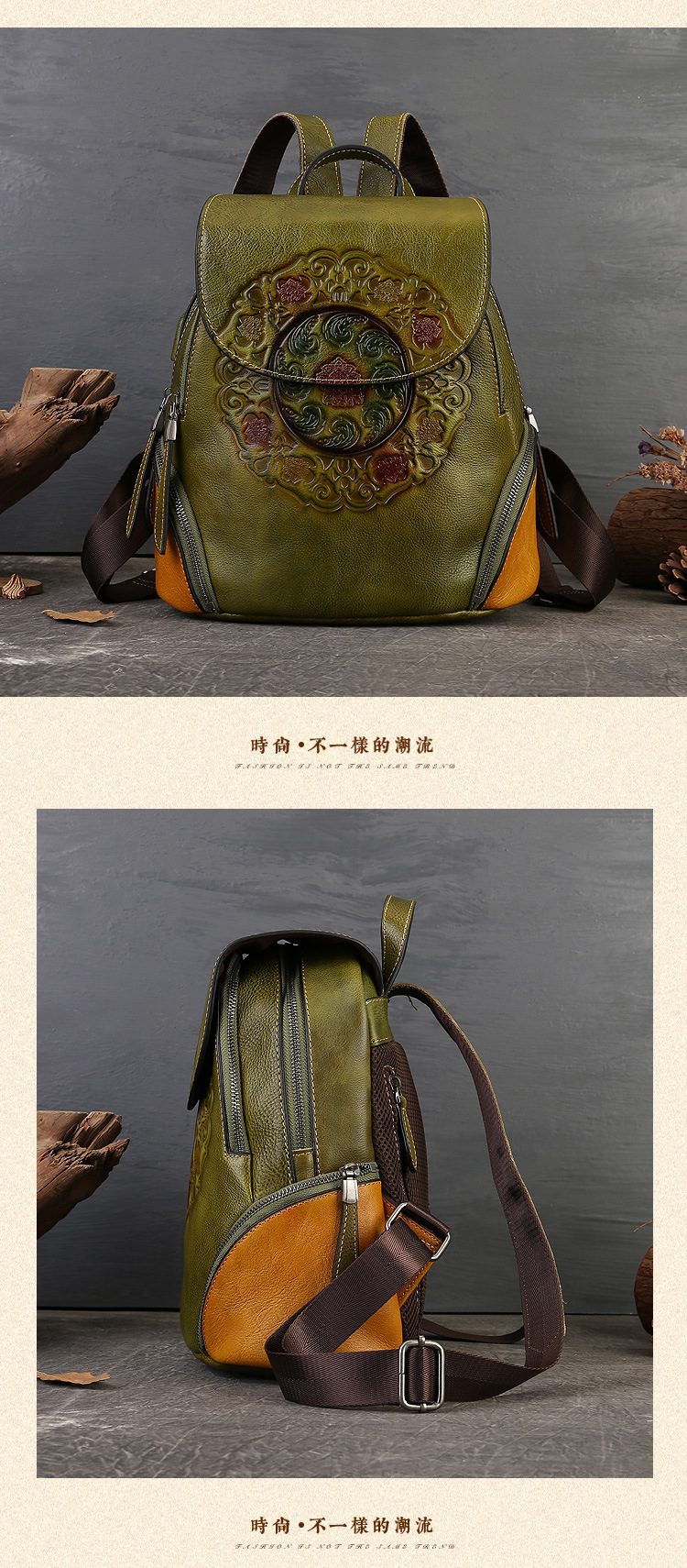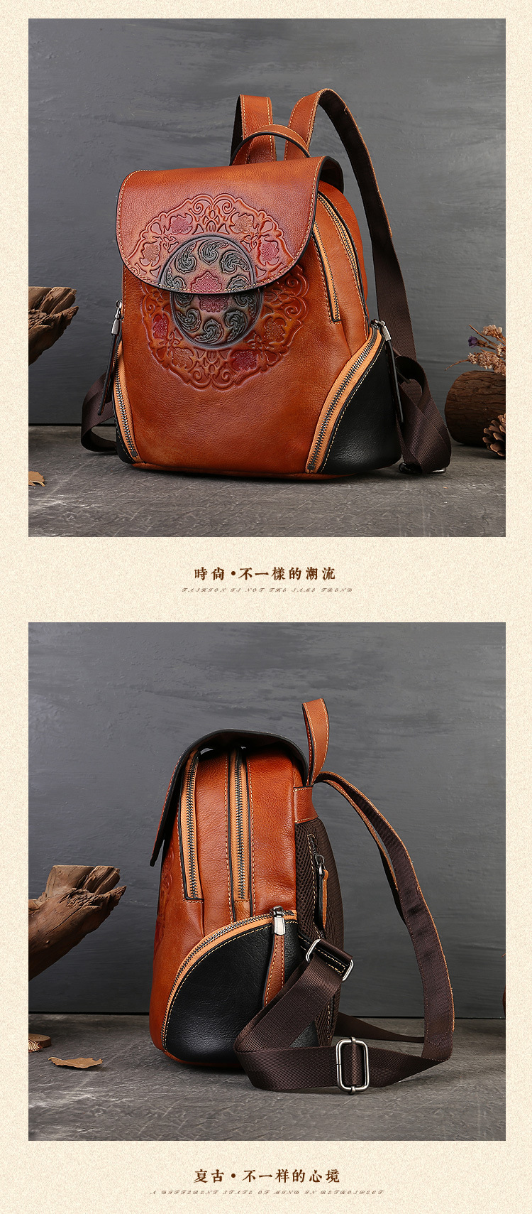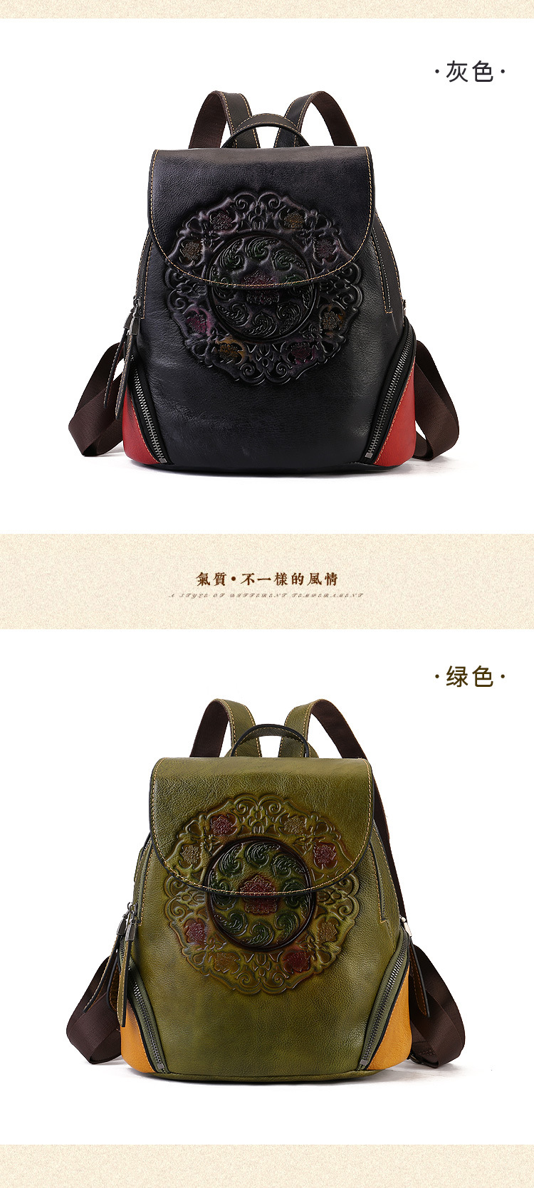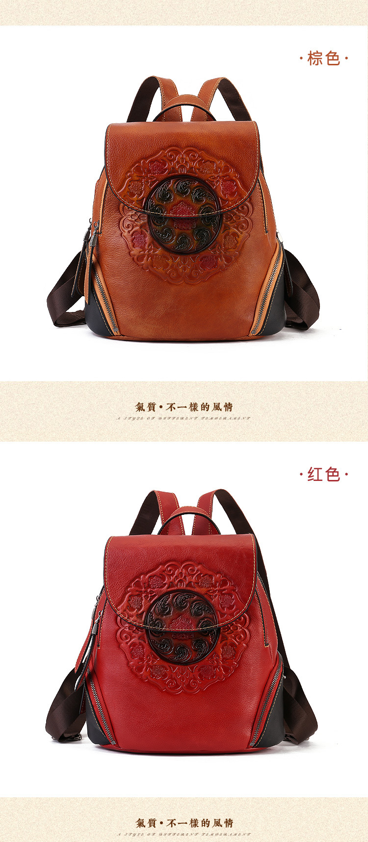 2025 새로운 스타일 배낭 정품 가죽 남여 고급 틈새 학생 배낭 문학 국가 스타일 여행 배낭