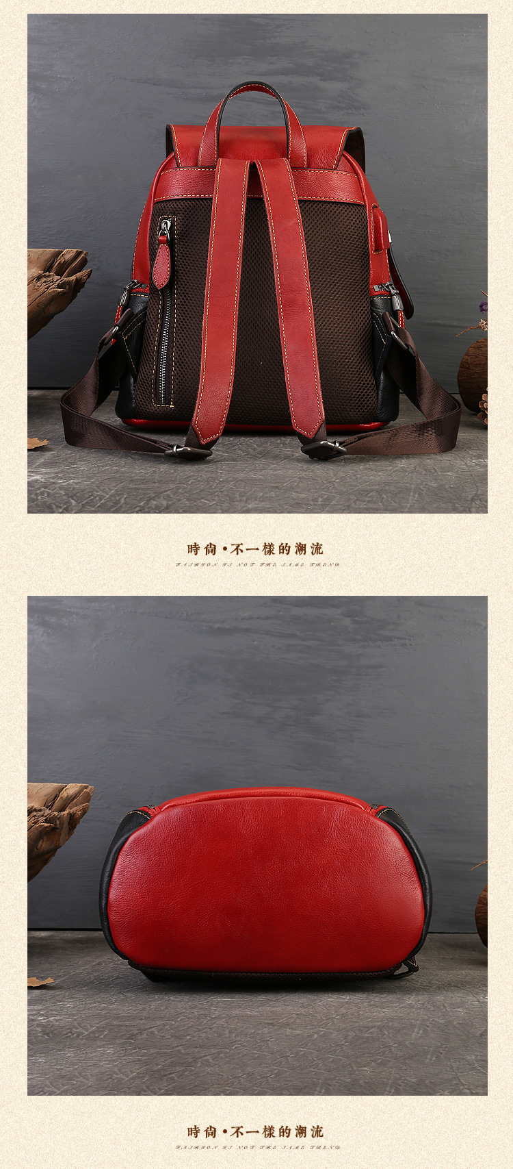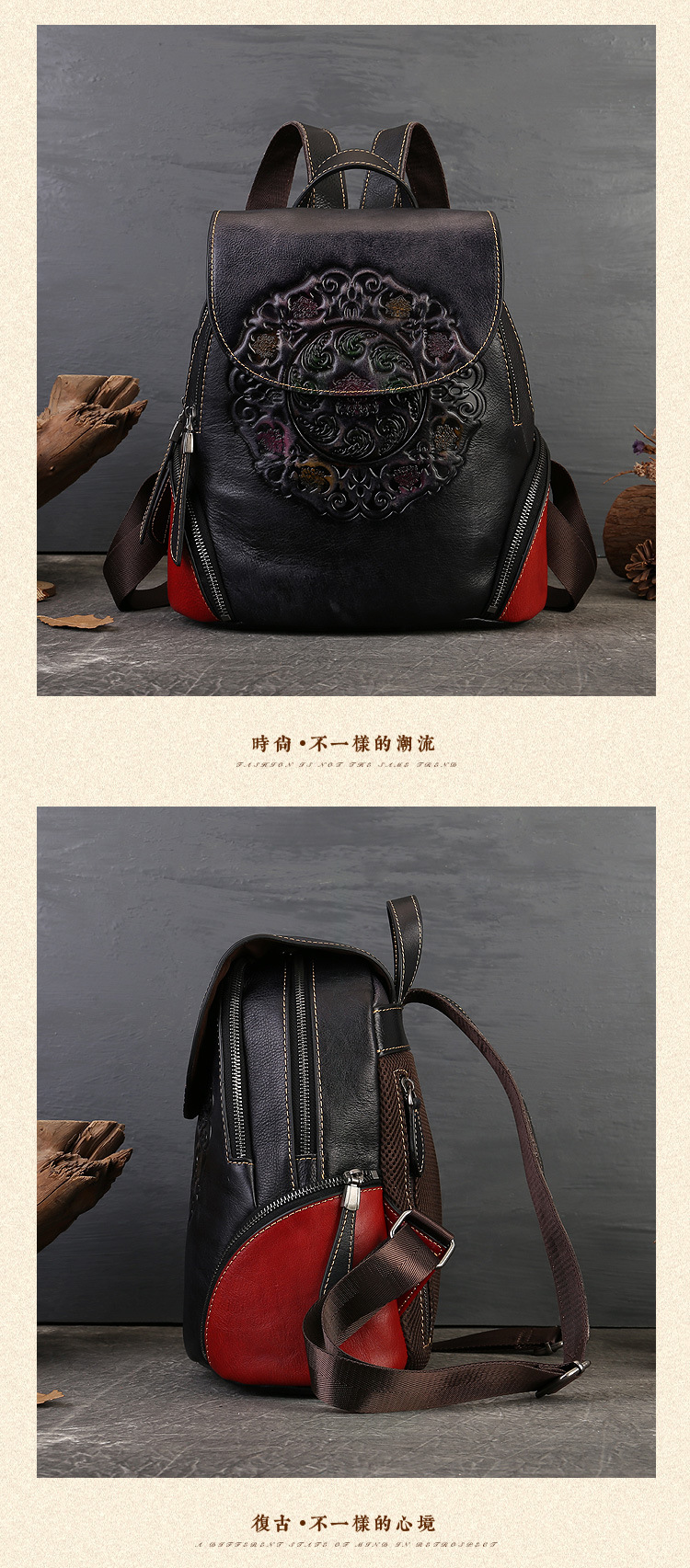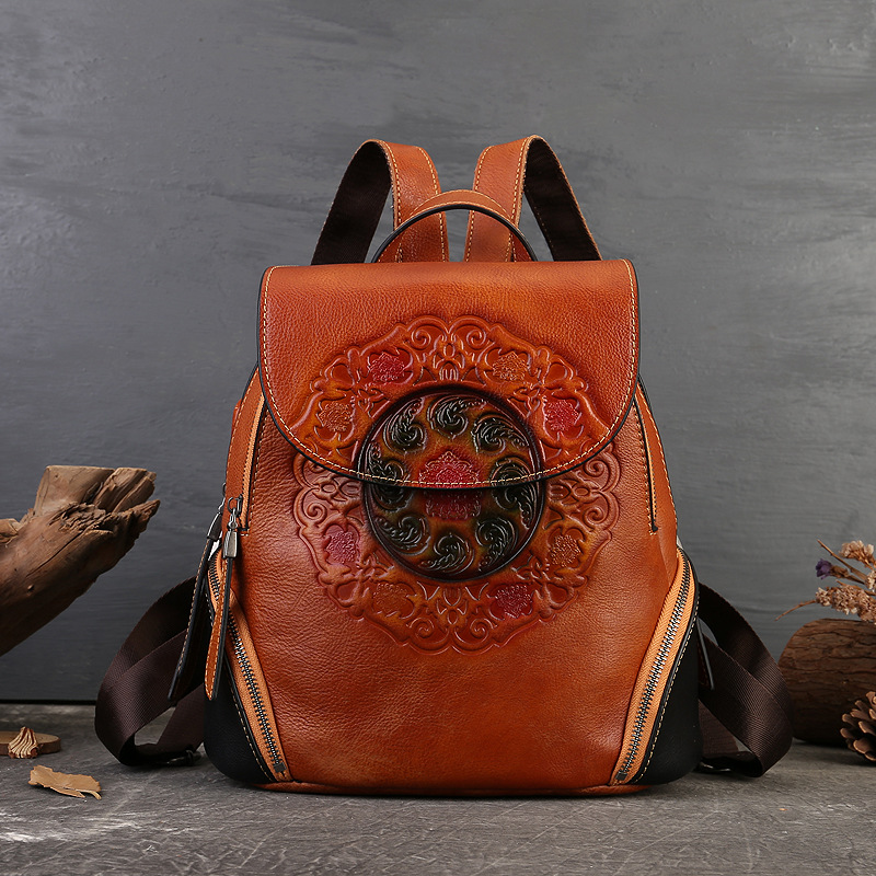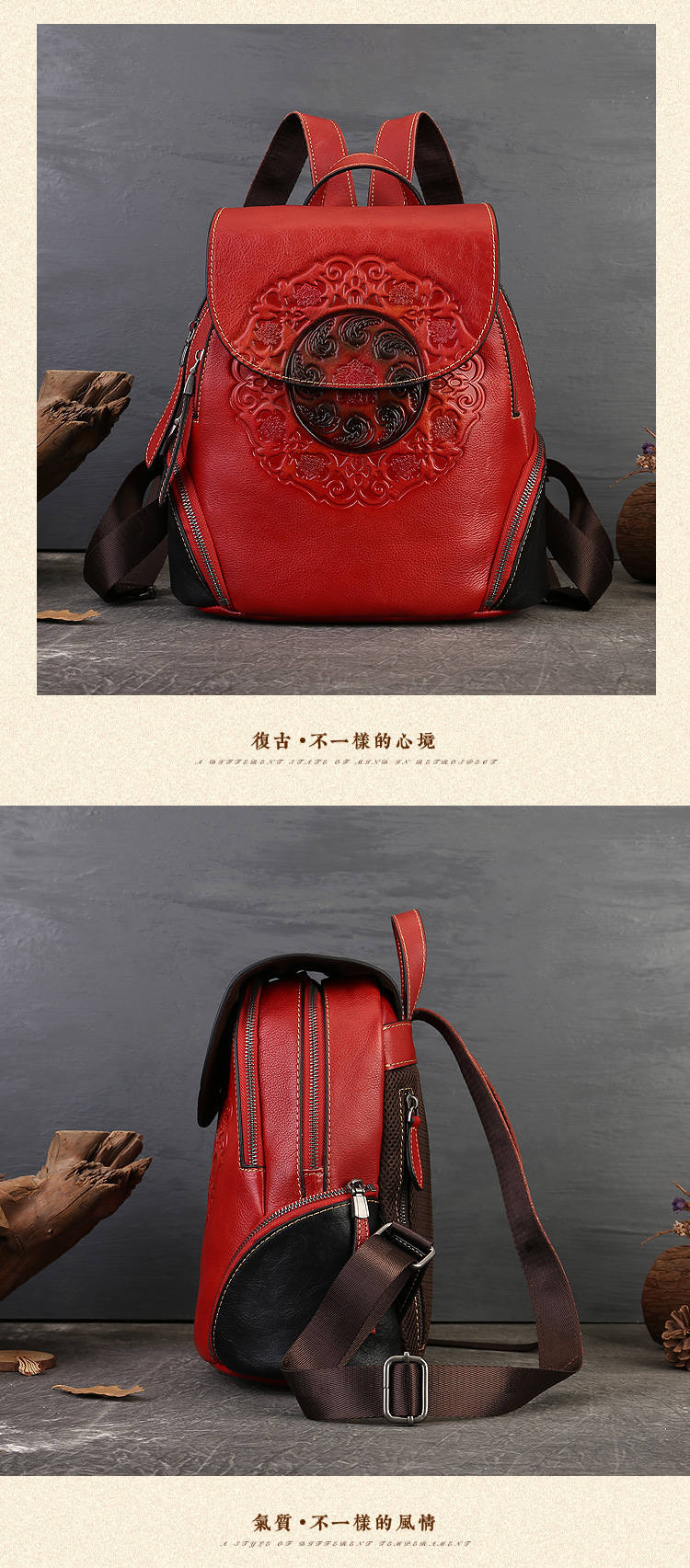 2025 새로운 스타일 배낭 정품 가죽 남여 고급 틈새 학생 배낭 문학 국가 스타일 여행 배낭