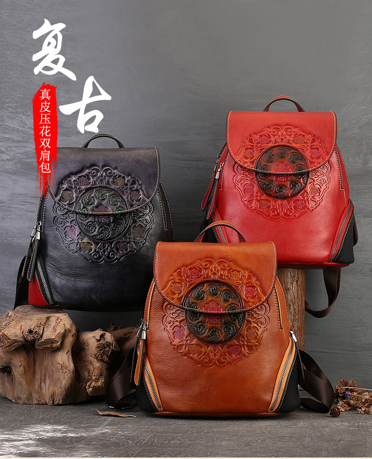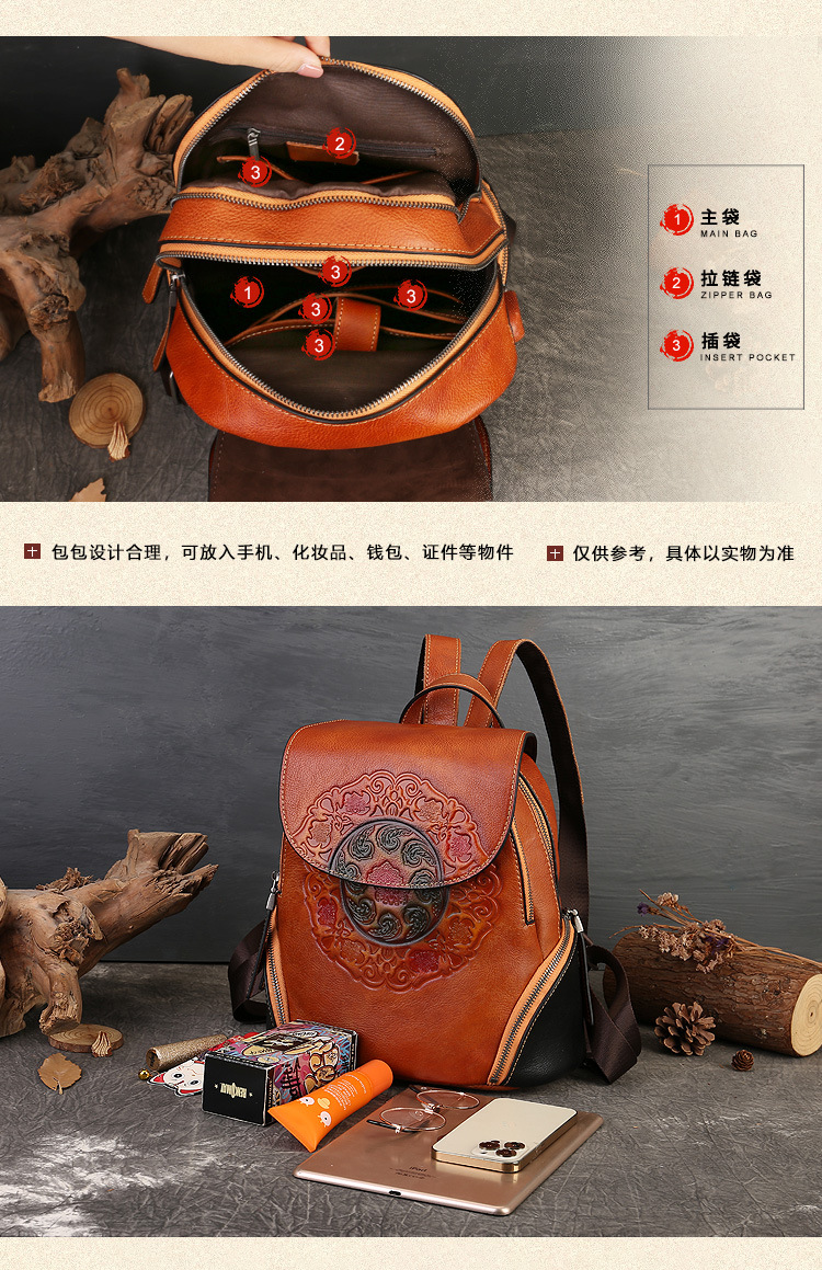 2025 새로운 스타일 배낭 정품 가죽 남여 고급 틈새 학생 배낭 문학 국가 스타일 여행 배낭스토어 가기