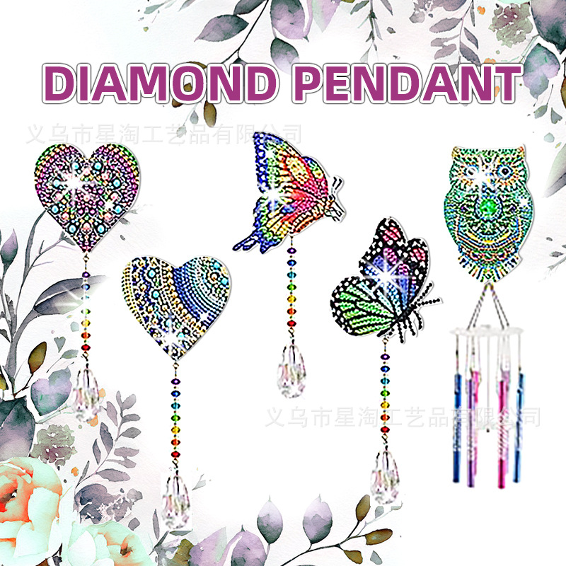 다이아몬드 페인팅 포수 바람 차임 크리스탈 펜던트 양면 나비 장식품 DIY 키트 성인 가정 정원 장식 그림스토어 가기