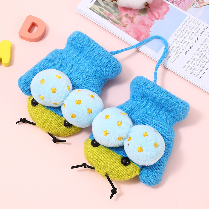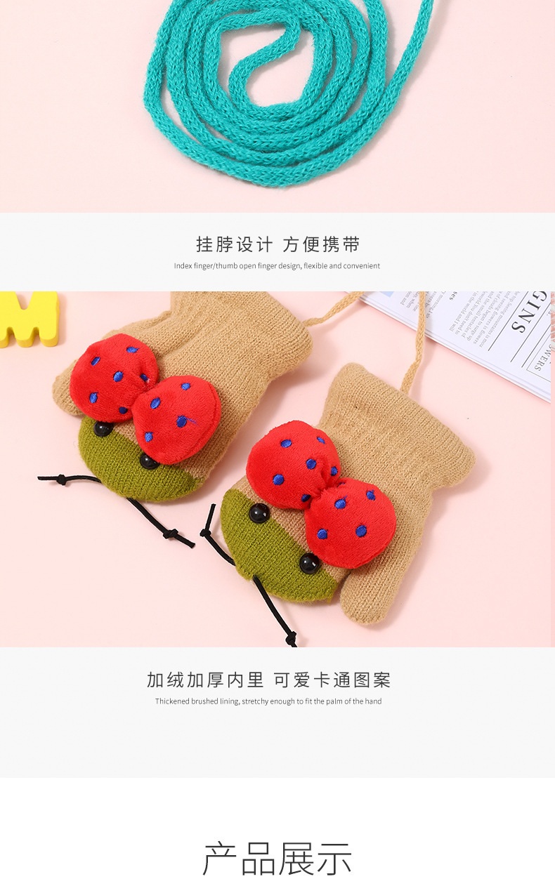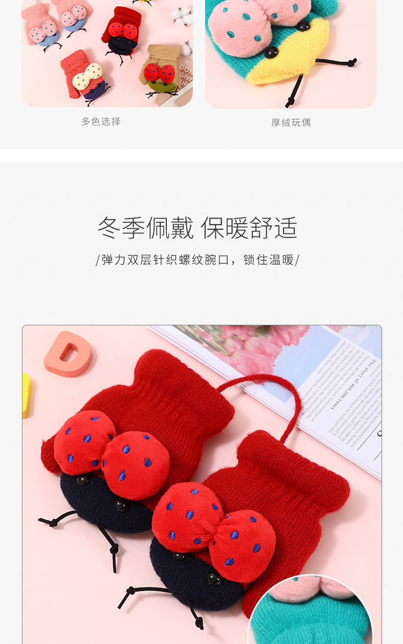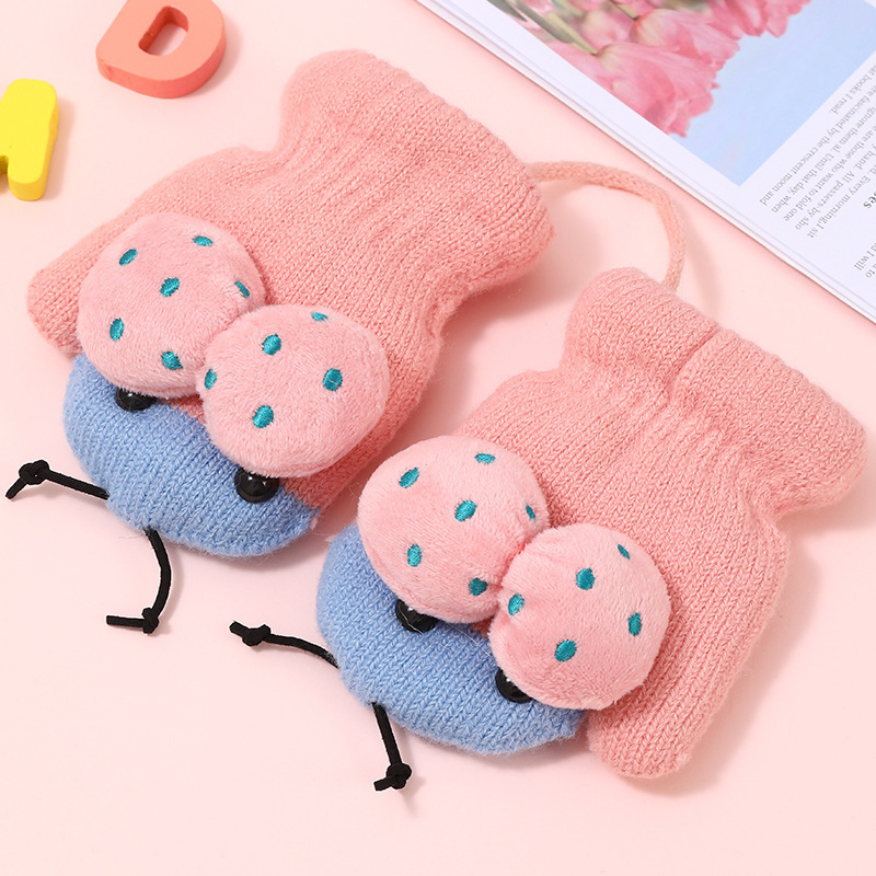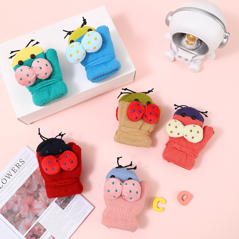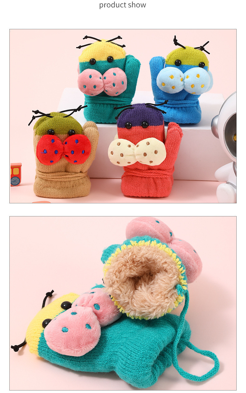 가을과 겨울 작은 딱정벌레 어린이 따뜻한 장갑 기모 귀여운 만화 야외 활동 두꺼운 방한 니트 장갑스토어 가기