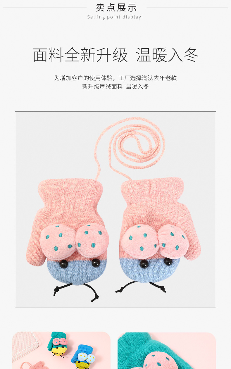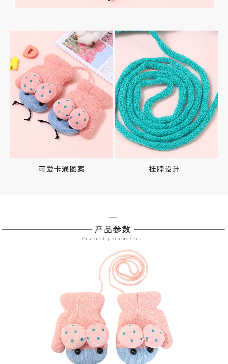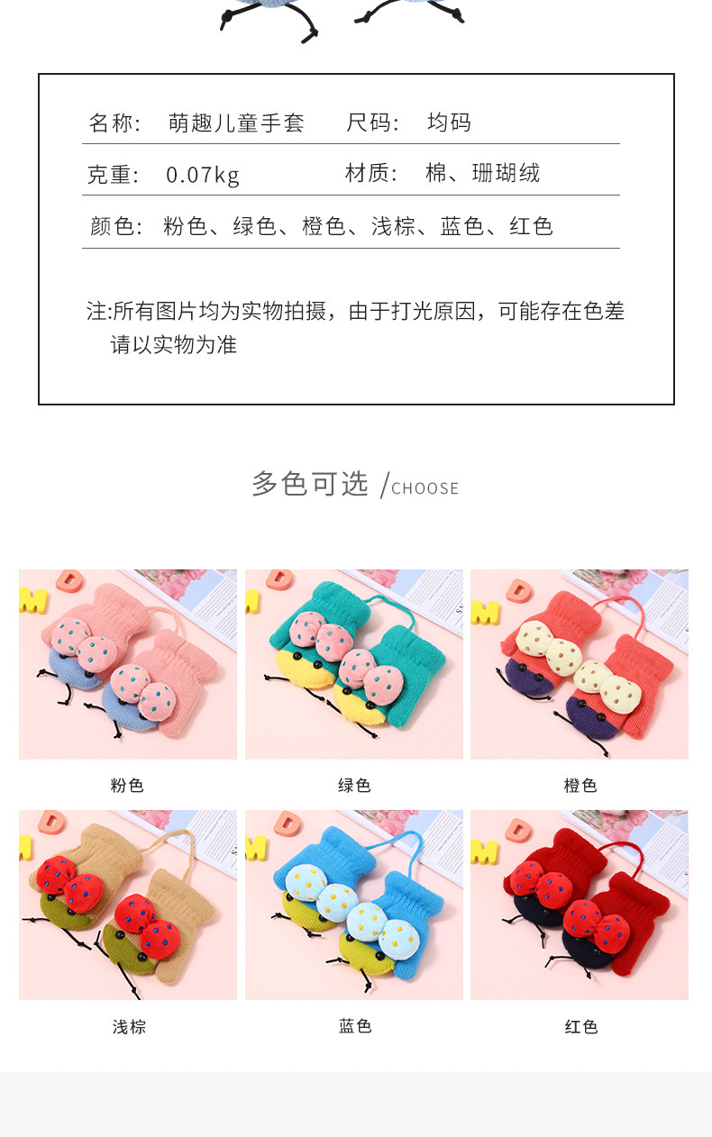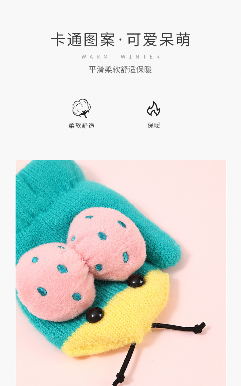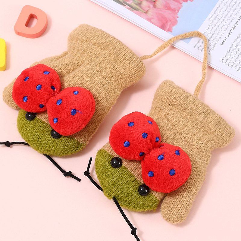 가을과 겨울 작은 딱정벌레 어린이 따뜻한 장갑 기모 귀여운 만화 야외 활동 두꺼운 방한 니트 장갑스토어 가기