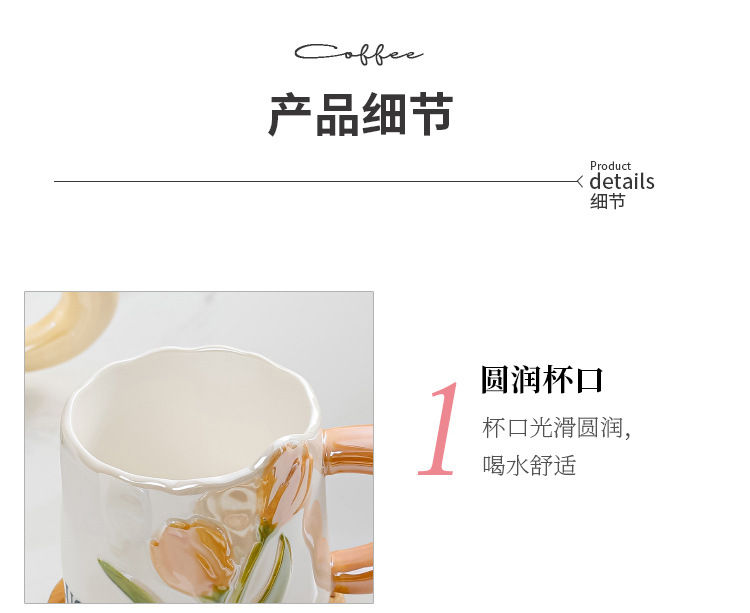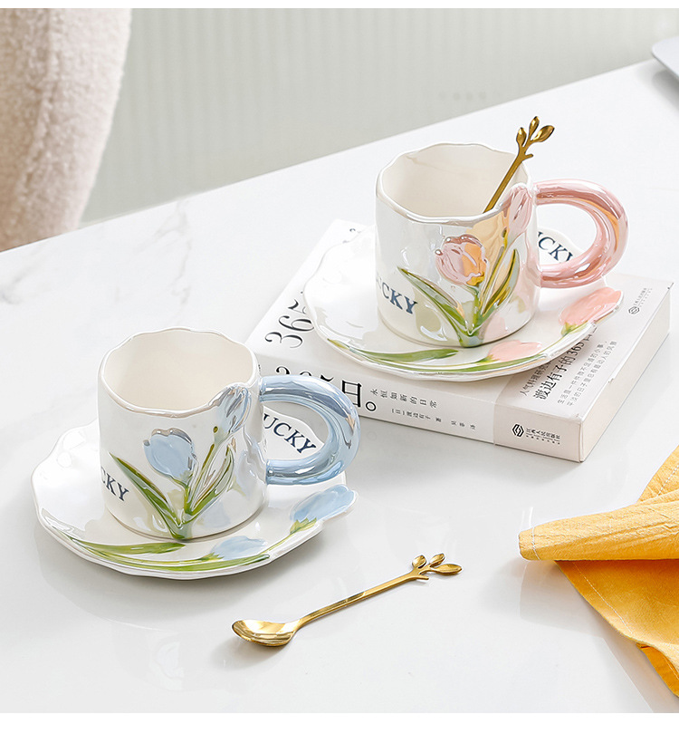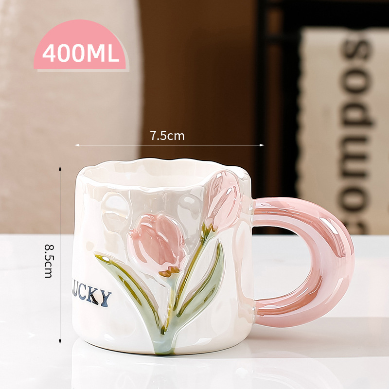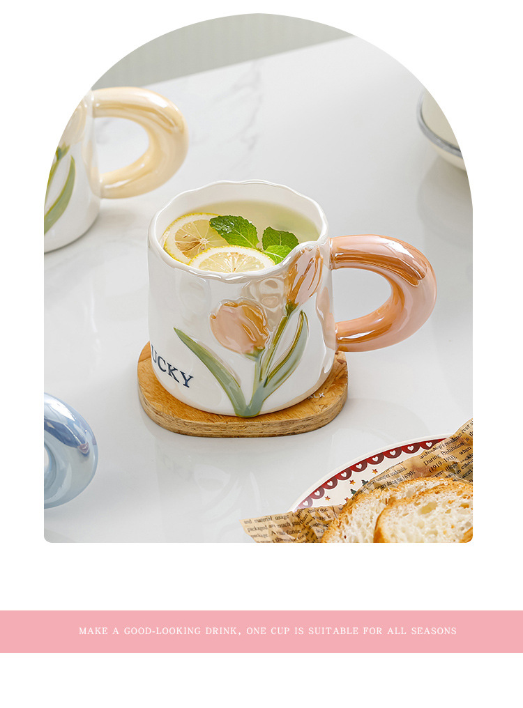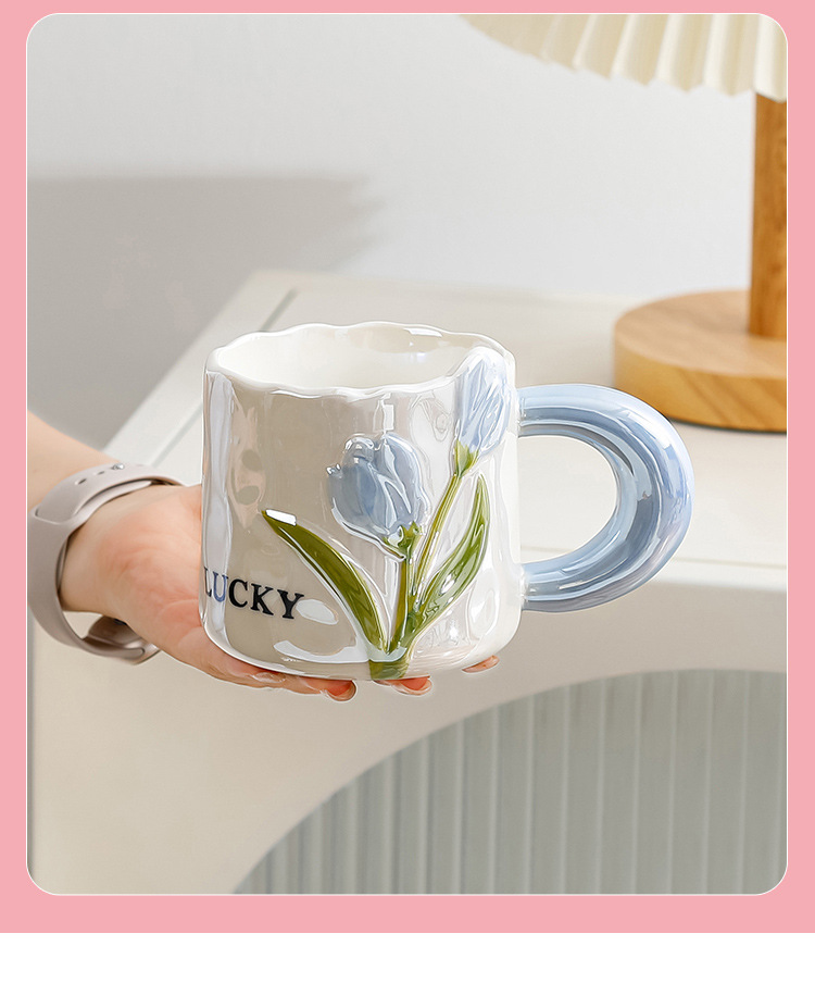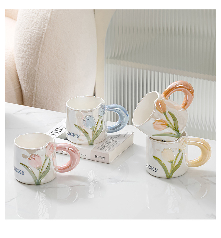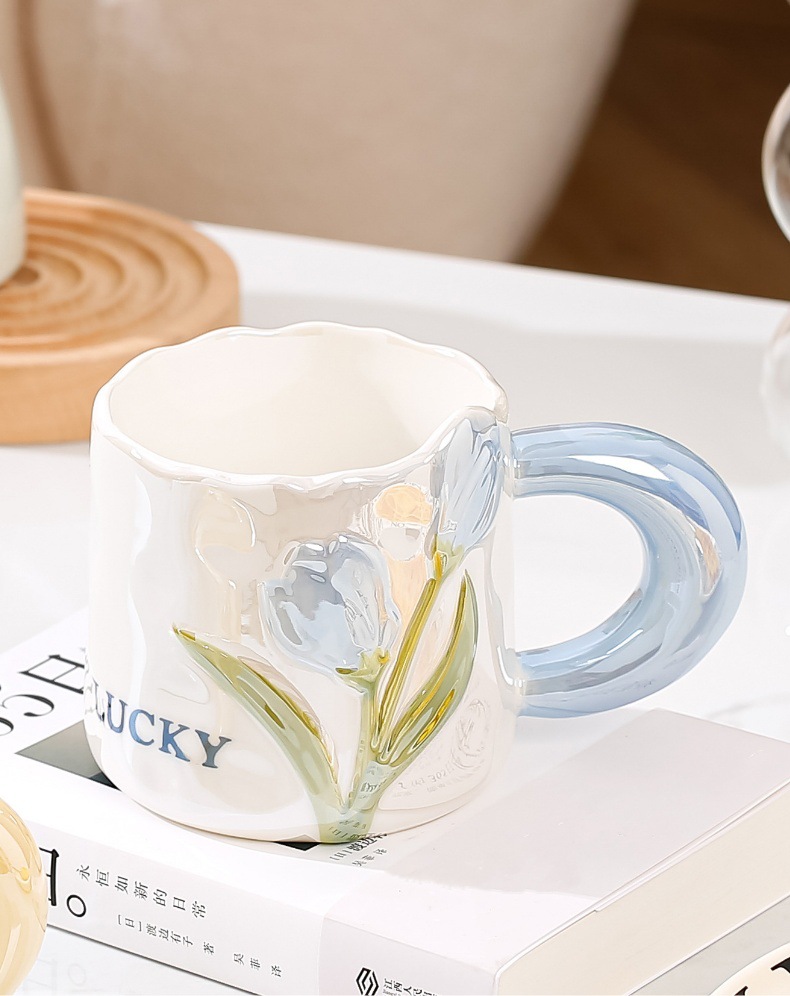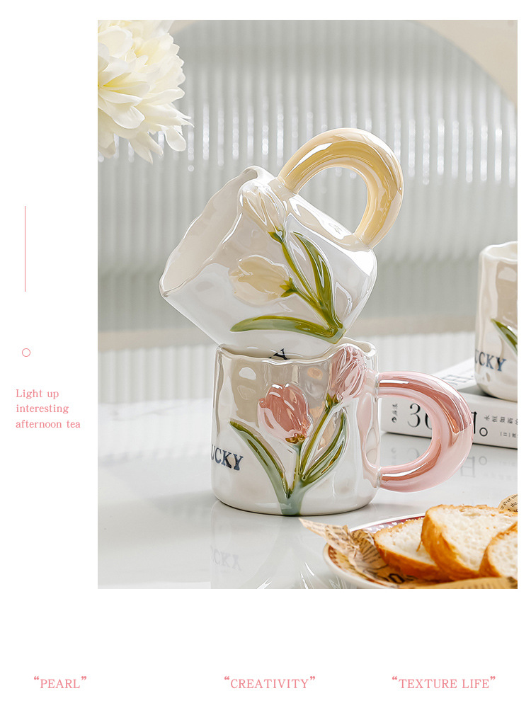 손으로 그린 진주 빛 유약 높은 색상 가치 머그 가정용 튤립 세라믹 컵 물 컵 가벼운 고급 손 선물 컵스토어 가기