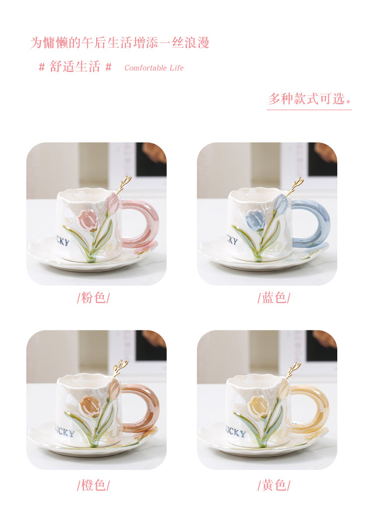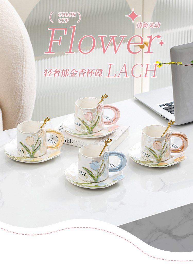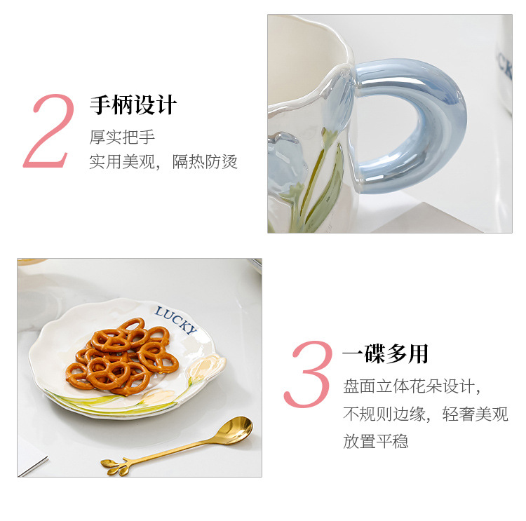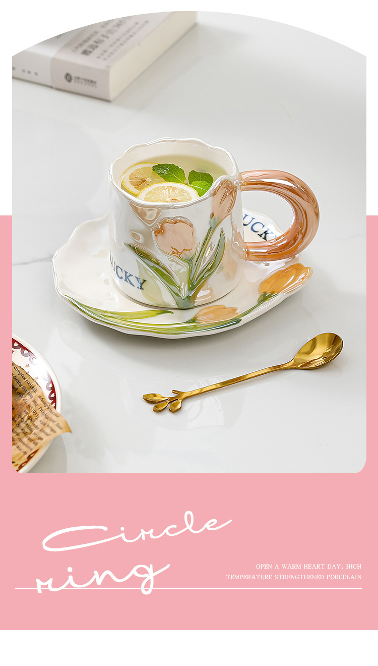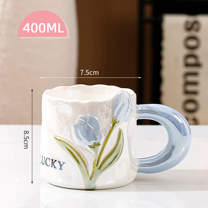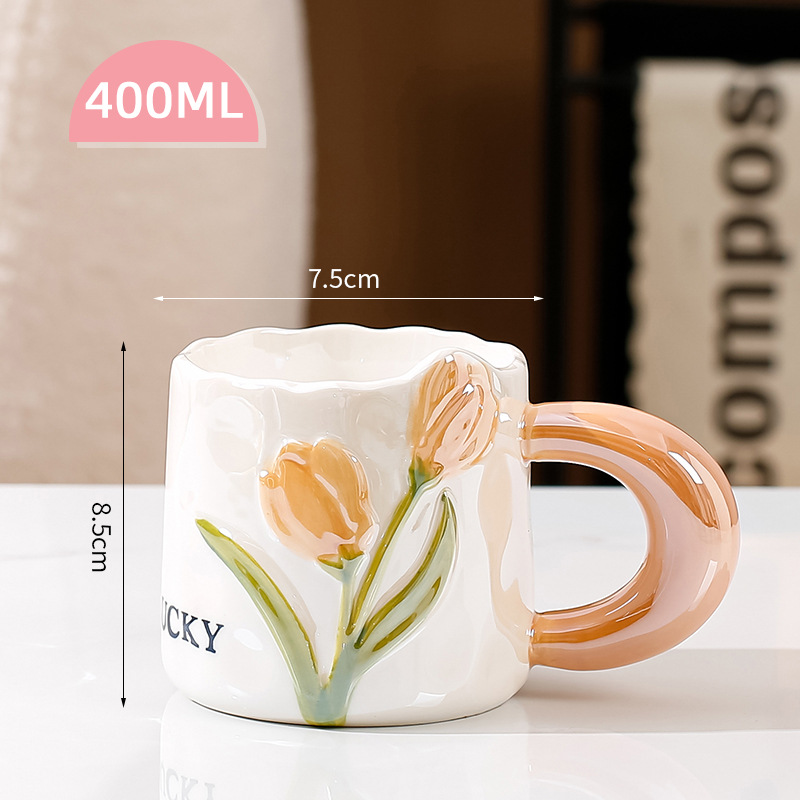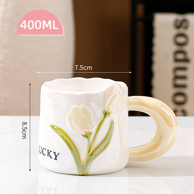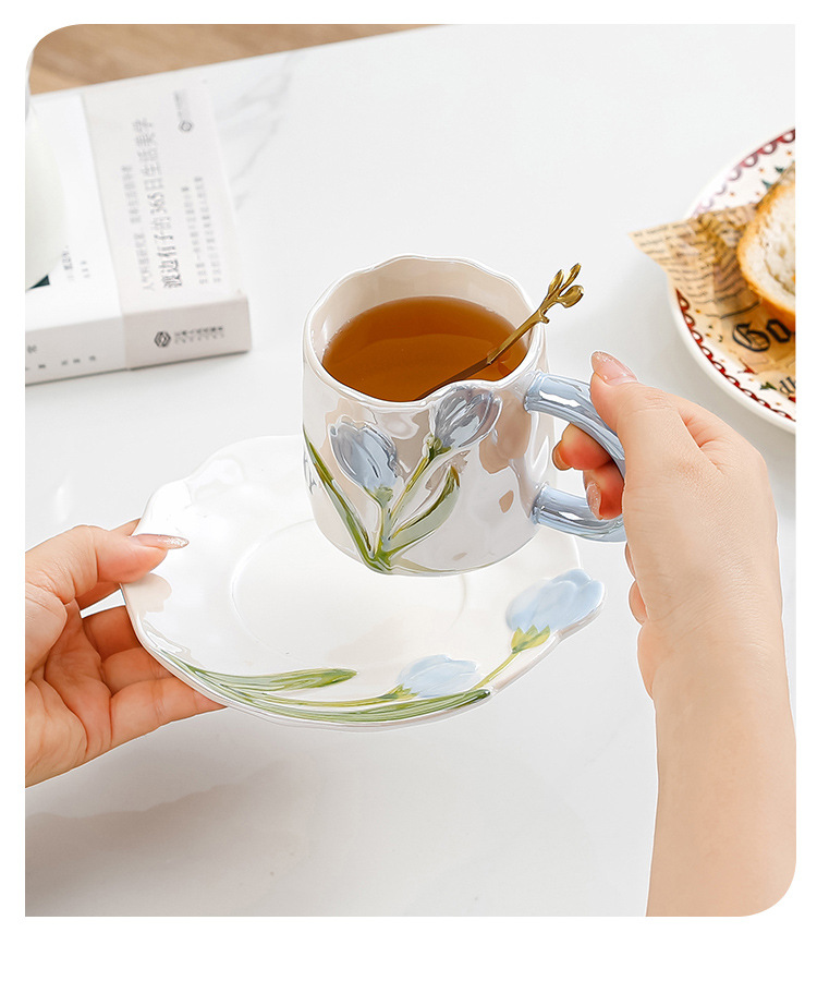 손으로 그린 진주 빛 유약 높은 색상 가치 머그 가정용 튤립 세라믹 컵 물 컵 가벼운 고급 손 선물 컵스토어 가기