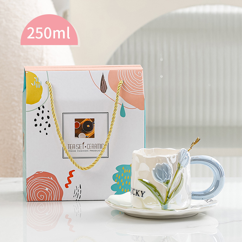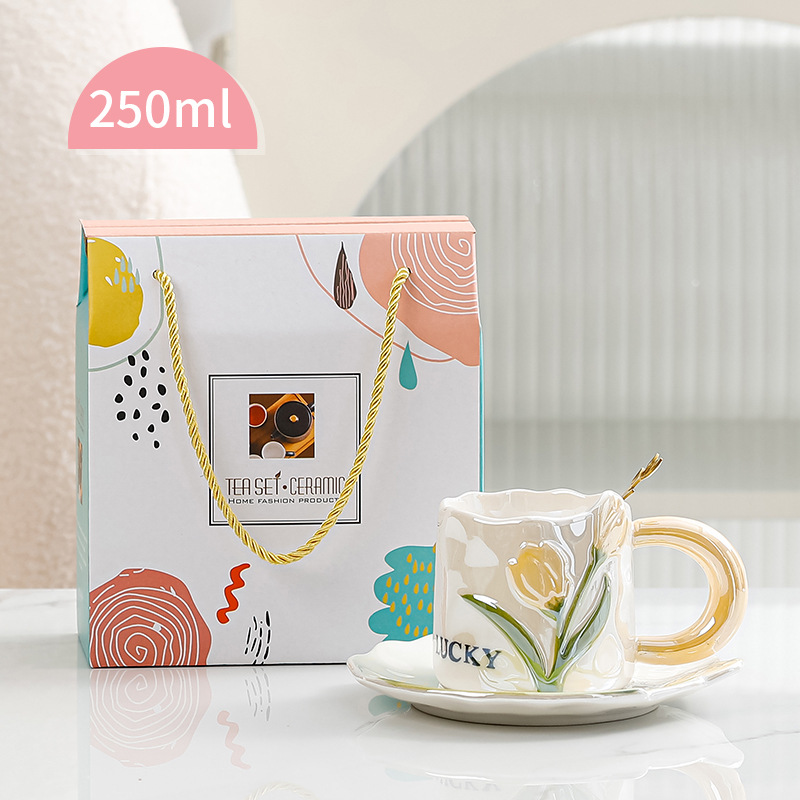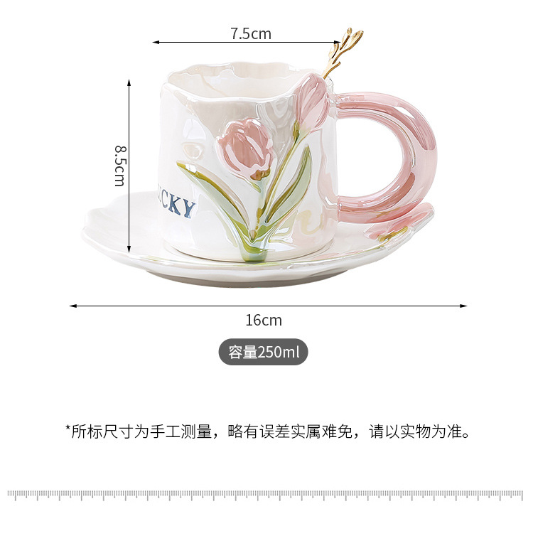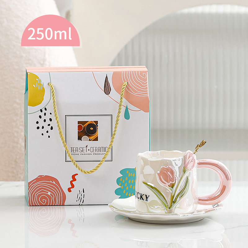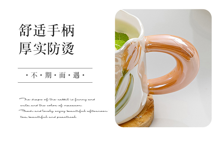 손으로 그린 진주 빛 유약 높은 색상 가치 머그 가정용 튤립 세라믹 컵 물 컵 가벼운 고급 손 선물 컵
