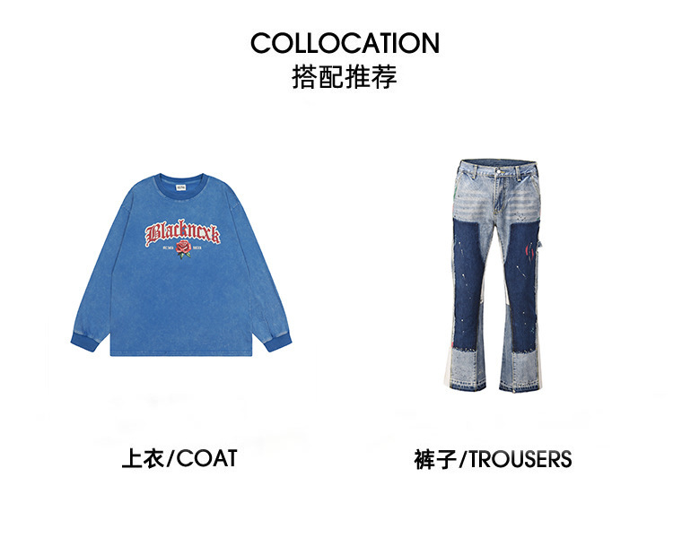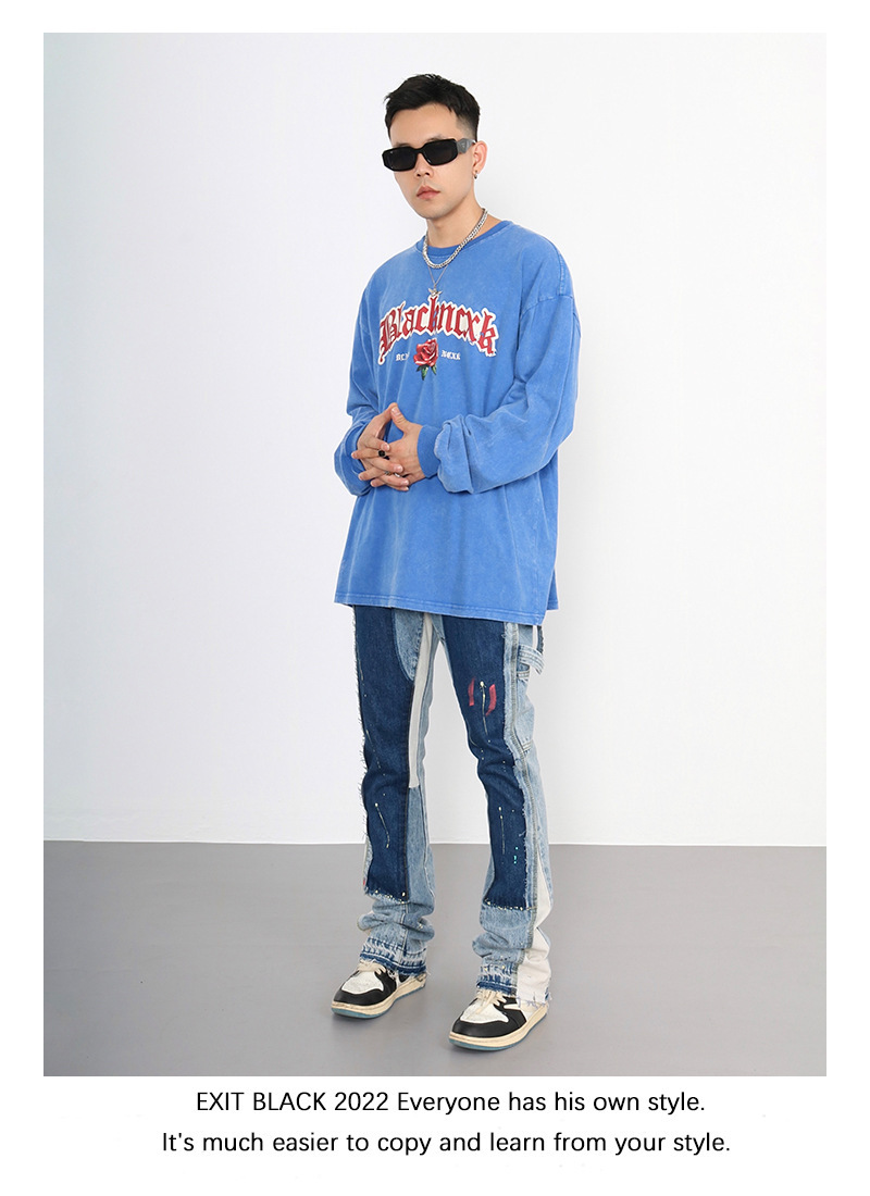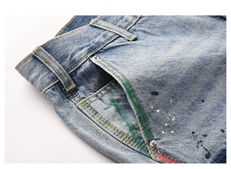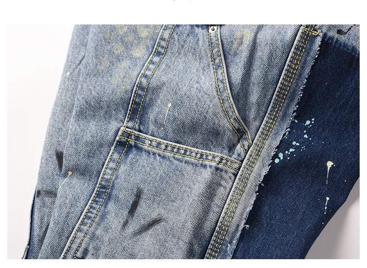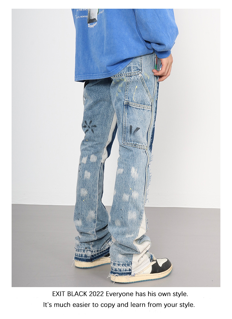 하이 스트리트 갤러리 뎁 같은 스타일 스플래시 잉크 마이크로 플레어 팬츠 남성 트렌디 브랜드 플로어 대비 컬러 스티칭 캐주얼 청바지스토어 가기