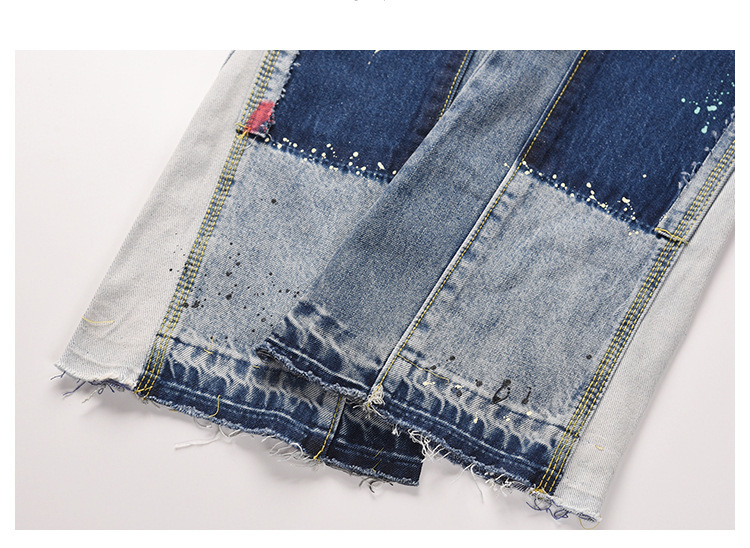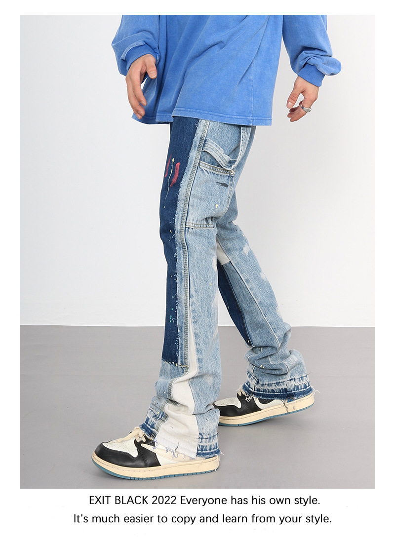 하이 스트리트 갤러리 뎁 같은 스타일 스플래시 잉크 마이크로 플레어 팬츠 남성 트렌디 브랜드 플로어 대비 컬러 스티칭 캐주얼 청바지