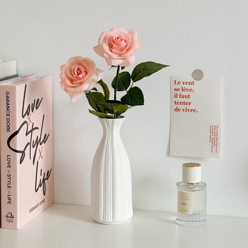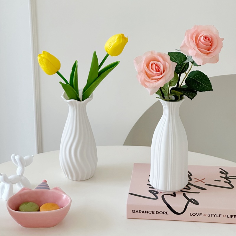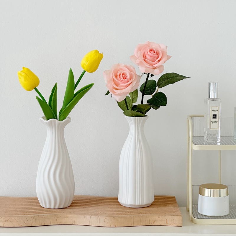화이트 세라믹 꽃병 북유럽 데스크탑 꽃 배열 시뮬레이션 꽃 세트 고급 감각 튤립 거실 복도 장식 장식품스토어 가기