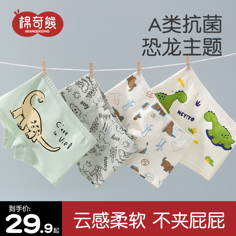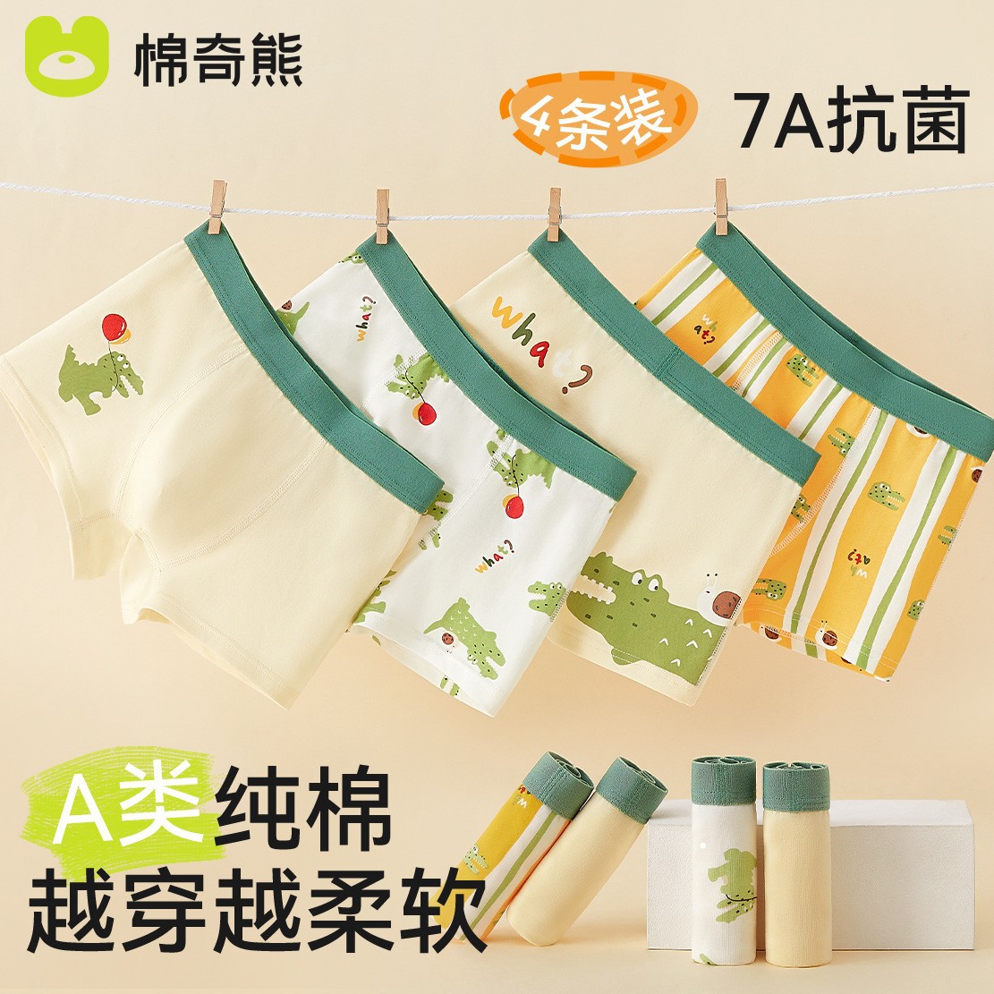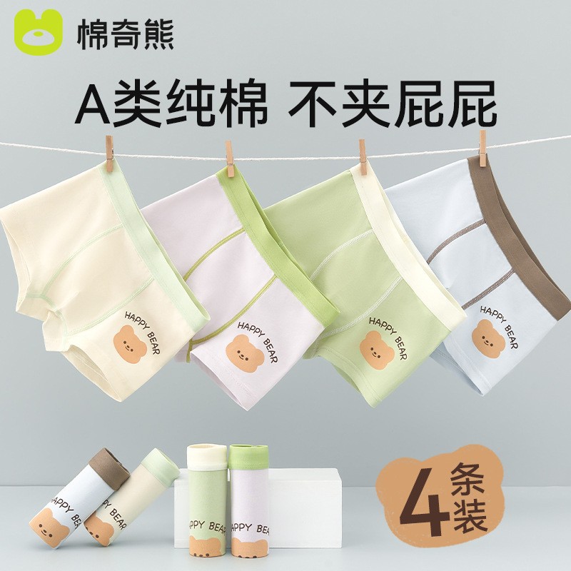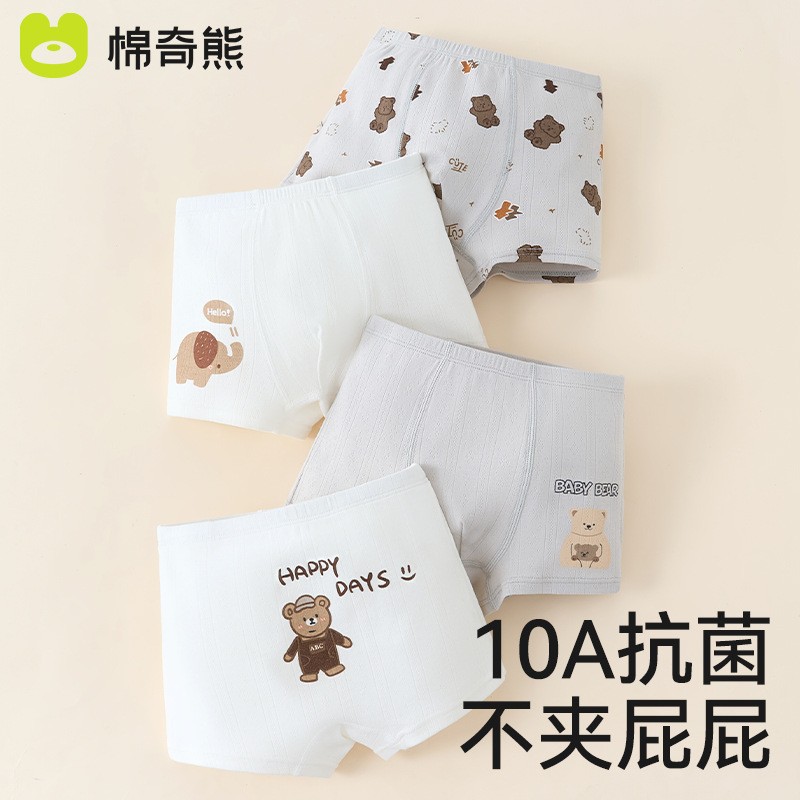 Mianqi Bear Boys 'Underwear Children's No Ass Big Children's Boxer 반바지 남성 아기 어린이 클래스 A 면화 복서 반바지스토어 가기