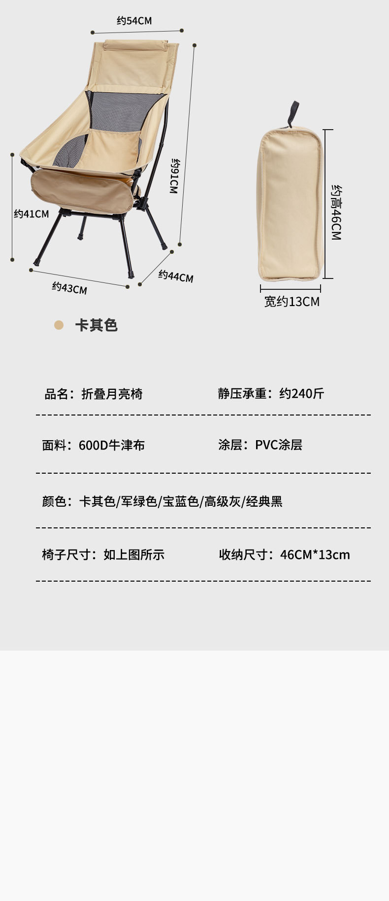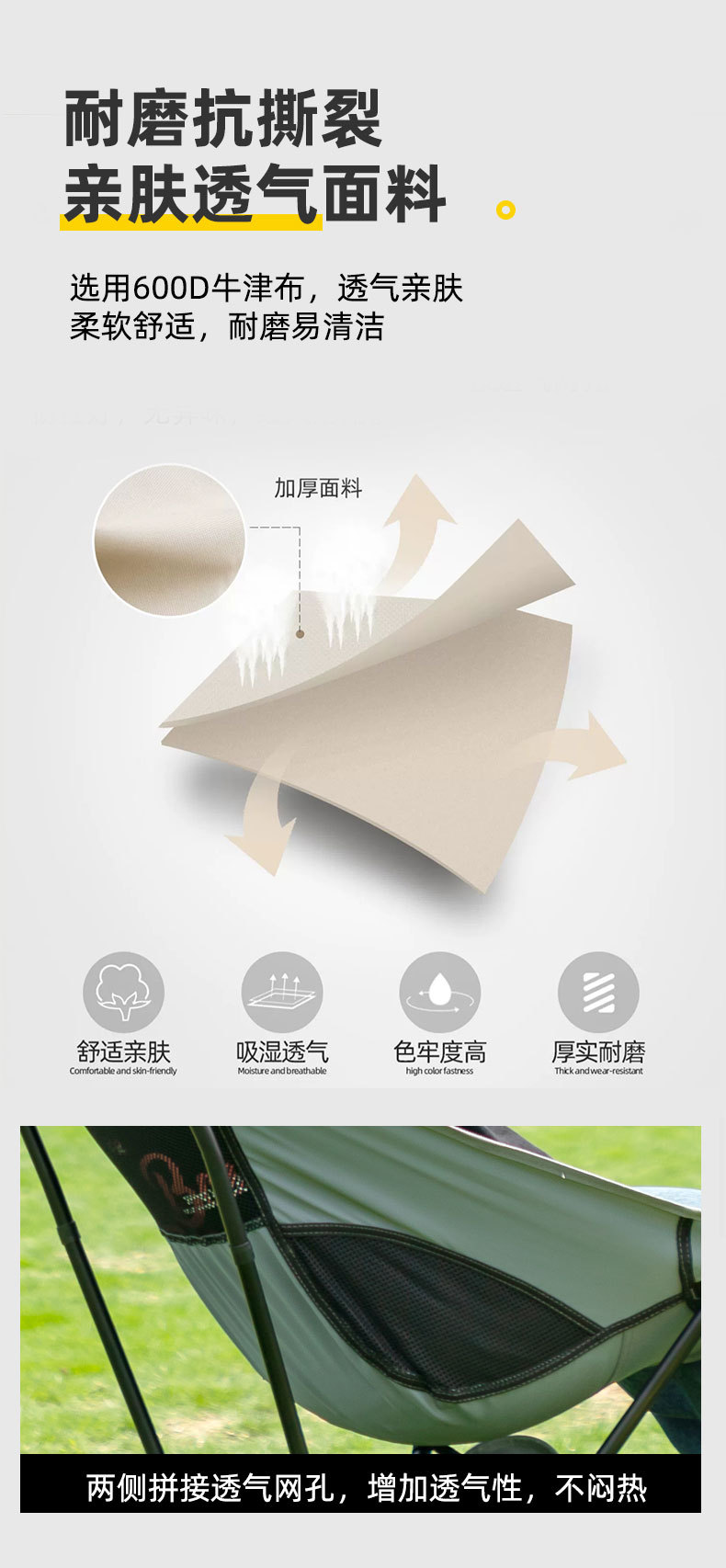 하이 백 문 의자 사각 구조 더 안정적인 야외 휴대용 접이식 캠핑 비치 의자 안락 의자 초경량 크로스 보더스토어 가기