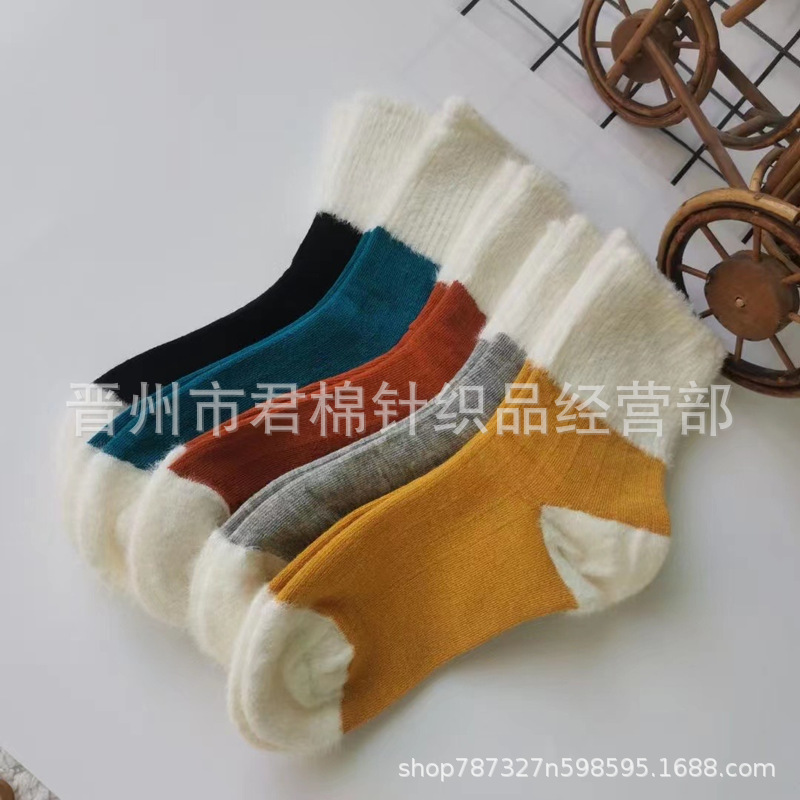 공장 도매면 양말 밍크 봉제 바느질면 송아지 양말 캔디 컬러 귀여운 파일 양말 튜브 양말