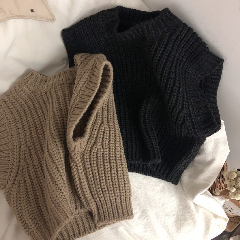예술적 모리 풀오버 한국 어린이 두꺼운 모직 조끼 스웨터 소년과 소녀를위한 유행 민소매 조끼스토어 가기