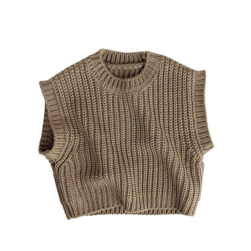 예술적 모리 풀오버 한국 어린이 두꺼운 모직 조끼 스웨터 소년과 소녀를위한 유행 민소매 조끼
