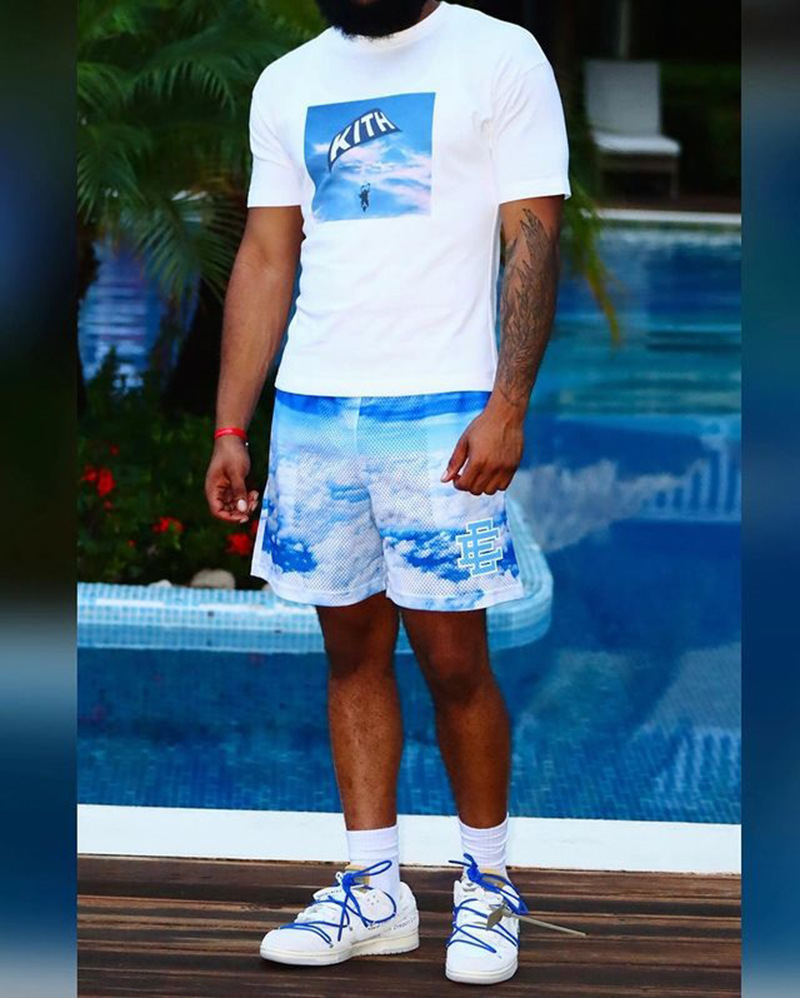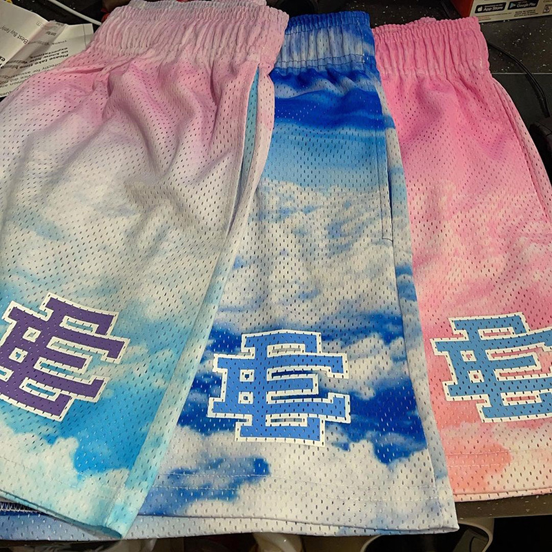 대외 무역 새로운 EE 미국 레저 피트니스 반바지 남성 및 여성 스포츠 메쉬 통기성 그라디언트 컬러 쿼터 팬츠 남성 유럽 및 미국 패션스토어 가기